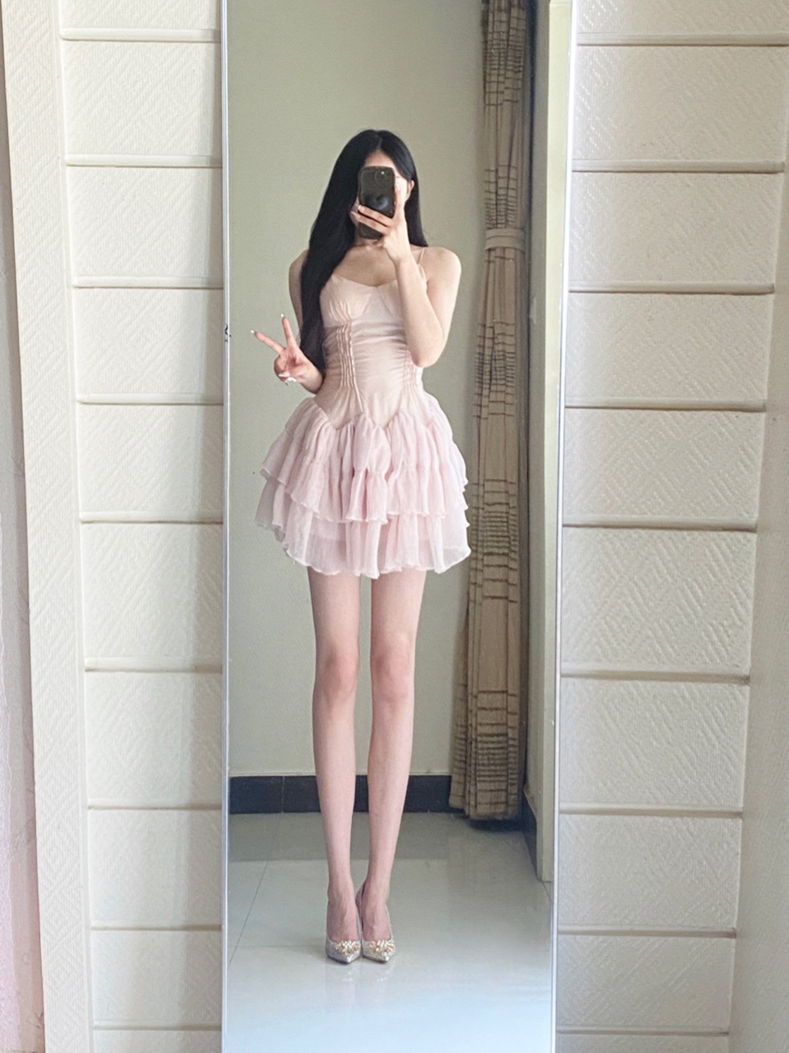 🌸裙装选择:一件裸粉色的绷带裙太绝了!这种剪裁紧紧贴合身材,把曲线勾勒得淋漓尽致,每一条绷带的设计都像是精心计算过,既显瘦又很有高级感,裸粉色温柔又不甜腻,约会、出街都能轻松slay全场~