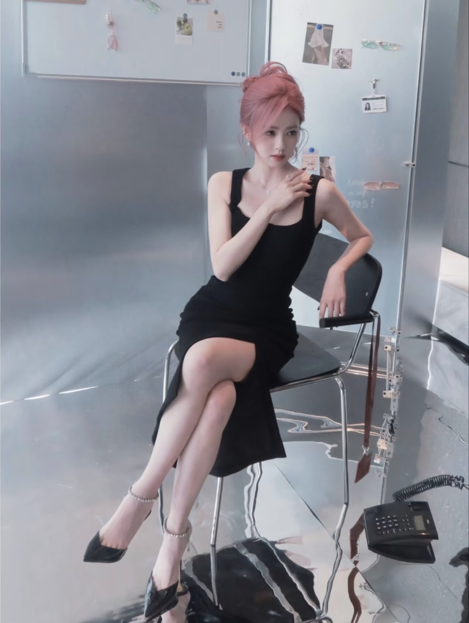 💇♀️粉发高丸子头更是点睛之笔,和黑色穿搭形成强烈反差,又甜又辣,走在路上回头率绝对200%!