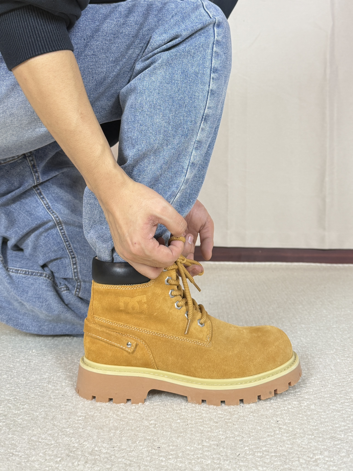 秋冬还得是穿经典大黄靴才对味,尤其是这种质感颜色都特别正的。 DC Shoes 家的这款复古大黄靴最亮眼的还是这个鞋子的配色,颜色特别正,特别漂亮,显得人很干净,而且鞋面的麂皮摸着很柔软,很舒服。整个上脚给人的感觉就是那种好看且高级