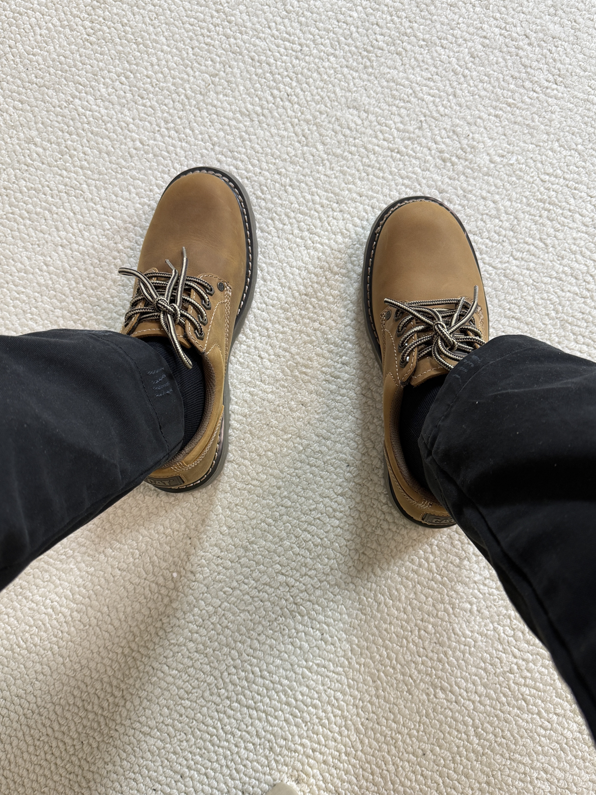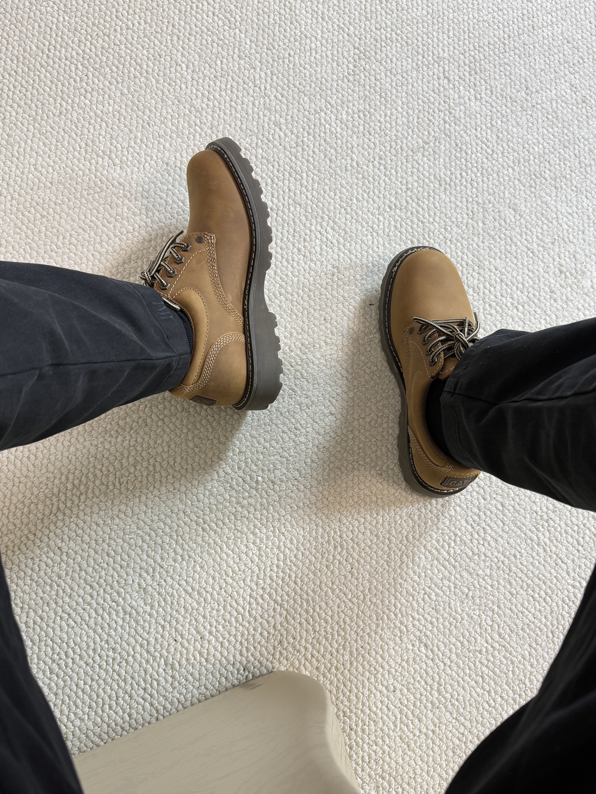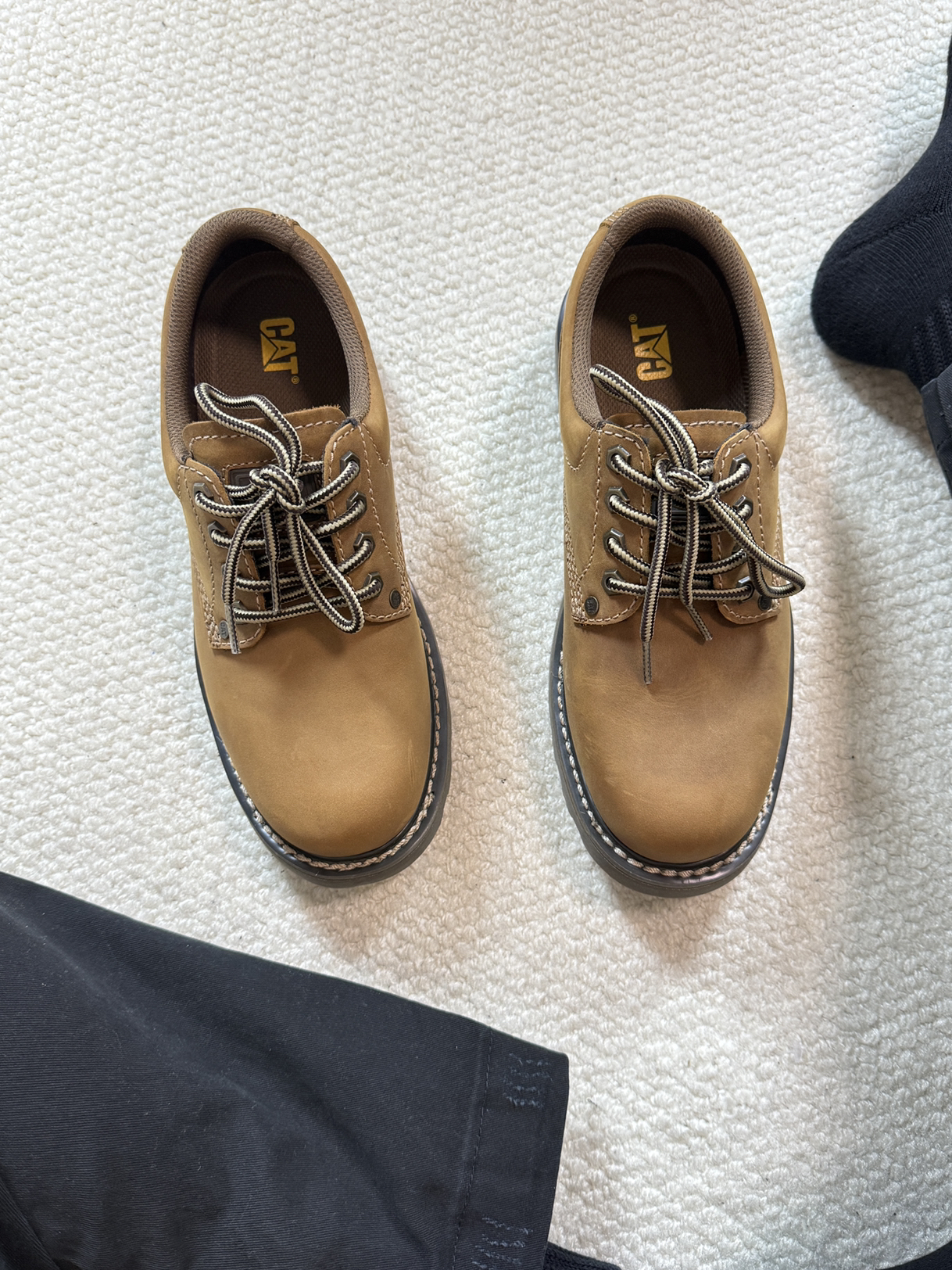 一双好的工装鞋,是陪你上山下河的硬核伙伴!首先是手感,能明显感觉到重工手艺,质感拉满。而且 CAT 家的这双鞋子很适合秋冬的硬核穿搭。包括鞋子的材质,给人的感觉就是这双鞋子穿不烂!整体给人的感觉就是耐穿,扛造!好看百搭!硬核感拉满!