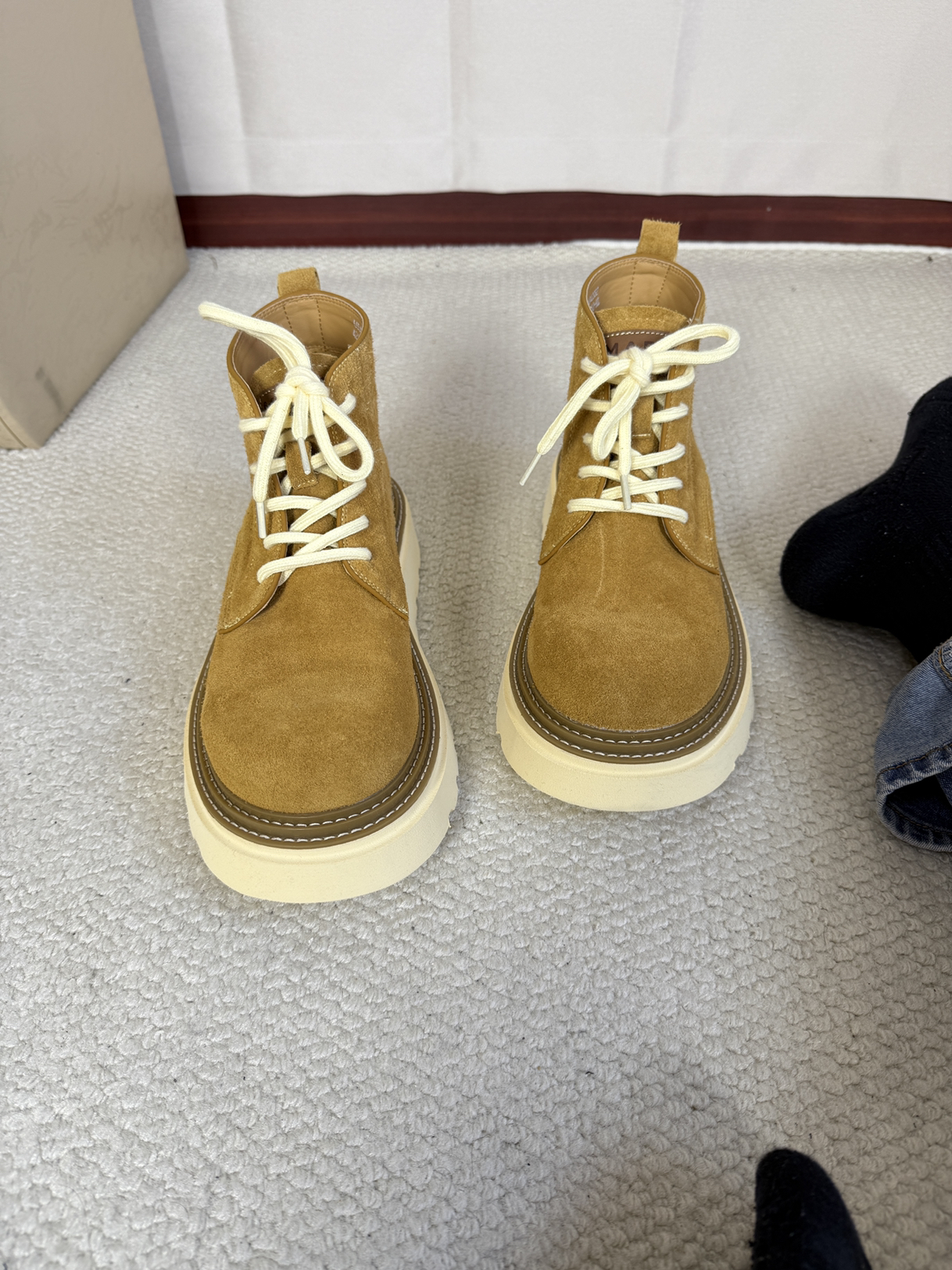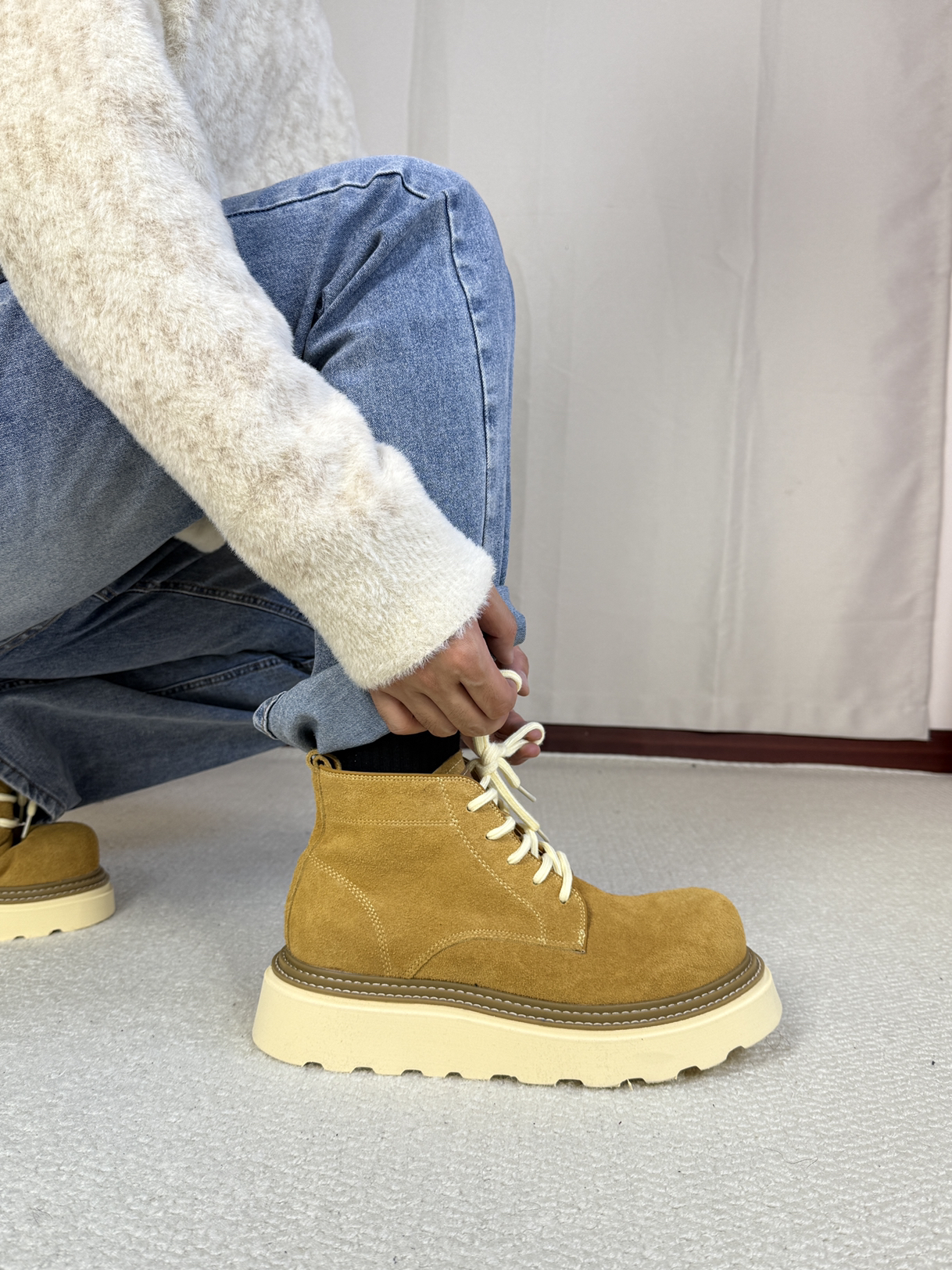 姜黄色的鞋子给人感觉也太干净了吧!整个上脚就是那种不想脱下来的感觉!而且秋天搭配这种浅色衣服就是感觉很清新很干净! 这双 马克华菲/FAIRWHALE 家的大漠黄短筒马丁靴,首先是用了牛皮革面料,整体摸着很舒服柔软,其次就是鞋底的一个增高效果,和颜色差异化。整体很漂亮!穿上也很好看!