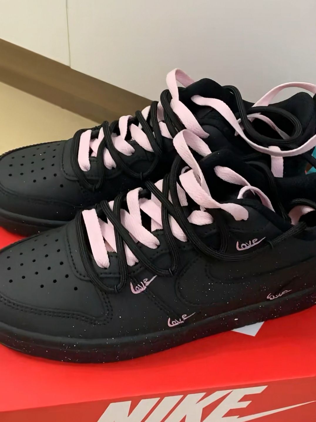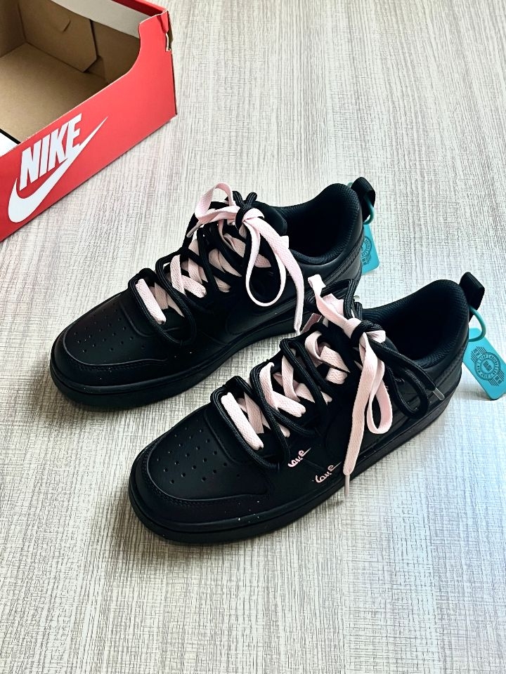 今天分享这双是Nike的黑粉court配色,好看🤩 真的好漂亮好低调 特别喜欢鞋子侧面的小涂鸦 感觉这个小细节让整双鞋子变得有态度起来 而且黑色不容易脏 搭配工装裤是甜酷辣妹;搭配百褶裙又是甜美俏皮