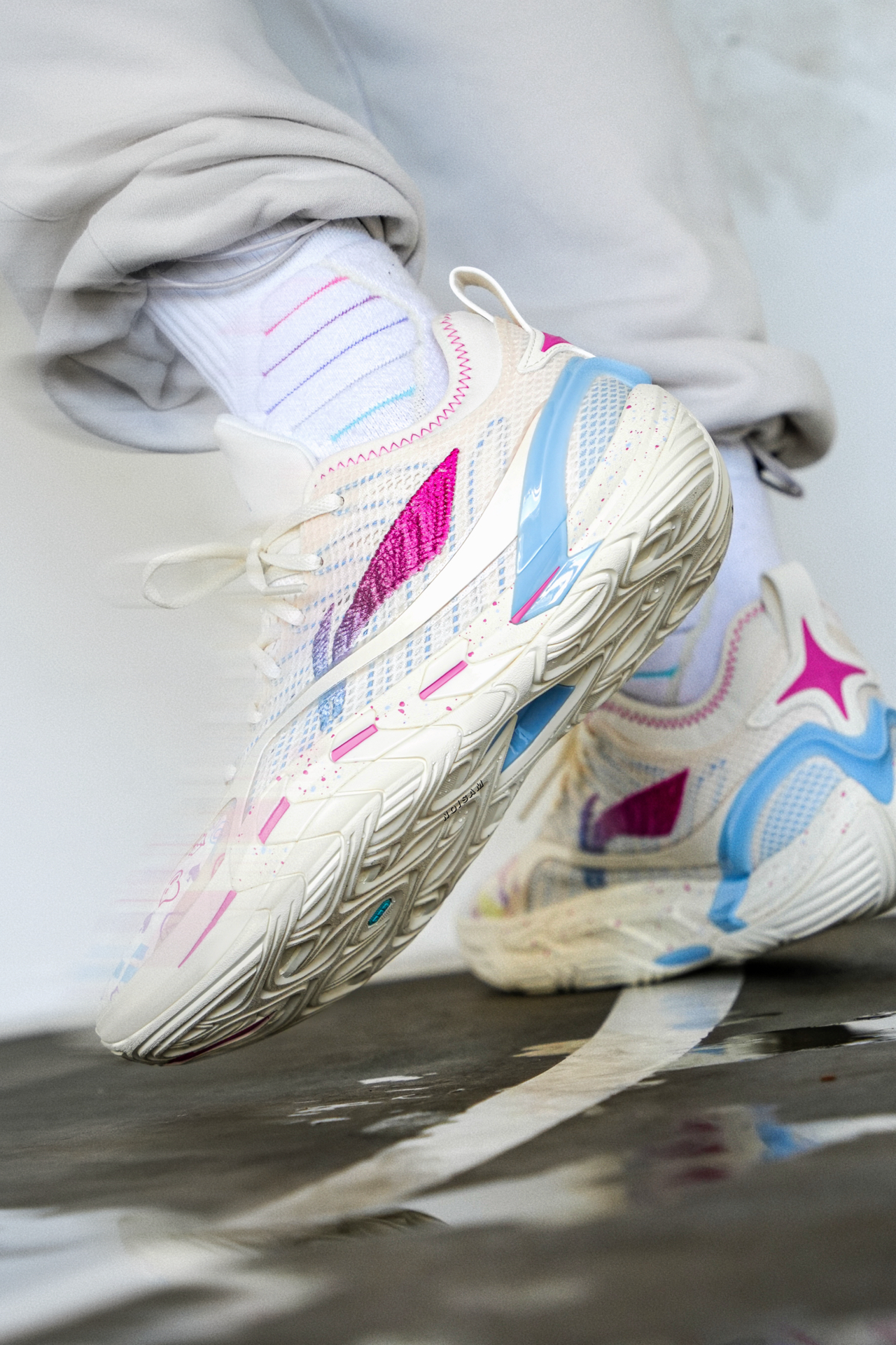 今日份球鞋上脚: 👟李宁全城13ENCORE 配色带点粉带点浅橙黄的感觉,配双黑袜子或者白袜子都很OK哦,蛮特别和脱俗的一个颜值! ⛹️性能简评: 除了有点力线内扣(但我觉得为了侧向发力而设计的,设计师不会不懂的啊)其他方便稳定缓震均有,很适合大众篮球爱好者穿着!尺码正常选! #一人一双篮球鞋 #新鞋零时差 #韦德全城13Encore