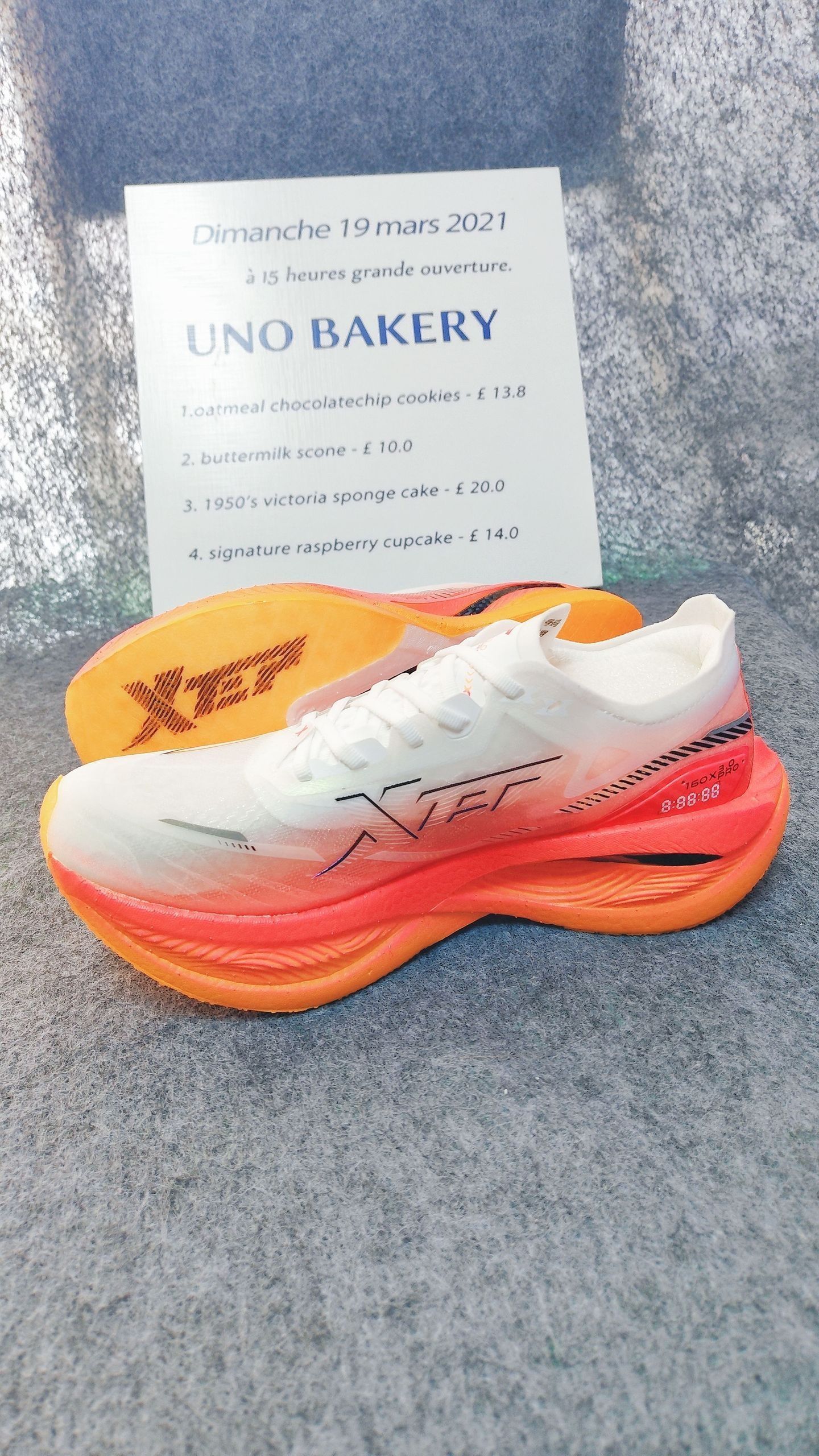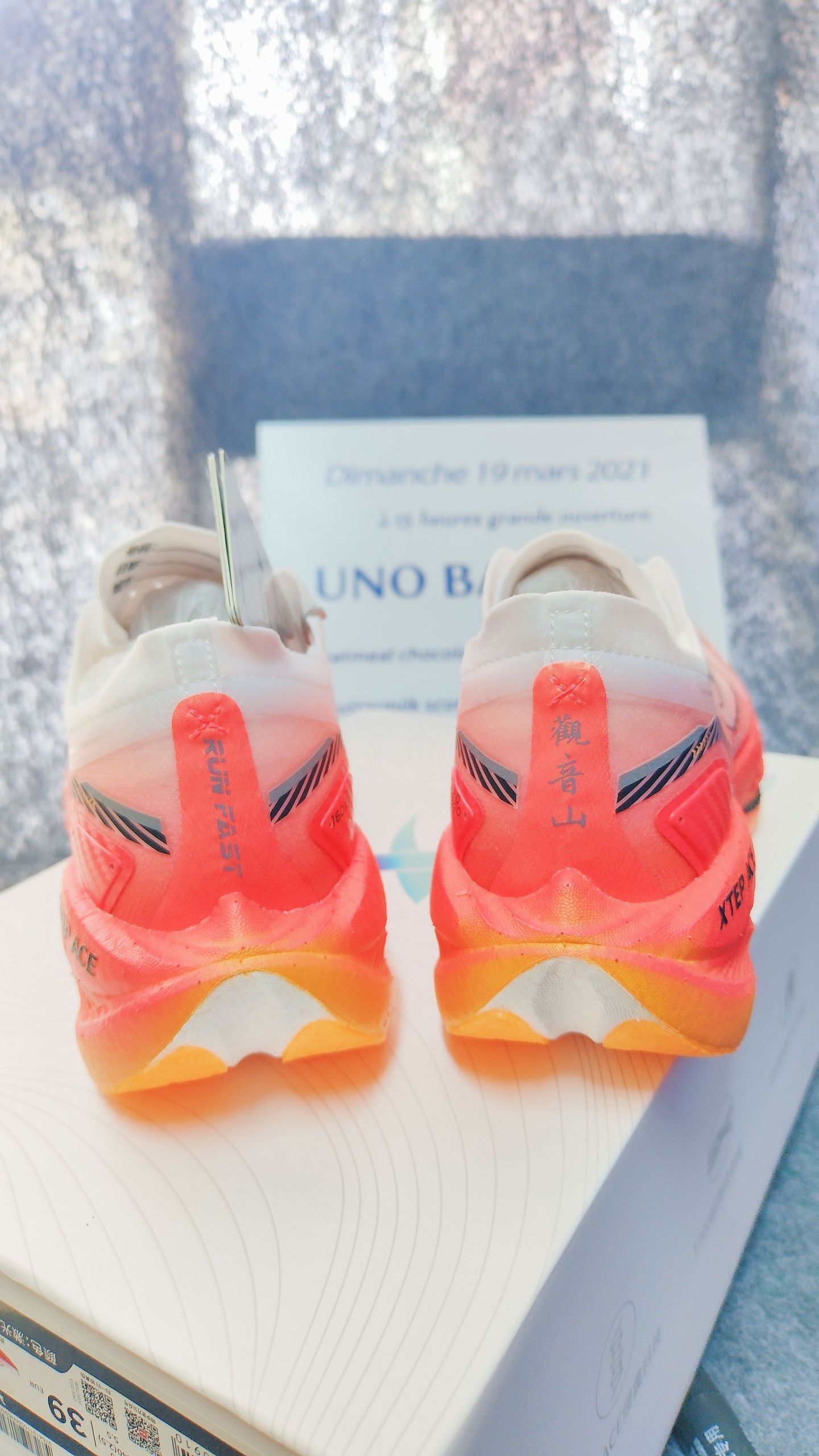 白到橙的渐变像把日出揉进鞋里,半掌碳板藏着“推进器”——落地是软弹的包裹,蹬地是往前窜的劲儿。 配速表跳得再快,鞋尖的光泽都比风先掠过跑道。晨跑时像踩了团流动的暖光,连路人的视线都跟着鞋尖晃。 这双“火烧云”,让每一步都像在追光。