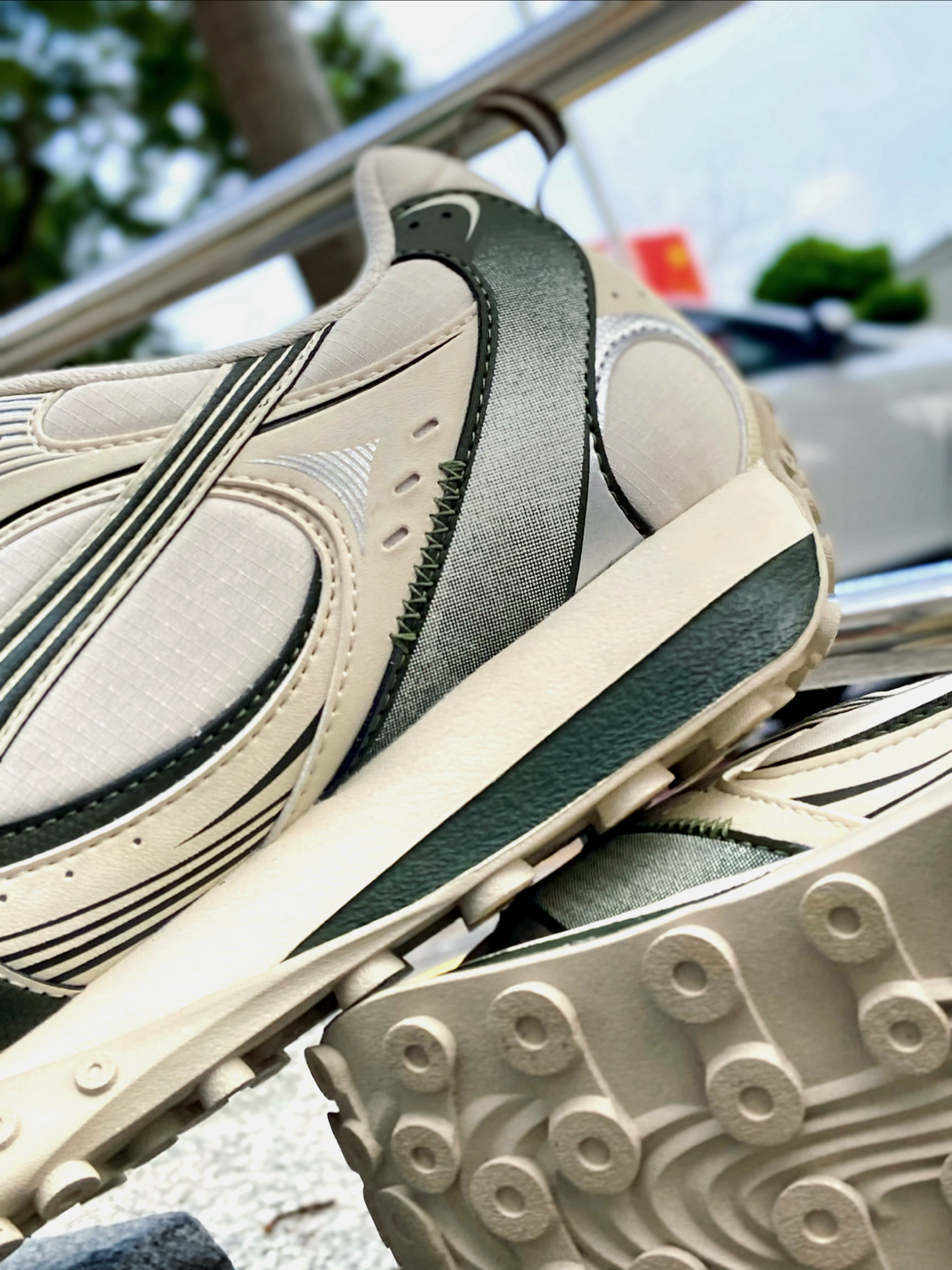 第一眼就被这双章鱼鞋的配色拿捏了!米白鞋身搭配深绿波浪条纹,鞋底还有像章鱼吸盘一样的凸起圆点,设计感直接拉满。我个人感觉它小众又不浮夸,穿出门基本不会撞款,每次低头看jio都莫名开心~ 上脚体验更惊喜!鞋底软软的蛮舒服,走久了也不累脚,逛街暴走完全无压力。另外它的包裹性也很棒,鞋带一系就能贴合脚型。 搭配方面我也满意,配灰色运动裤或者牛仔裤都很潮,瞬间给基础款加分!尺码正常不偏的 ! #被这...