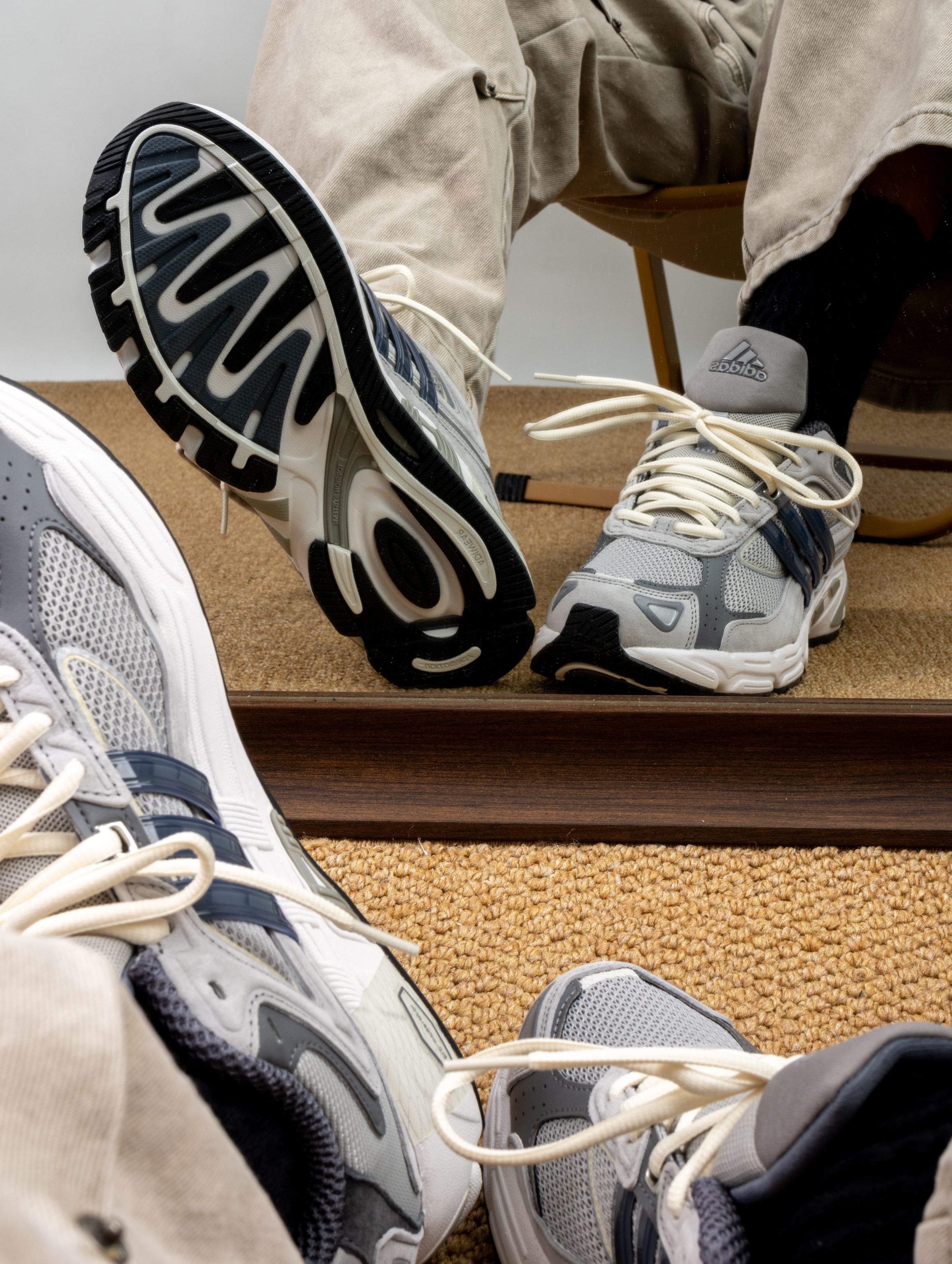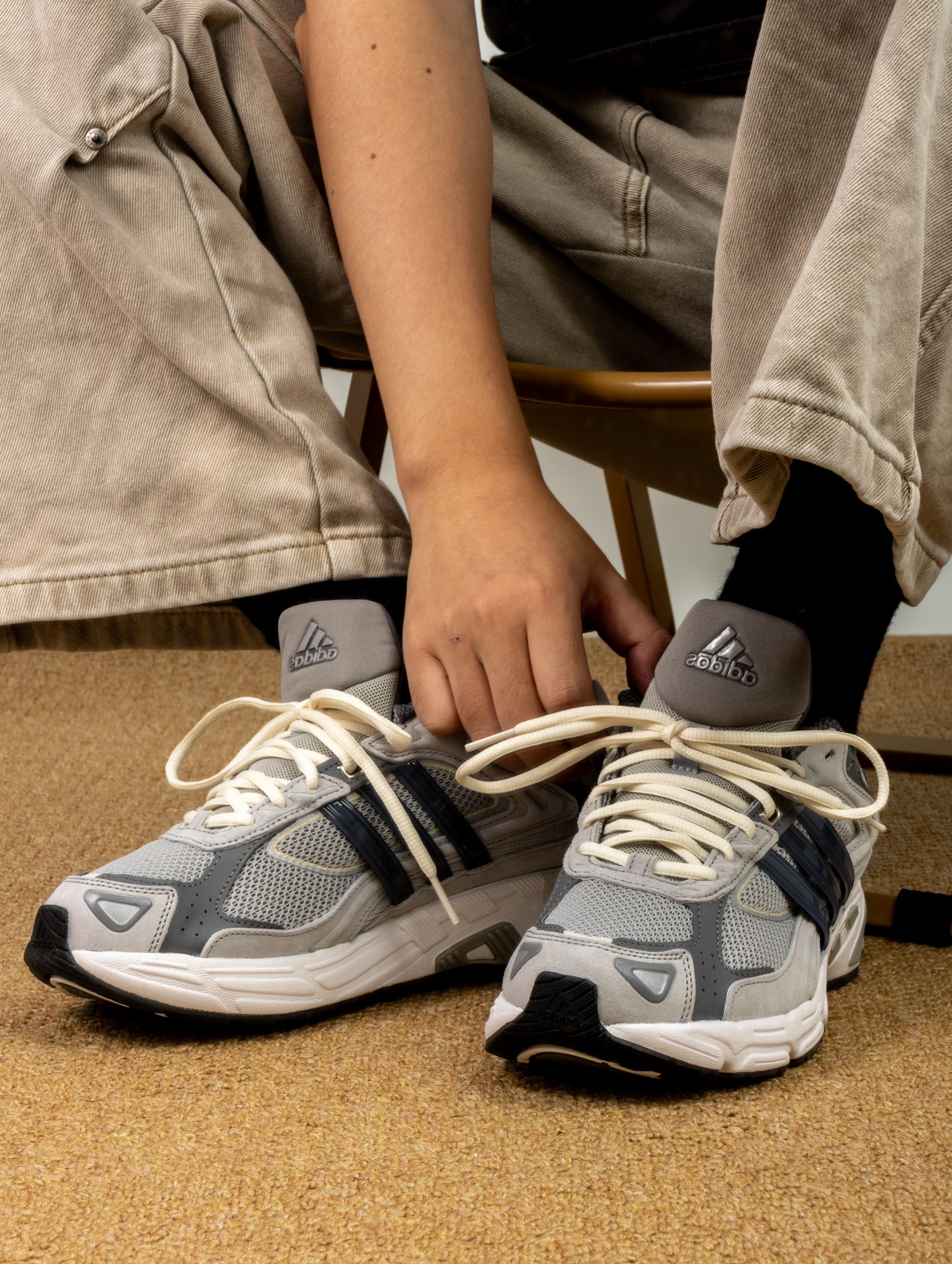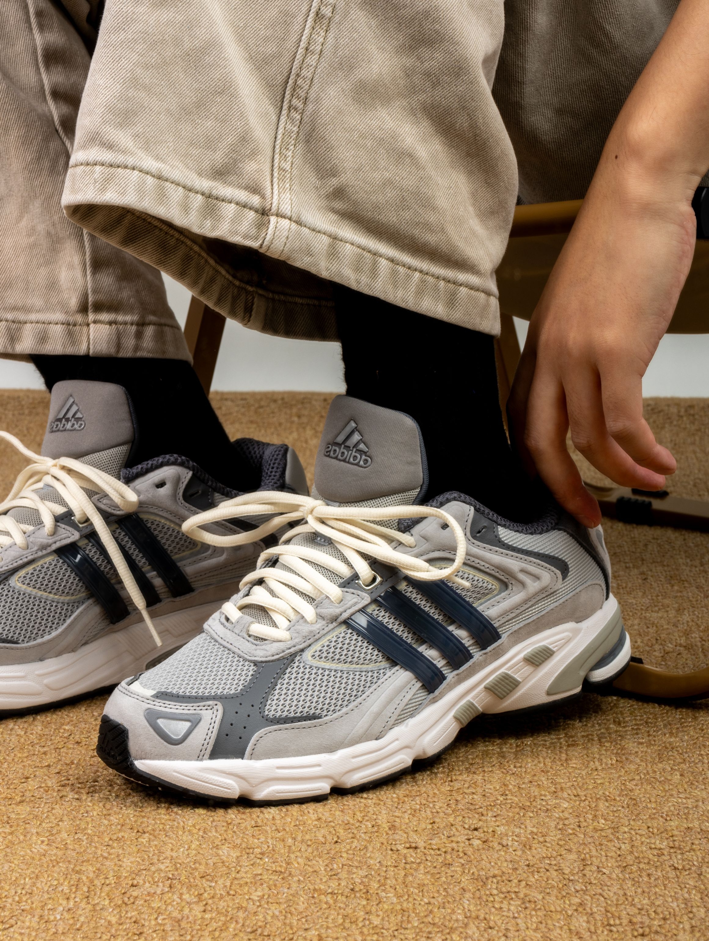 这双adidas Response CL一上脚就被惊艳了 深灰色麂皮拼接网面,质感直接拉满,那种复古做旧的调调拿捏得恰到好处。重点是脚感。完全不像有些复古鞋那么板脚,走了一整天路感觉特别轻盈,鞋底软软的又有支撑,逛街暴走毫无压力。 而且它真的巨好搭,配阔腿裤、运动裤或者简单一条牛仔裤都很出彩,自带松弛感。