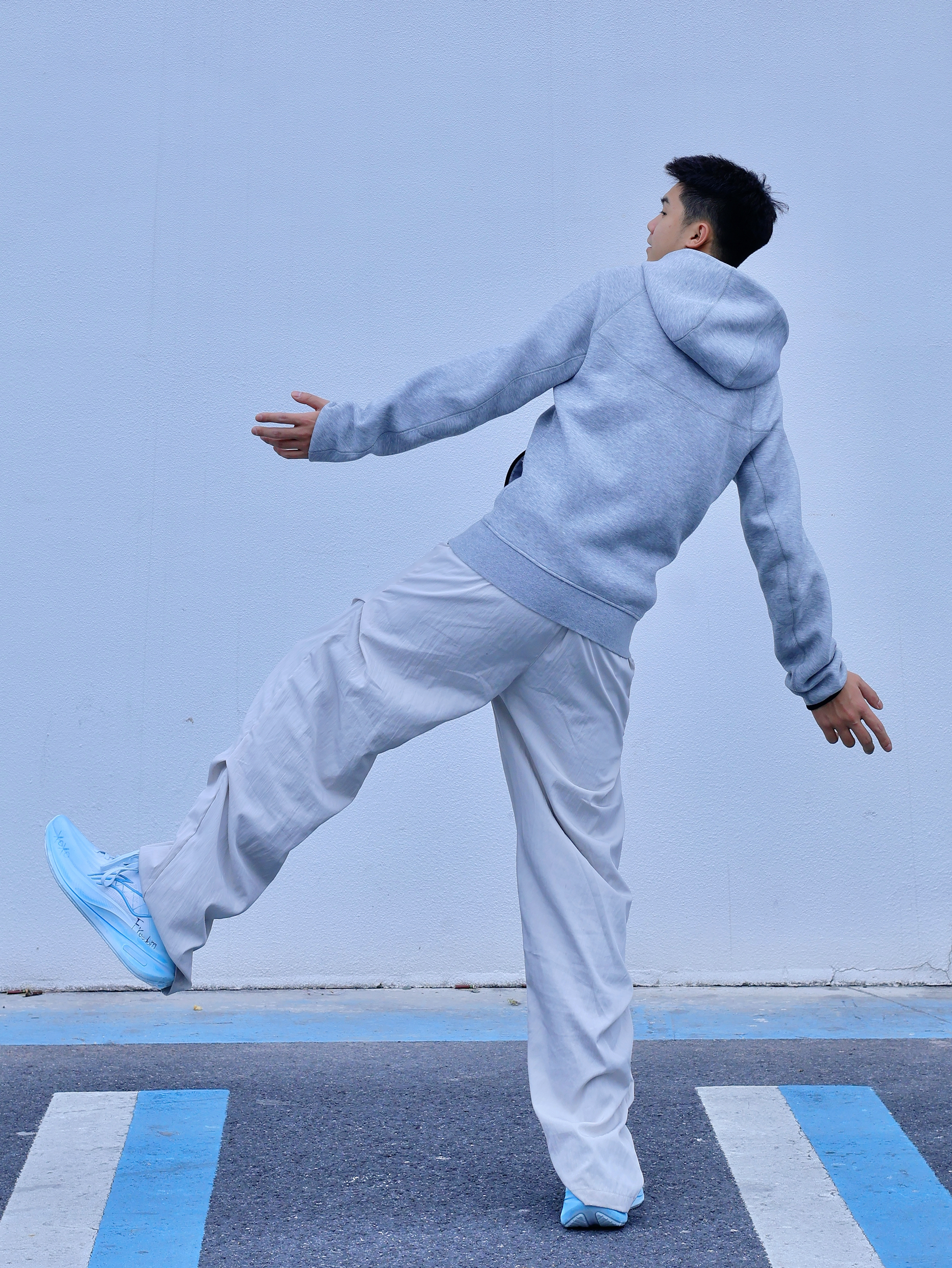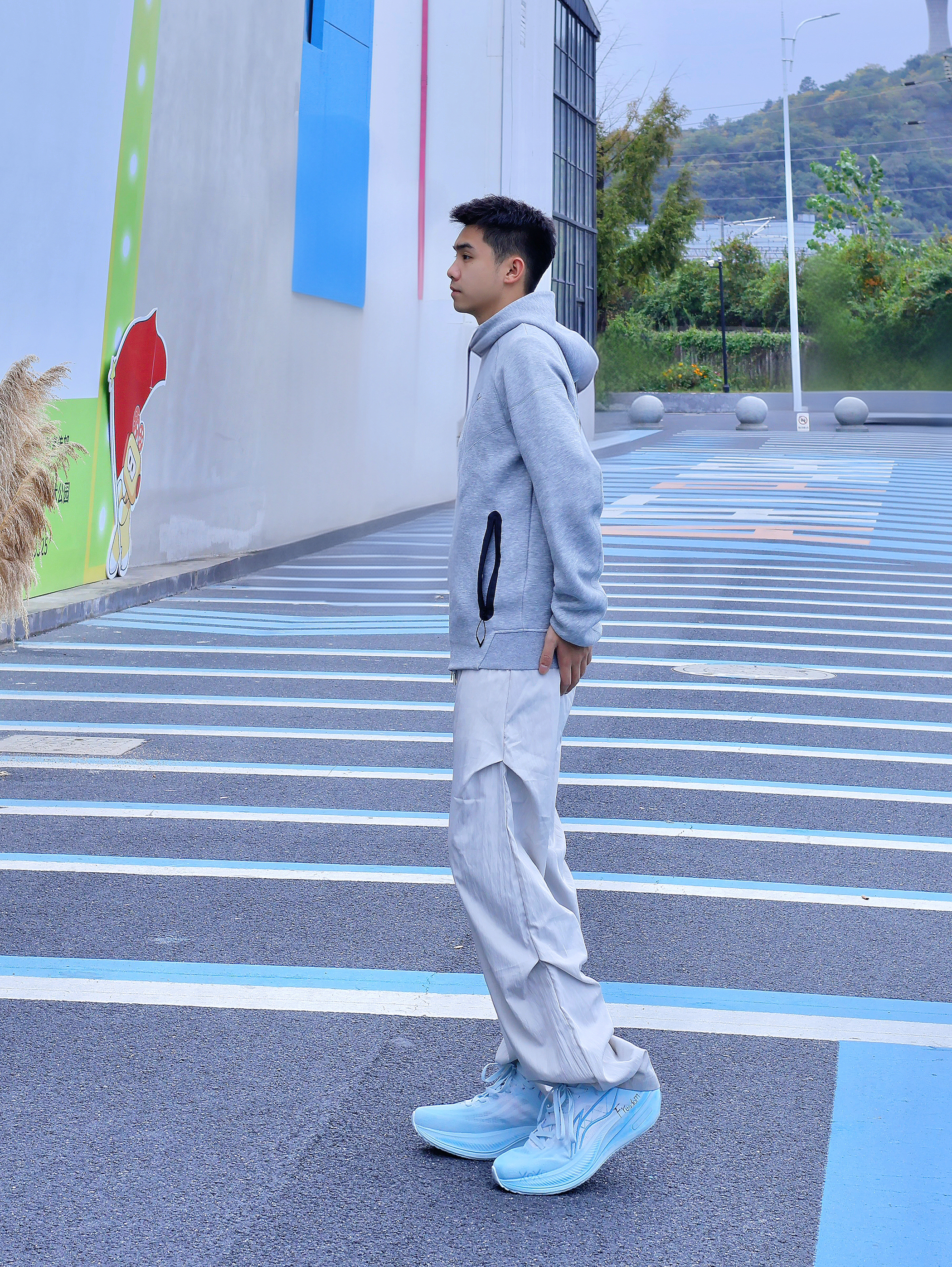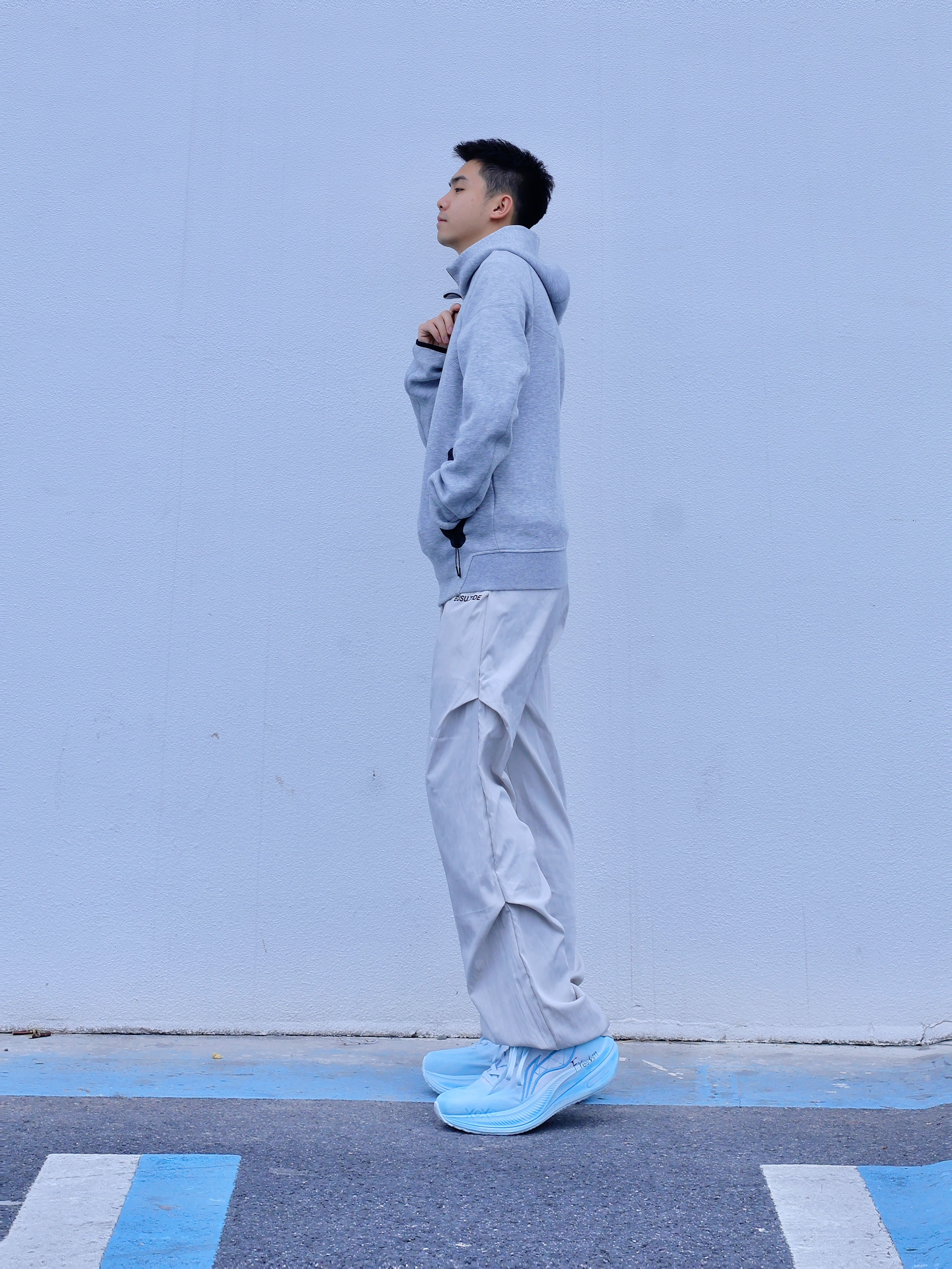 想要简约好看的穿搭 除了一身黑一身白 还有低饱和度穿搭 灰色系一般是我的首选 灰色基础卫衣外套搭配同色系弯刀裤 更显简约干净 鞋子选择了李宁的越影系列,脚感也不错 白蓝的配色好清新 是我蛮喜欢的🩵蓝天白云的配色☁️ 整体就突出一个简约感 通勤或出街都能轻松驾驭~