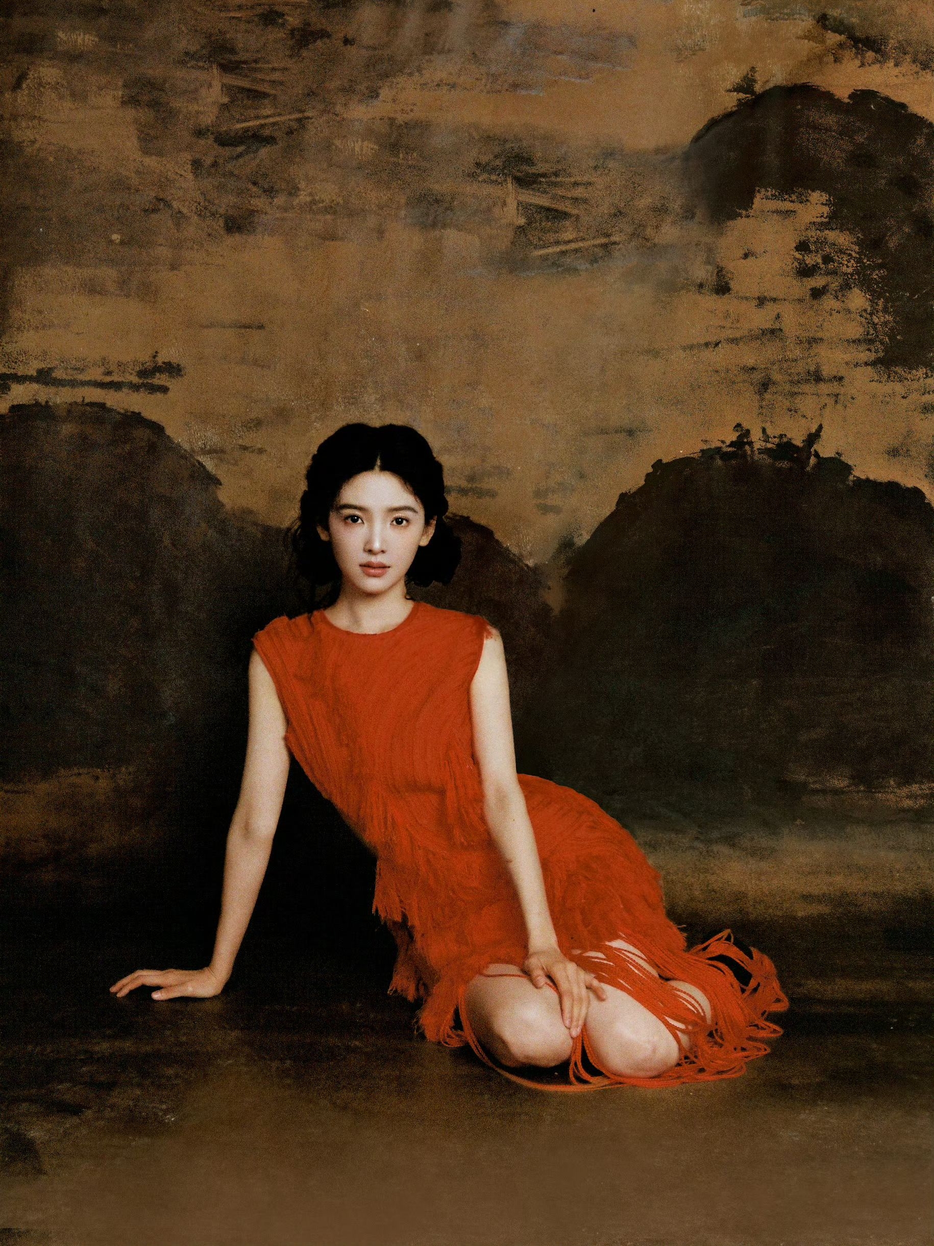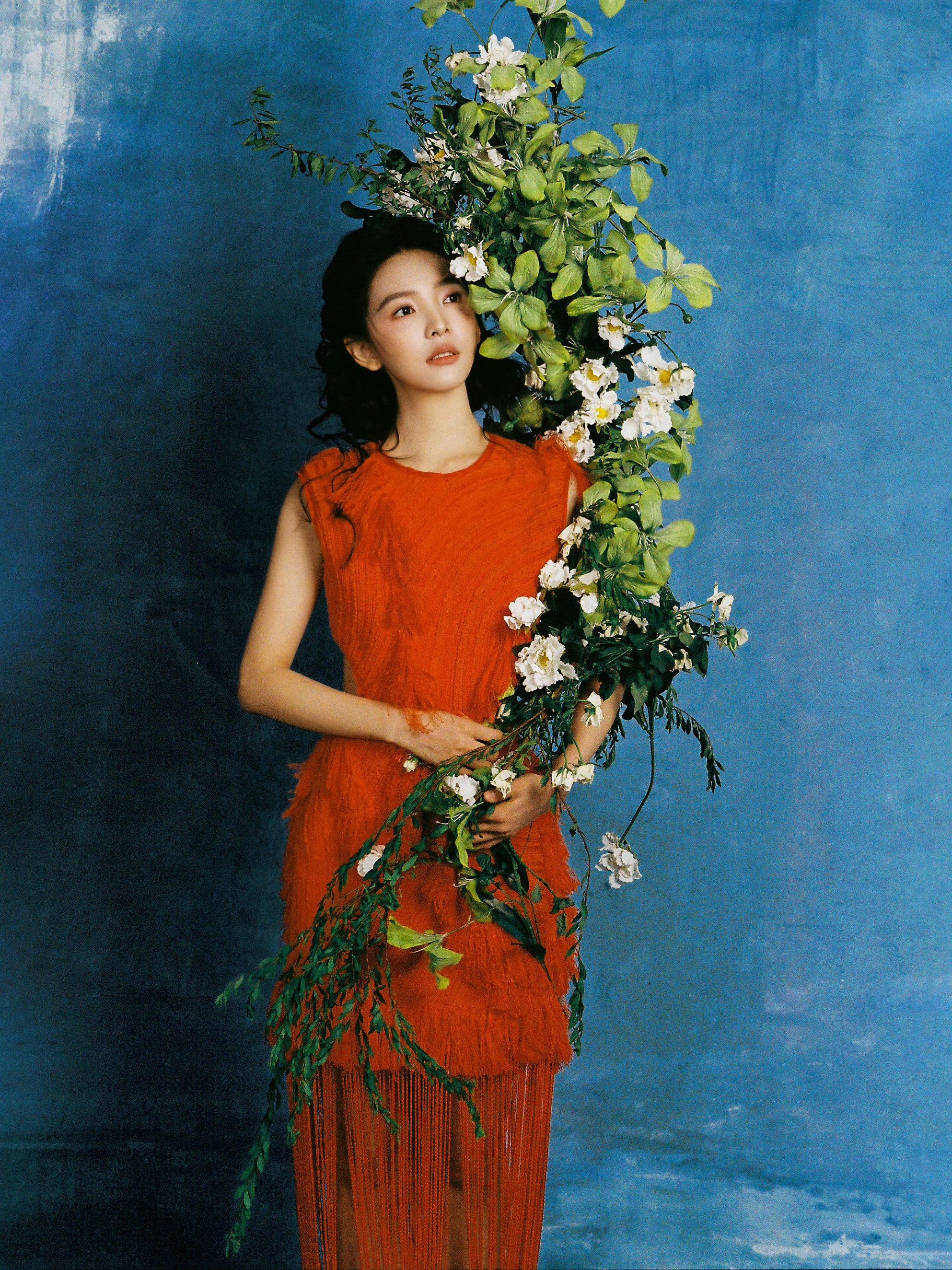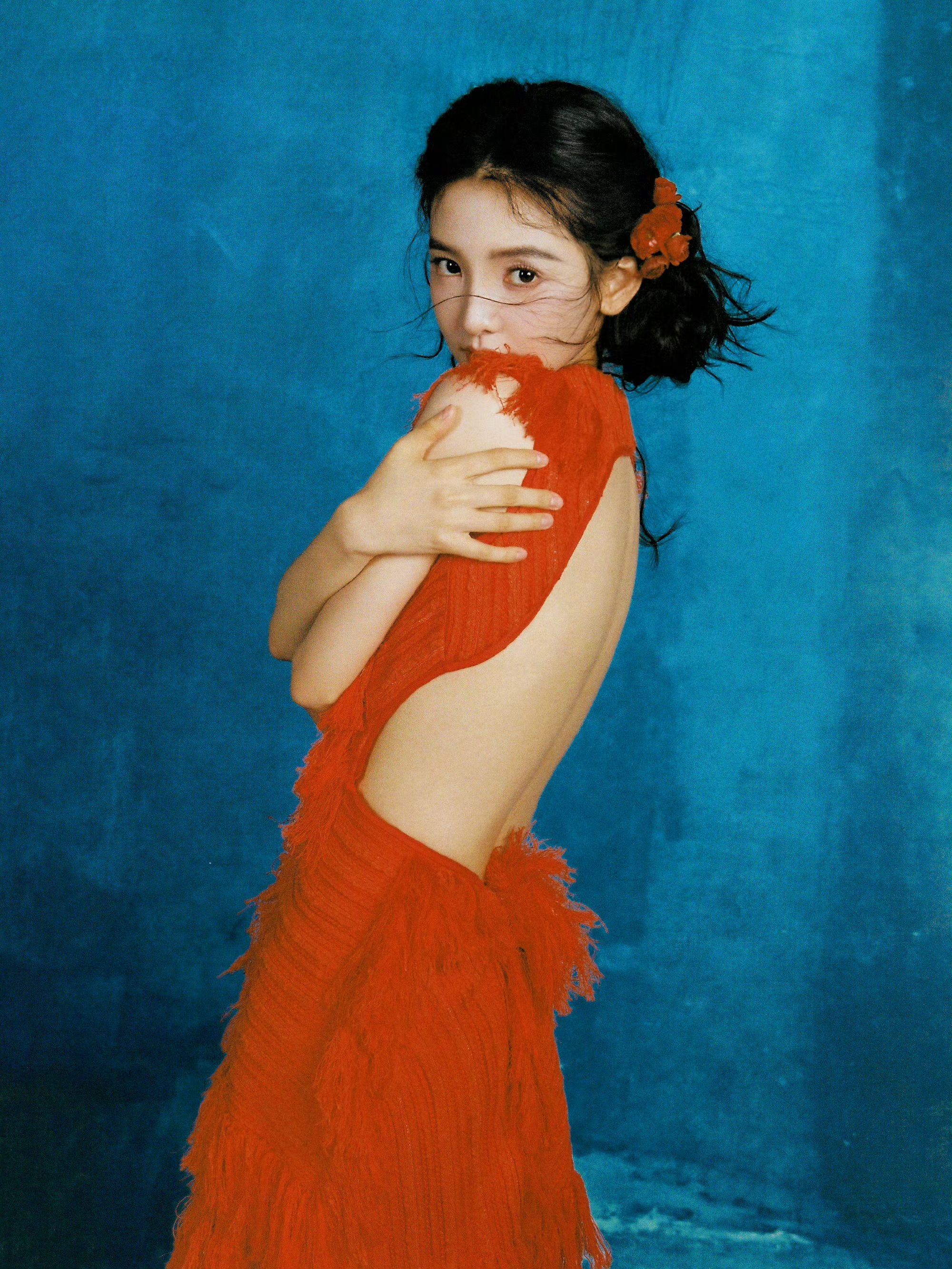 章若楠生日写真直接美出新高地!🌹 一袭Xu Zhi红色流苏裙上身好美,露背+侧腰镂空又添了点小性感,配上复古盘发和红罂粟花饰,是从水墨画卷里走出来的明艳美人没错了! 图源:章若楠工作室