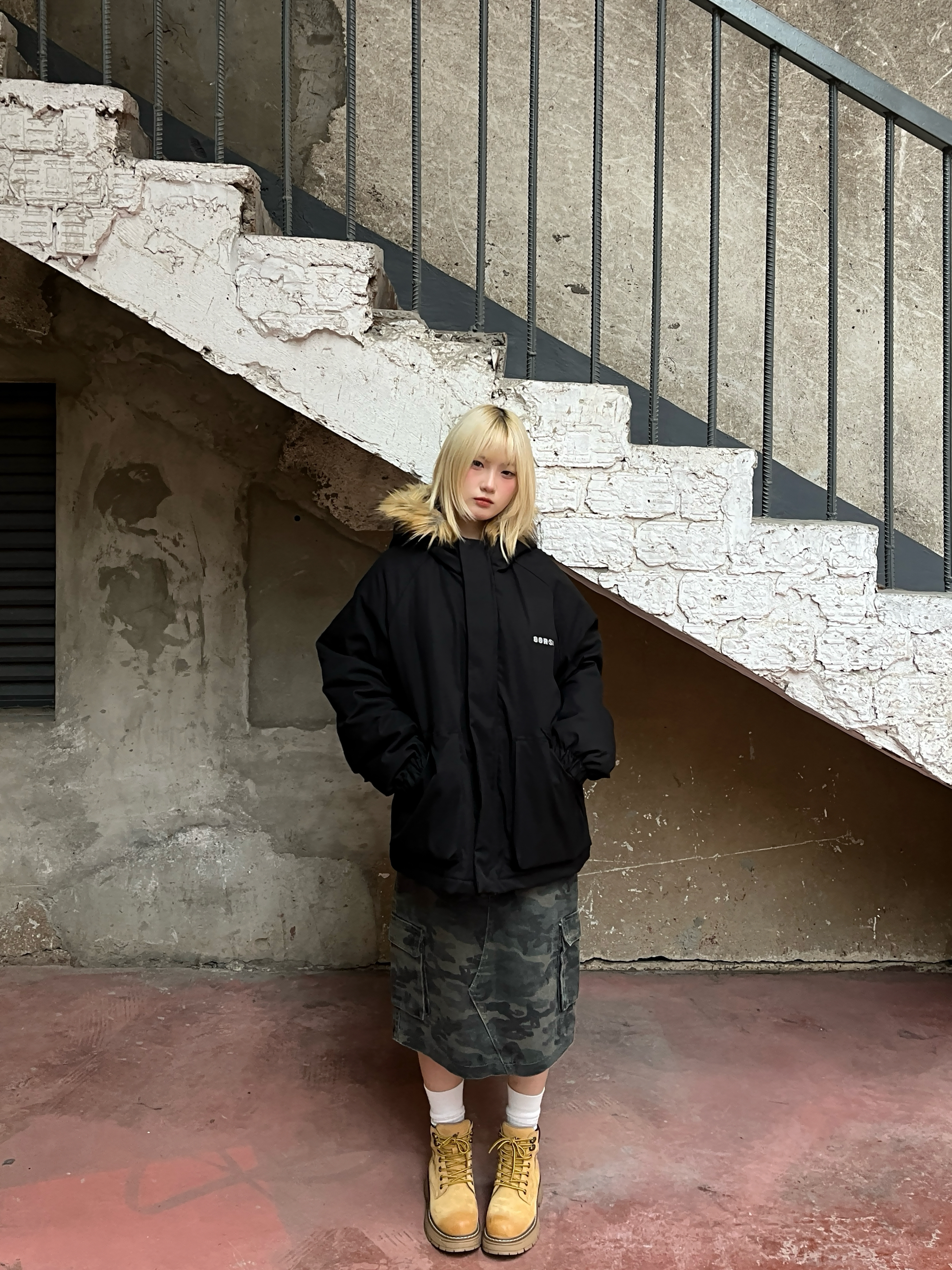当然是厚厚的派克服外套! 大毛领太舒服啦 鹅绒真的很保暖 再搭配复古迷彩裙和马丁靴完全美式女孩👧🏼