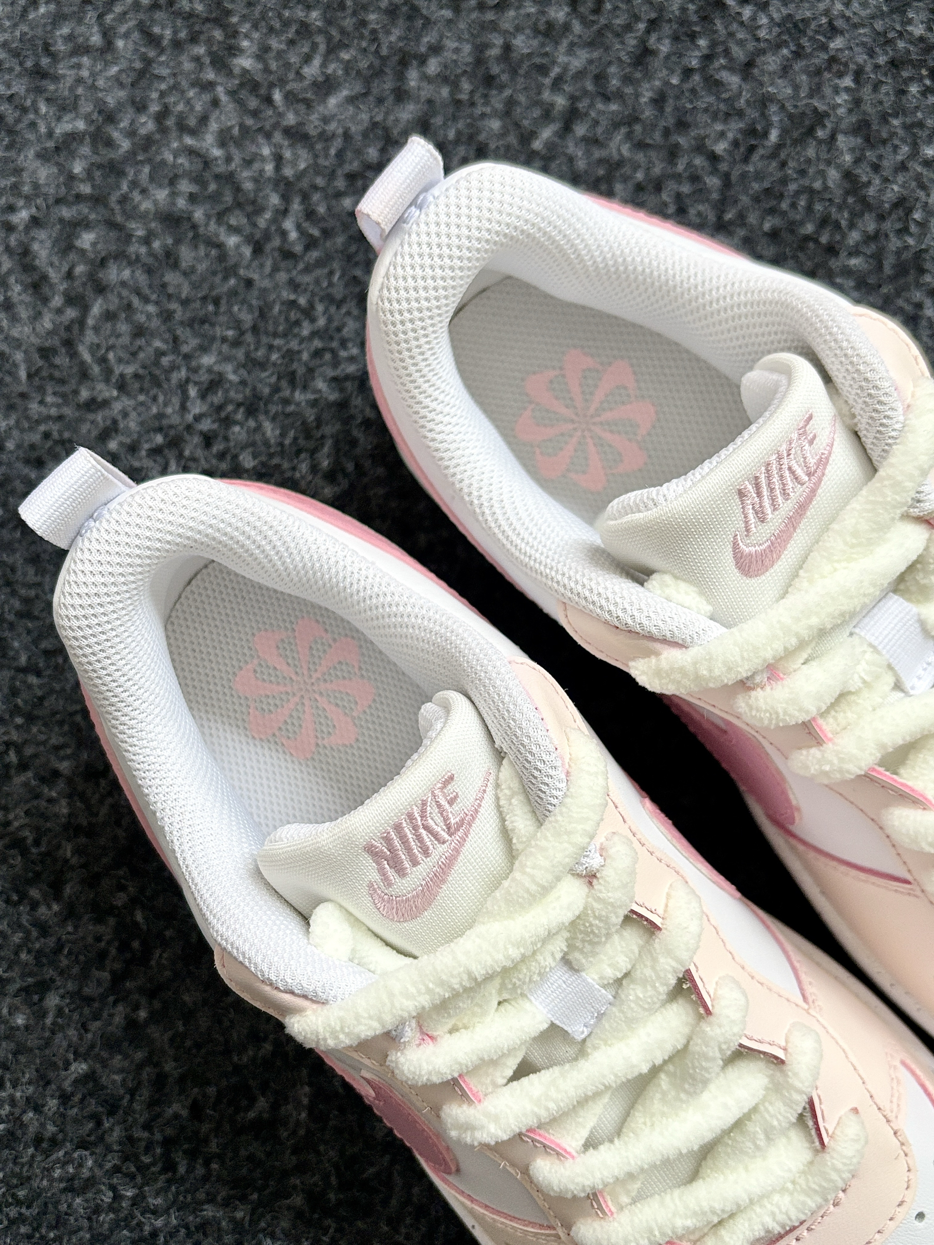 我的今日份穿搭 OOTD~ 这双Hello Kitty 定制涂鸦 Nike鞋好可爱 粉白配色🩷🤍甜美又温油 鞋身的Kitty和猫爪印涂鸦萌萌的可爱鼠了 鞋底纹路清晰防滑耐磨鞋子穿上软软的狠舒服 搭配毛绒鞋带设计感满满✌️ 不管逛街还是日常穿它出门谁还不是个甜妹呢~ 走一天下来也没有不适感不累脚😌