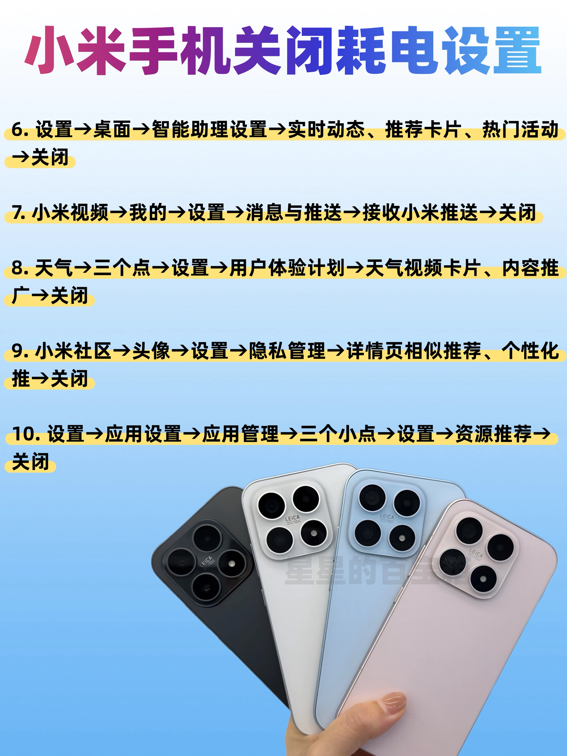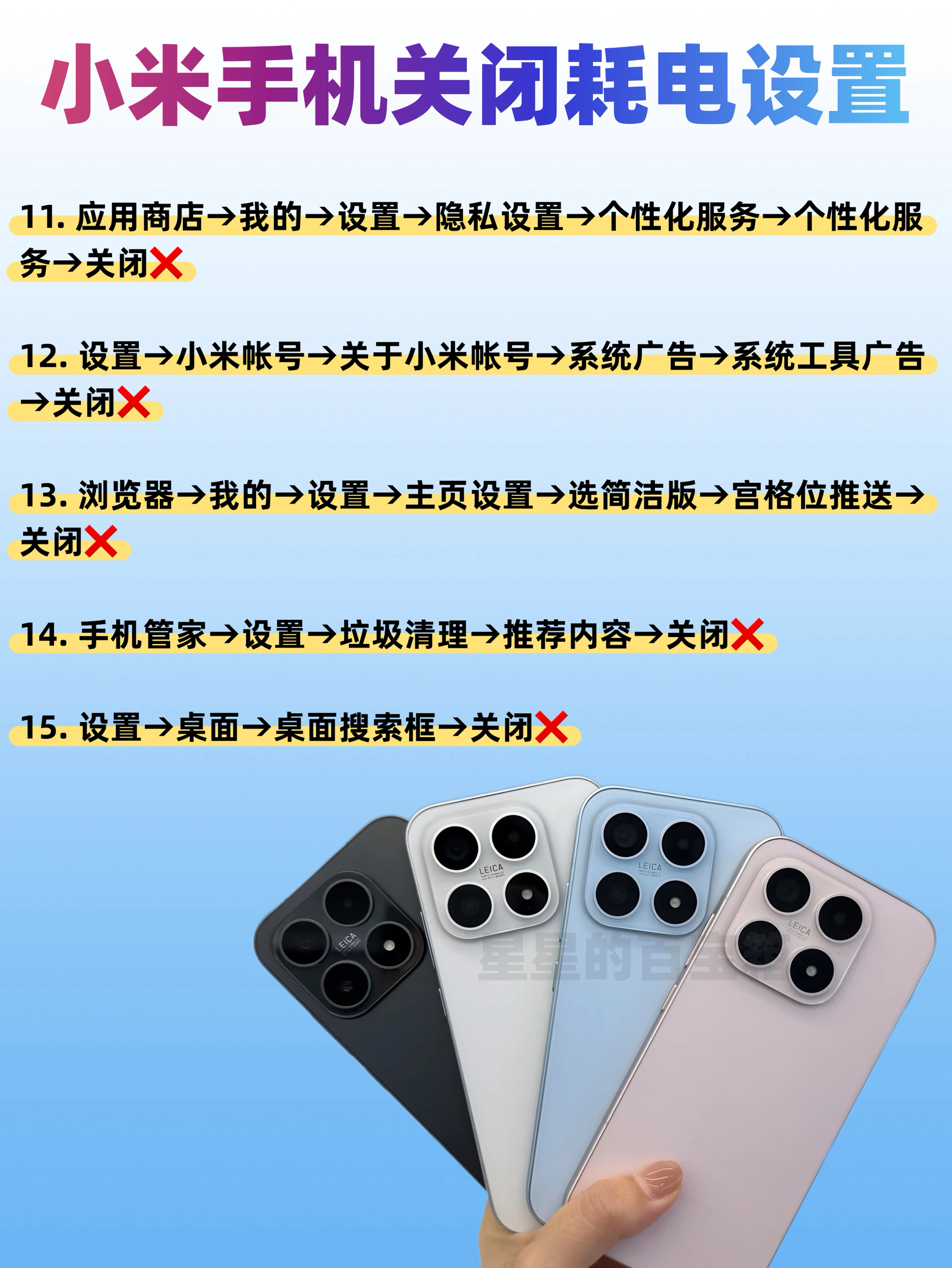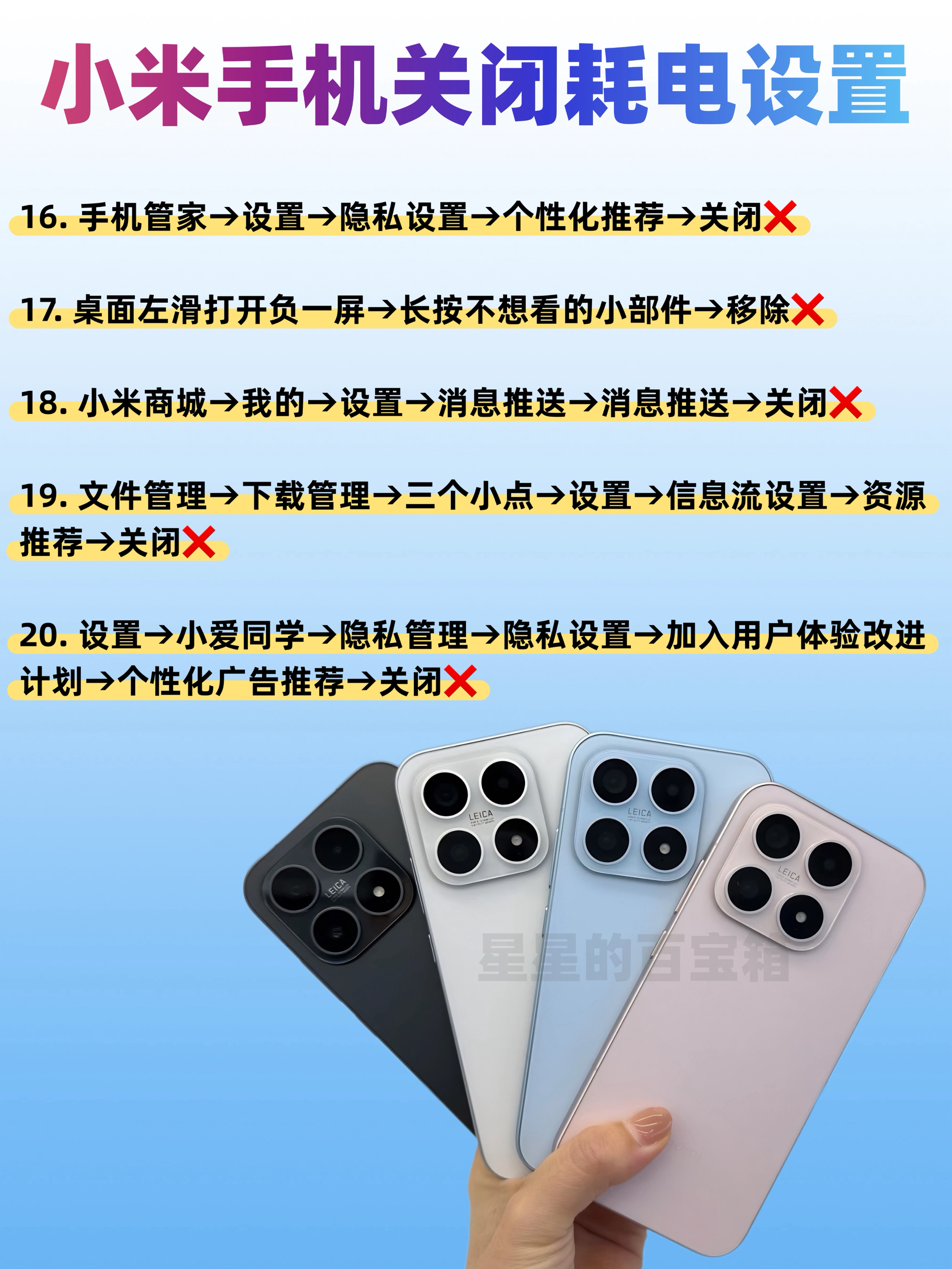 🌈如果你的小米&红米📱也感觉电量不经用,不一定是手机的问题,有可能是你没有设置对! 🌈今天给大家收集了小米手机20个加速耗电的设置,检查一下,说不定就是某个设置导致的手机耗电快!快看看吧~