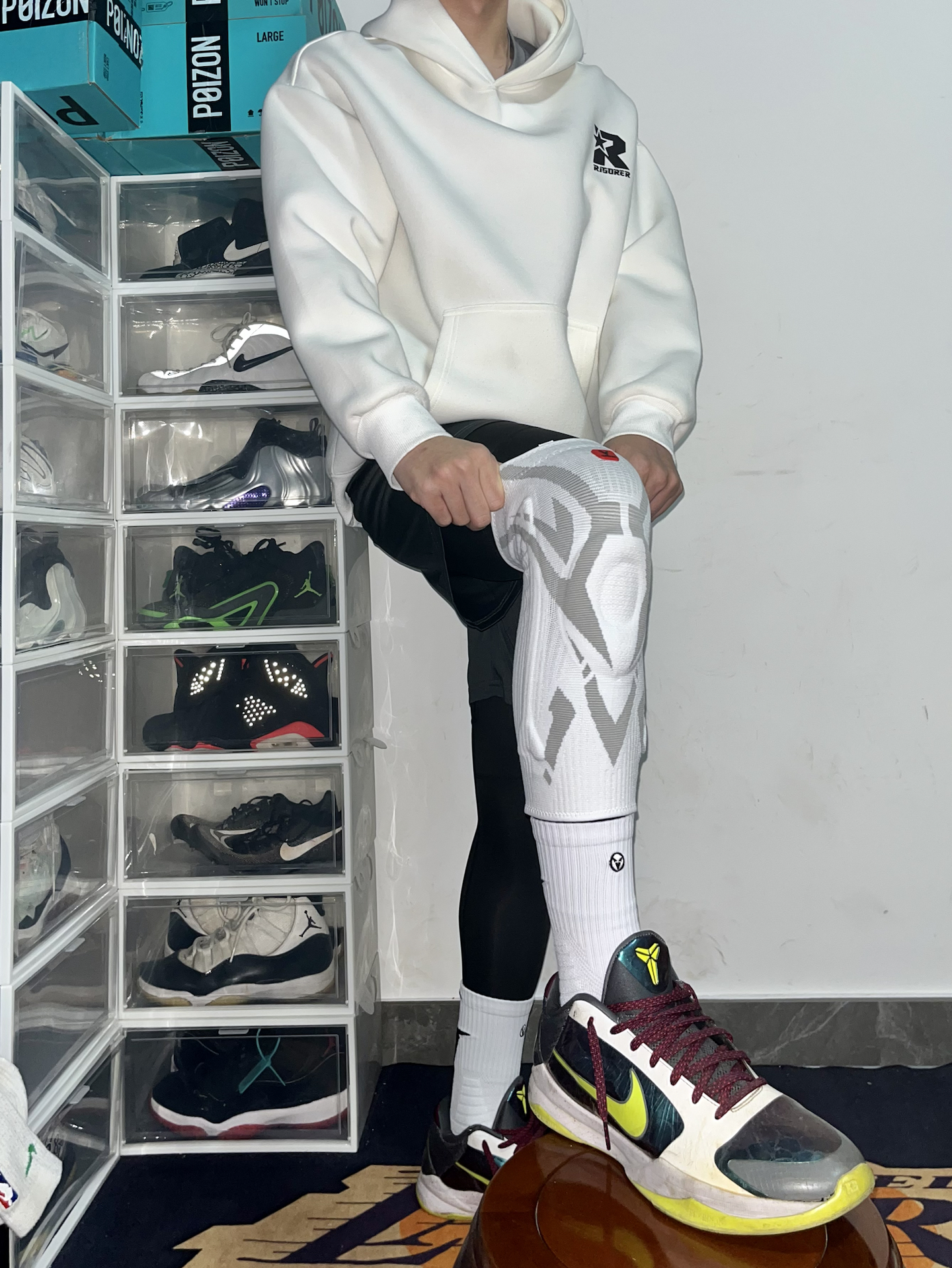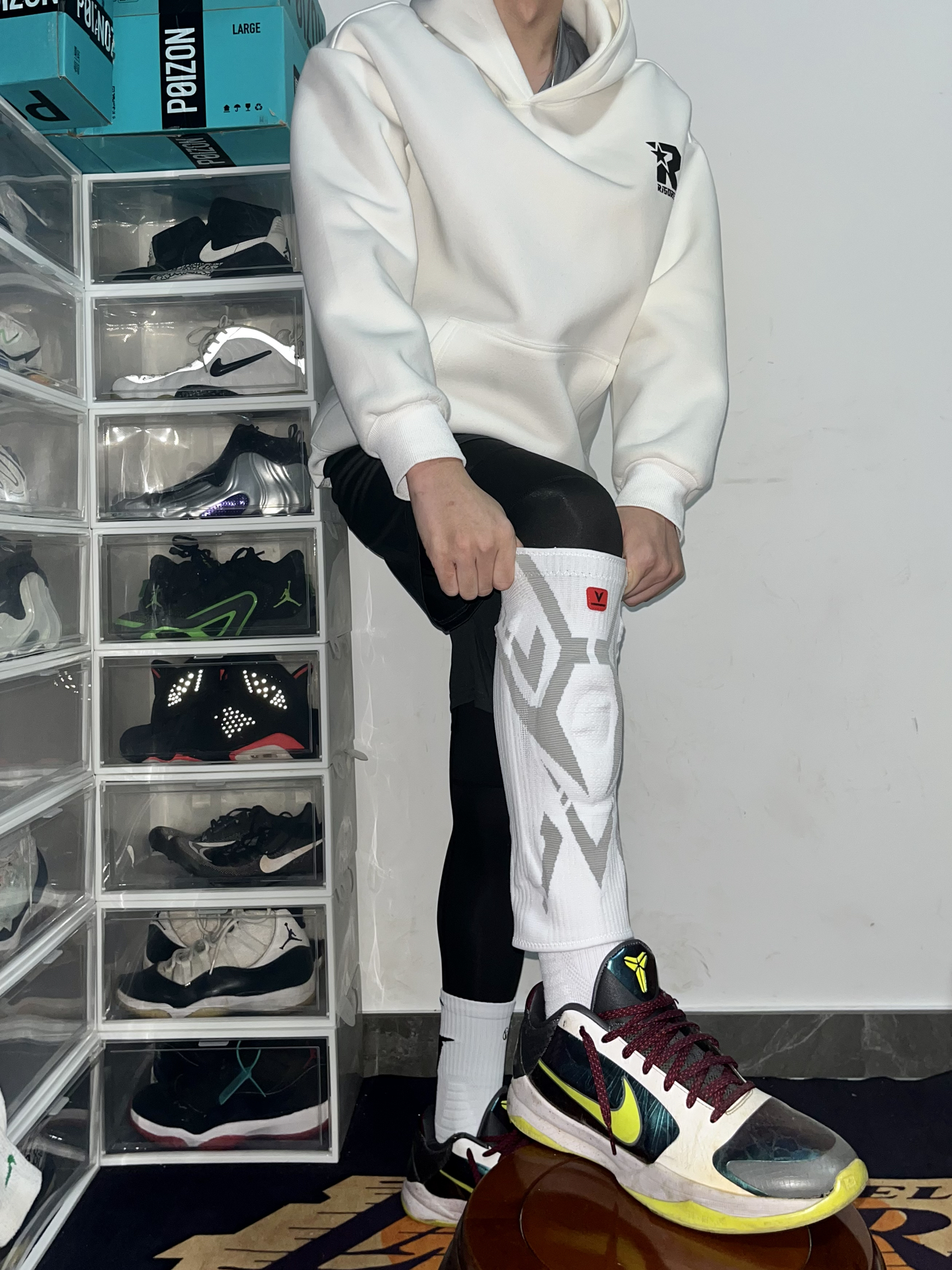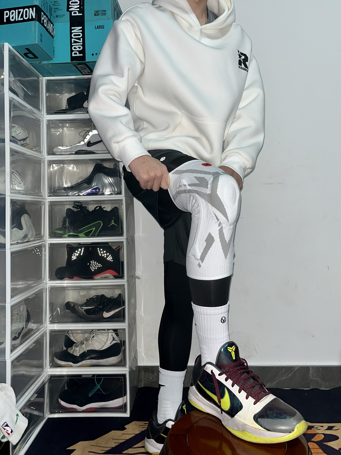 白卫衣+黑球裤的“上长下短”,干净利落还藏肉 再叠个 #维动 VEIDOORN 护膝直接把细节——白灰机甲风印花潮到炸,薄款面料贴腿不闷, 弹性支撑把膝盖锁得稳稳的, 急停变向都不带晃的,保暖防护两不误~ 搭球鞋是球场焦点,打球做好防护特别重要! #男生运动风卫裤穿搭分享 #维动VEIDOORN #鞋类宝藏单品 #护膝推荐 #我要上热门球季穿搭