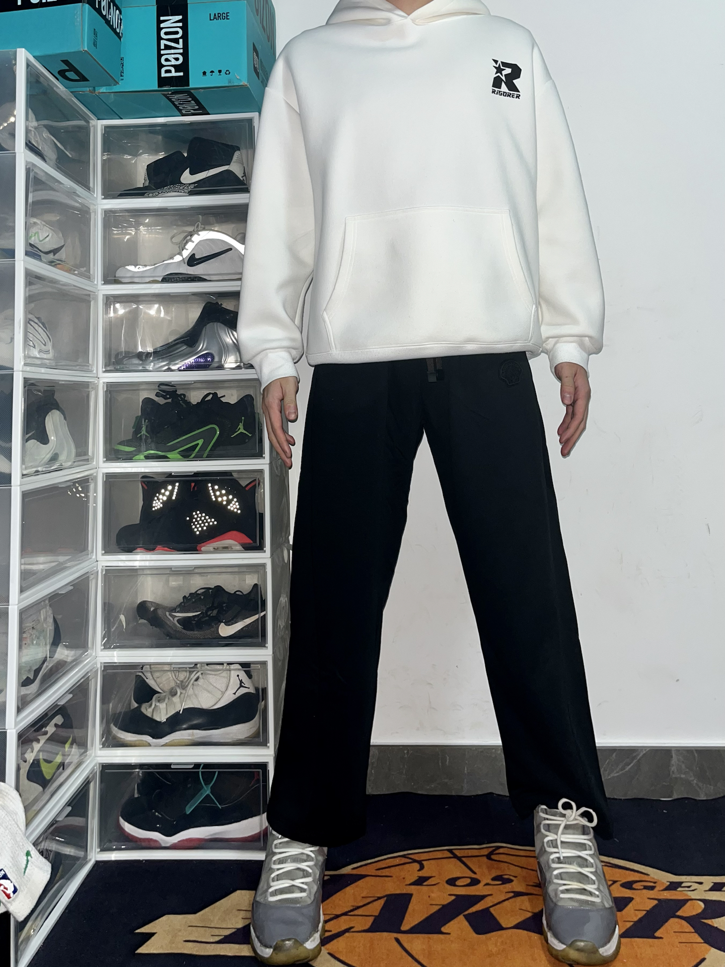 休闲裤真是我的神裤!什么场合风格都合适! 我今天穿的是 #准者 RIGORER 纯色基础款阔腿直筒针织休闲长裤搭配准者卫衣 版型直筒修饰腿型又能拉高比例! 搭配纯白色套头卫衣➕酷灰11 这一身时尚又慵懒很有秋冬氛围感 182/70kg穿L码宽松度刚好~ #男生秋冬慵懒风穿搭 #准者神裤 #黑色卫裤yyds #秋冬必备宝藏卫裤 #初秋OOTD卫裤分享