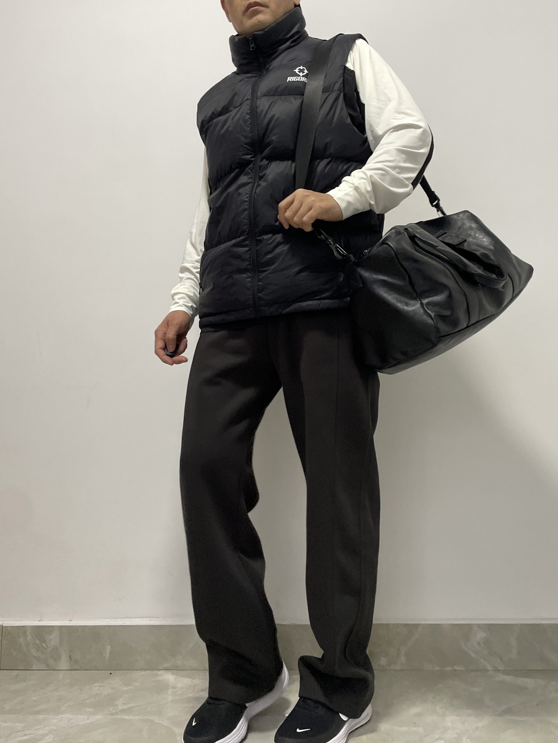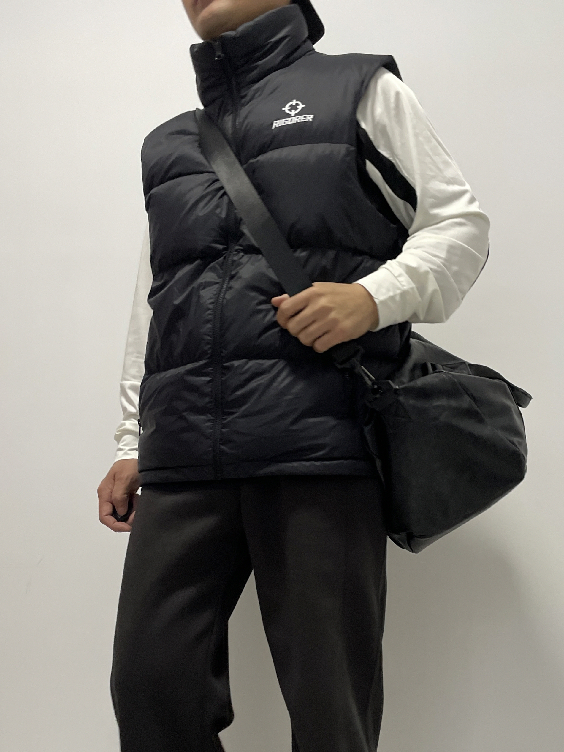 ❤️hi 宝子们好!🤝今日分享: 秋冬叠穿的高级感,这件羽绒马甲直接封神! 今天上身一件RIGORER立领羽绒马甲 哑光黑质感超显高级,蓬松度刚好不臃肿,胸前小标设计简约又有细节,保暖还能当穿搭“层次神器”! 内搭选了黑白撞色长袖,侧边黑条和马甲呼应,低调中带点小心机~ 裤子搭配垂感阔腿休闲裤 宽松版型修饰腿型,面料软软糯糯还抗皱,整套黑系look加了白边点缀,不会沉闷反而很有质感! 最后配个大容...