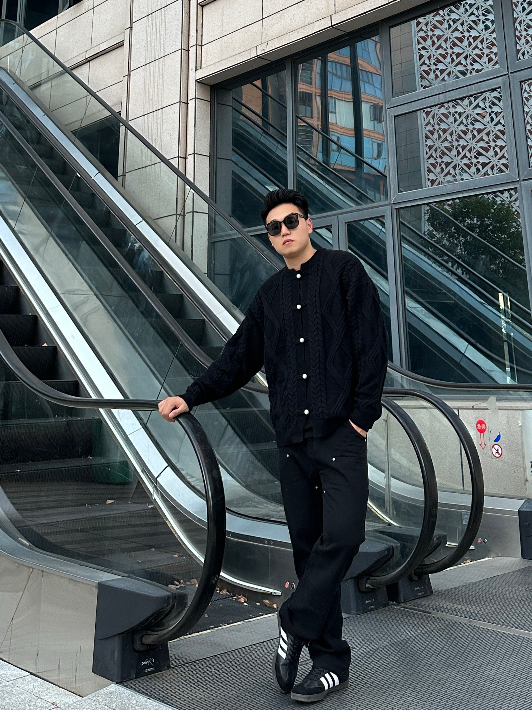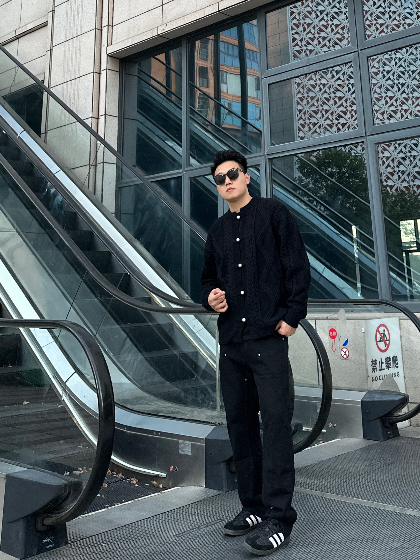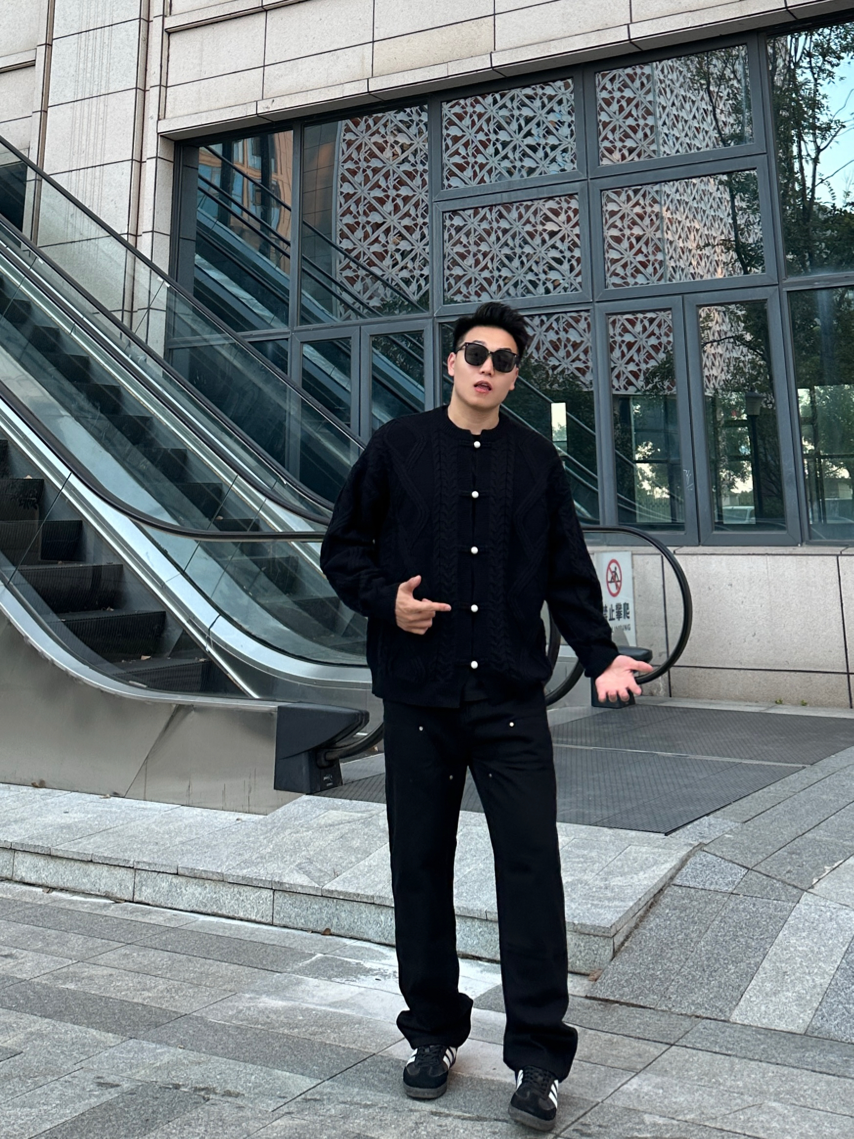今天上身 GOOD 开衫毛衣 整体的设计简约大气 珍珠串连起来的logo图案质感层次感十足 穿起来气质这块拿捏住 轻奢感不少 用料很扎实 摸起来软糯糯的很舒服 秋冬穿再适合不过 搭配同色系的直筒休闲裤 一身黑太拿我了!