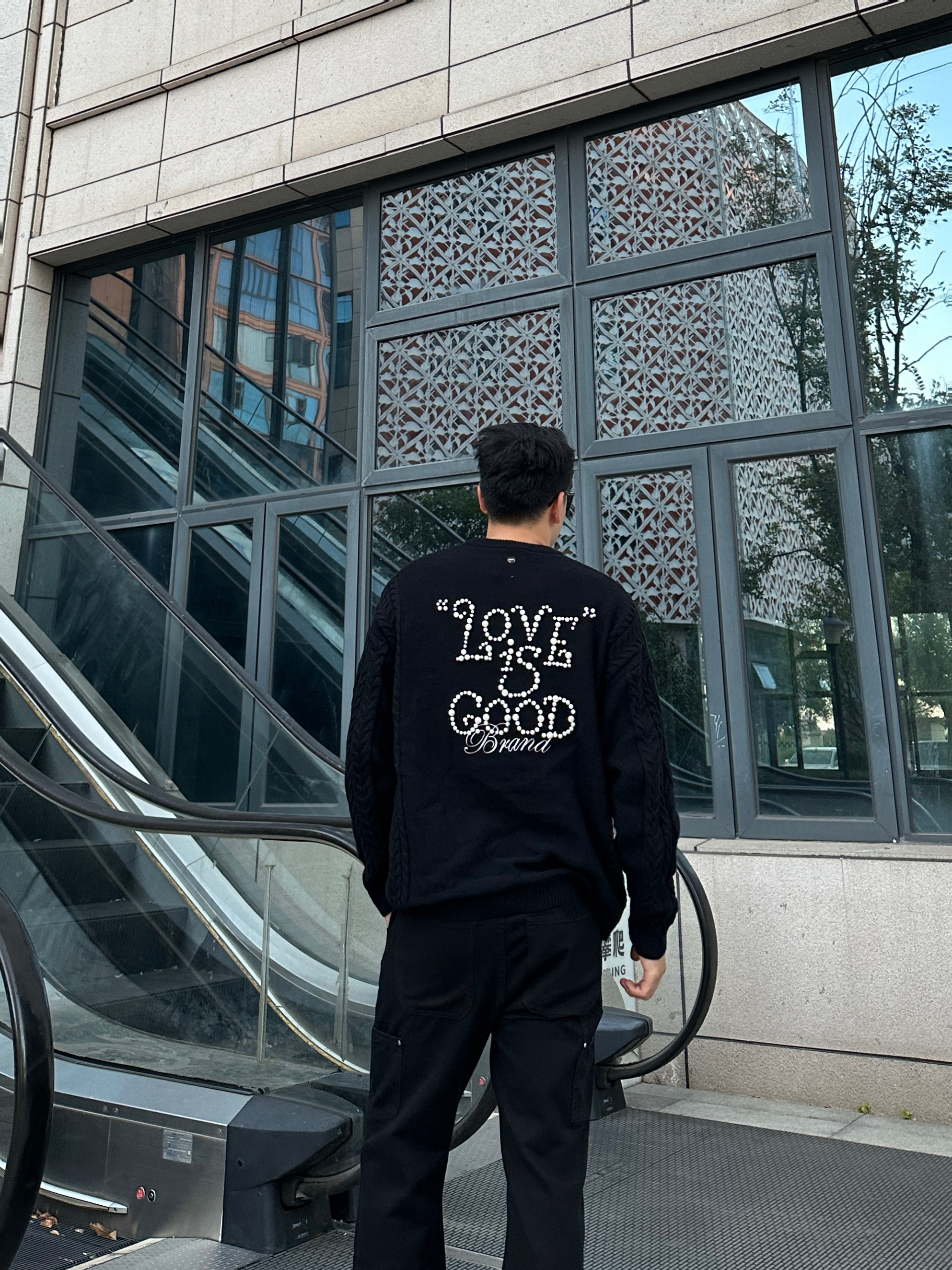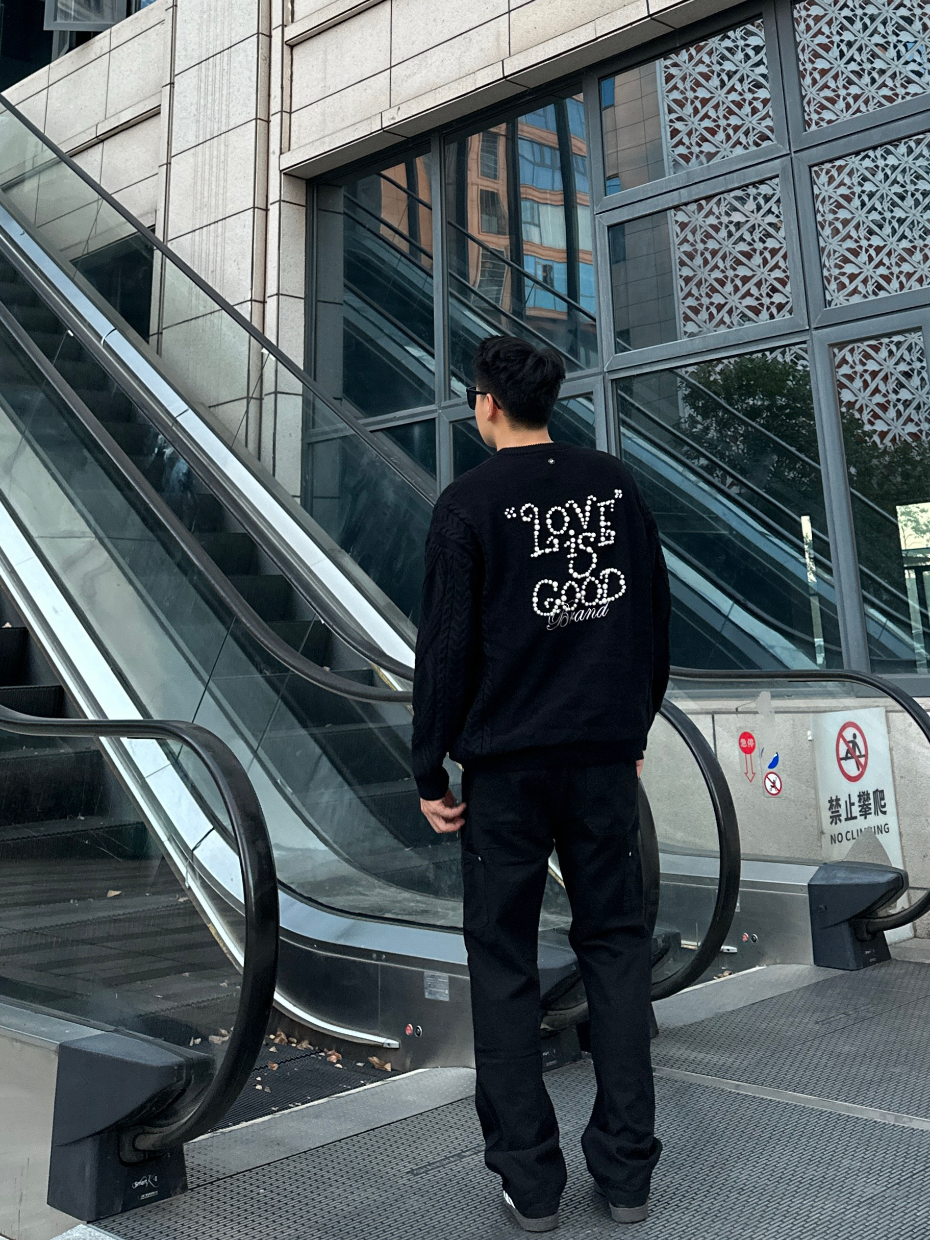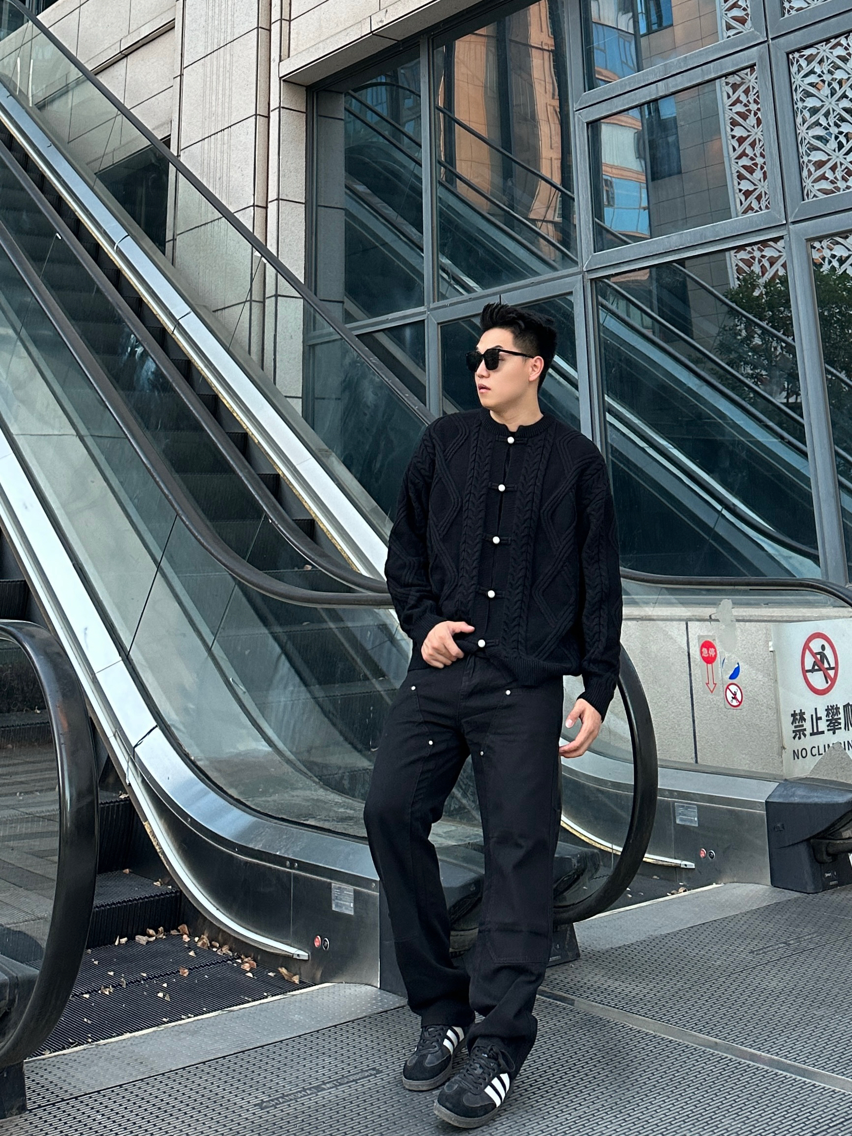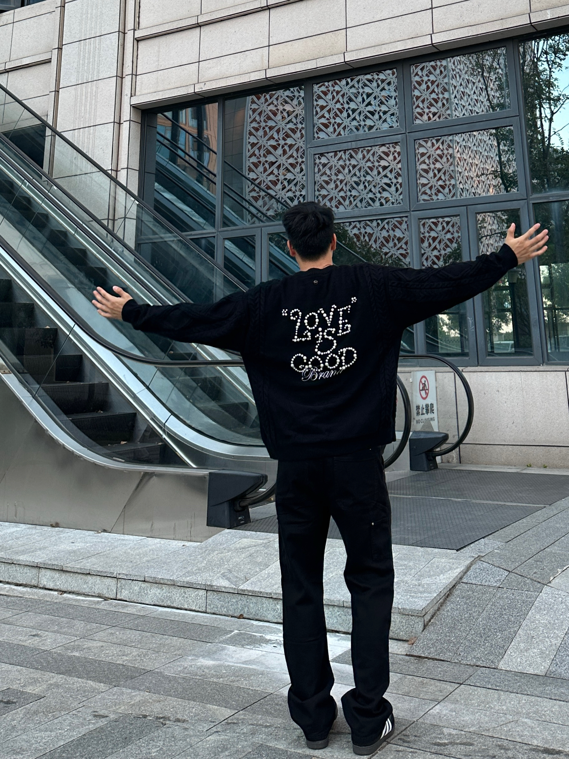 今天上身 GOOD 开衫毛衣 整体的设计简约大气 珍珠串连起来的logo图案质感层次感十足 穿起来气质这块拿捏住 轻奢感不少 用料很扎实 摸起来软糯糯的很舒服 秋冬穿再适合不过 搭配同色系的直筒休闲裤 一身黑太拿我了!