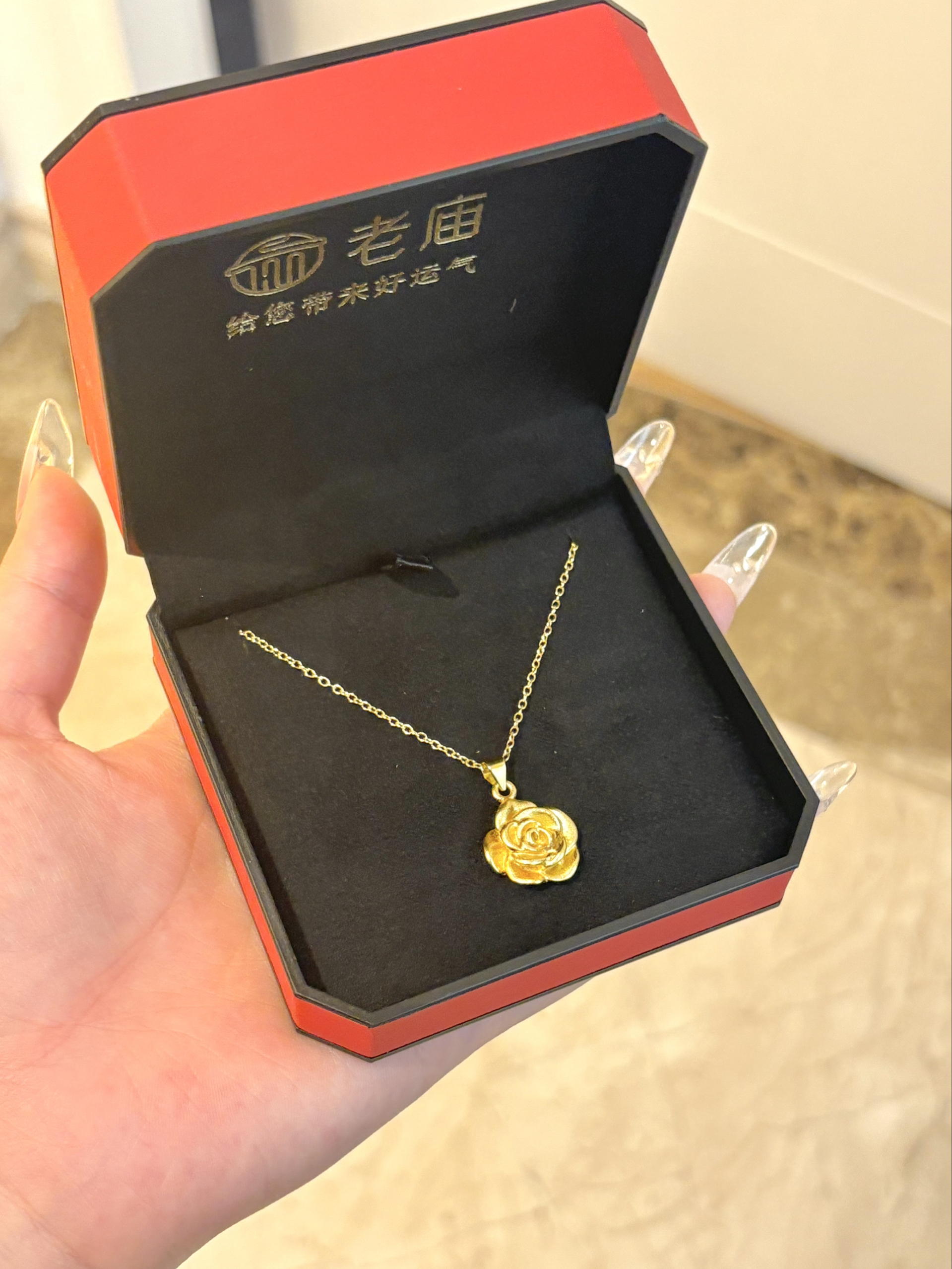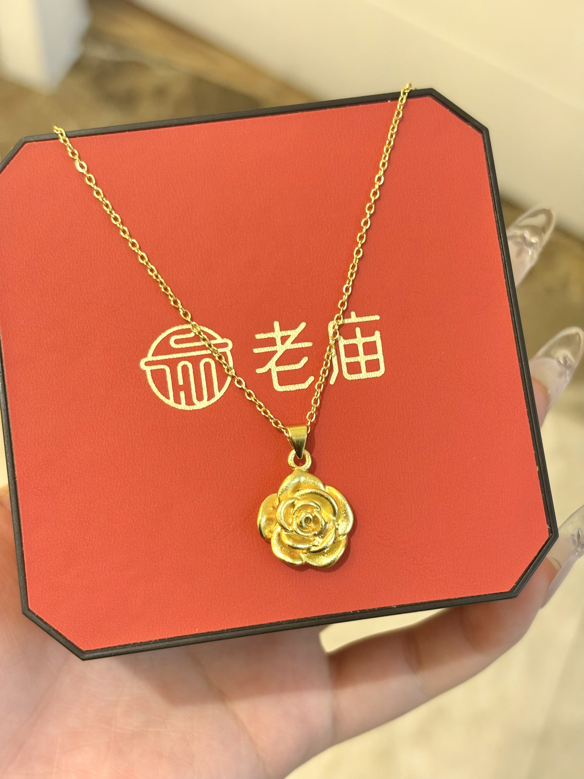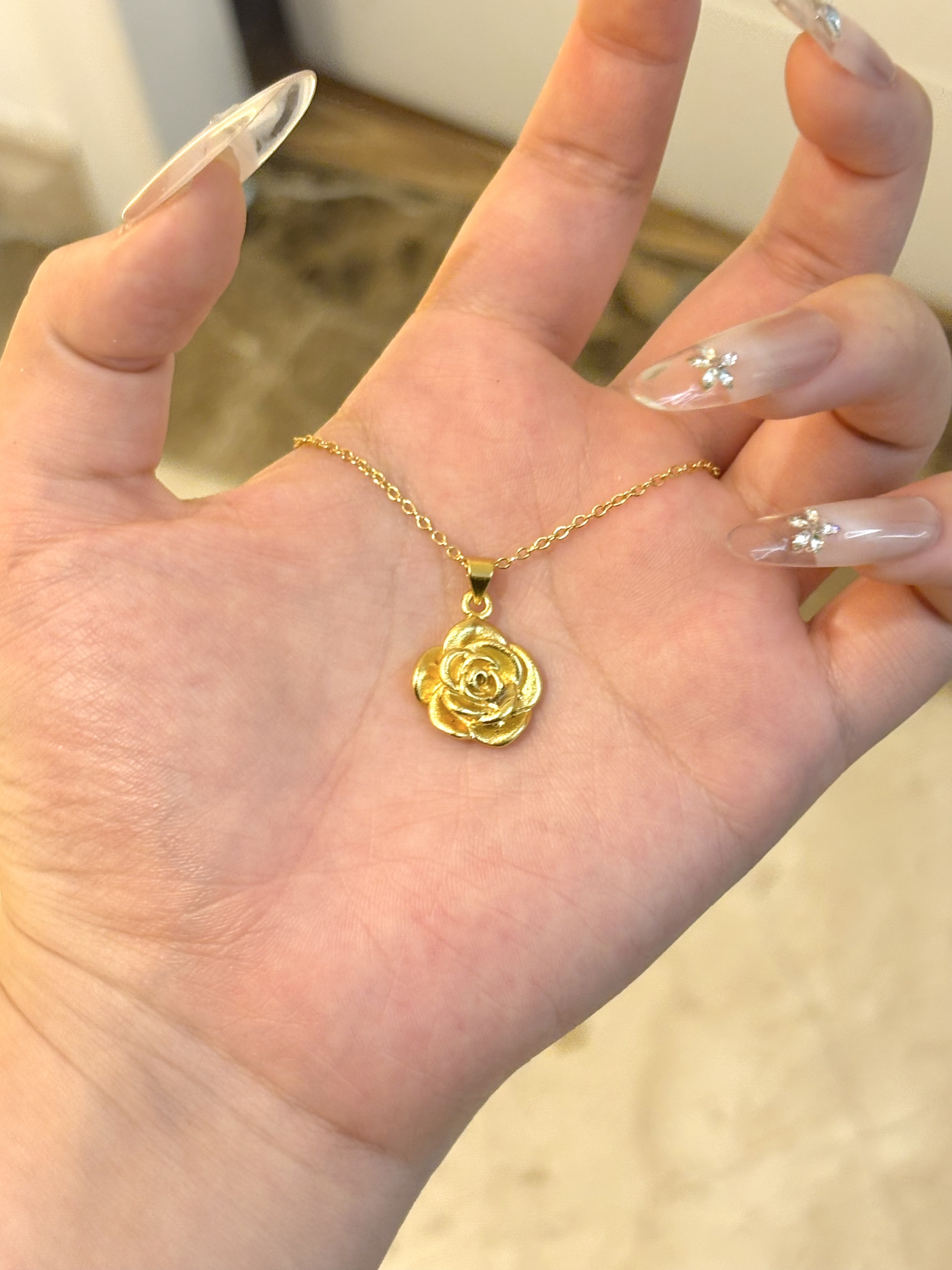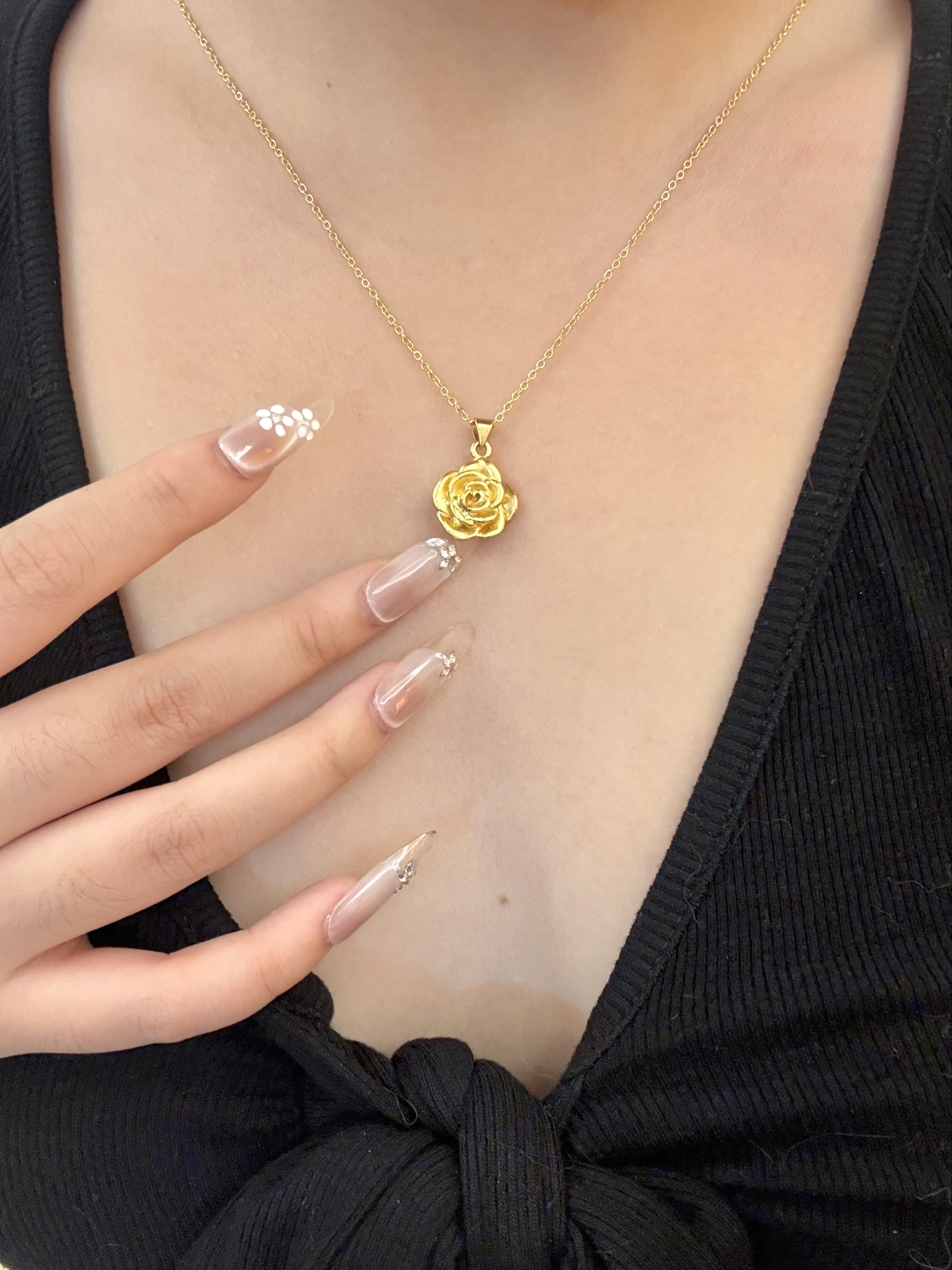 是足金的!谁懂这个大玫瑰戴在脖子上的感觉 一整个温柔住了!而且特别显气质~ 一点也不夸张 如此通勤都很合适