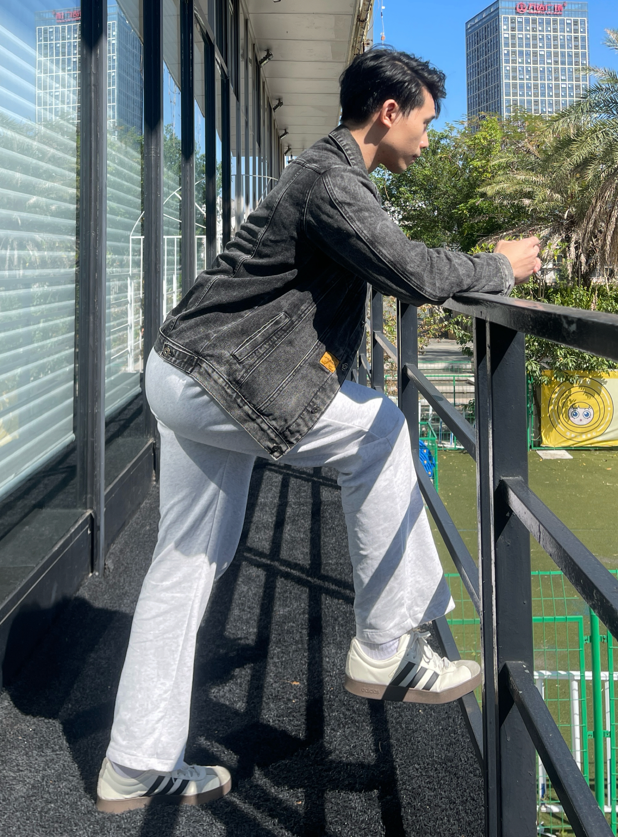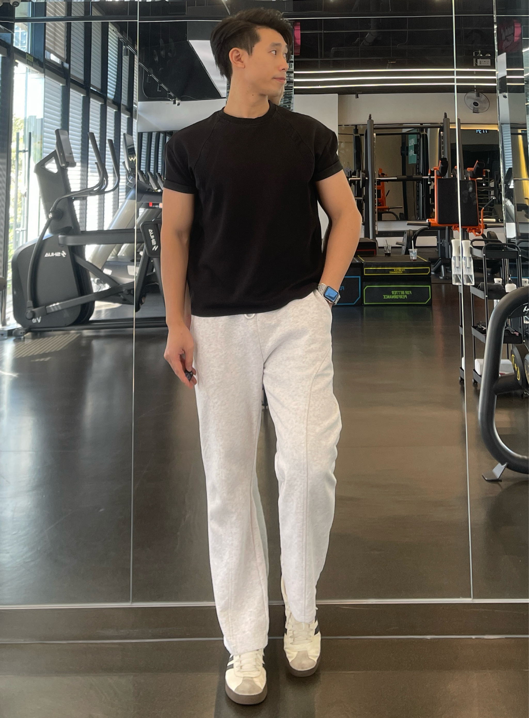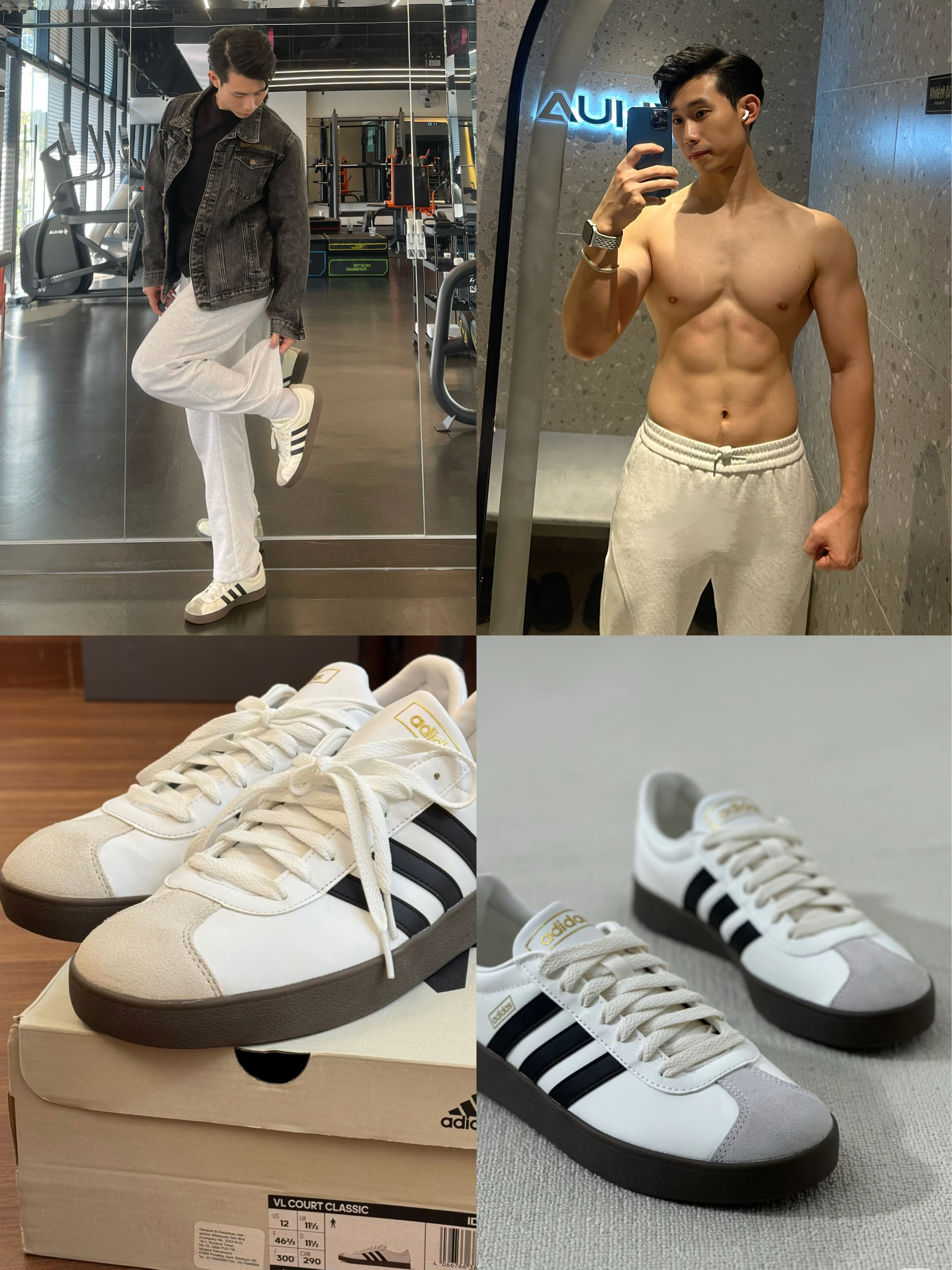 健身男不能穿得太邋遢 今天的穿搭就很舒服 上身一件修身短袖 纯棉长裤 鞋子上脚的是ADIDAS COURT 鞋子第一感觉就是柔软舒适,鞋底也是橡胶底,用来做力量训练很合适,怎么弯折都不会变形,性价比很高 身高180|体重76|鞋码43 👕:牛仔外套 👖:纯棉长裤 👟:ADIDAS COURT 2.0