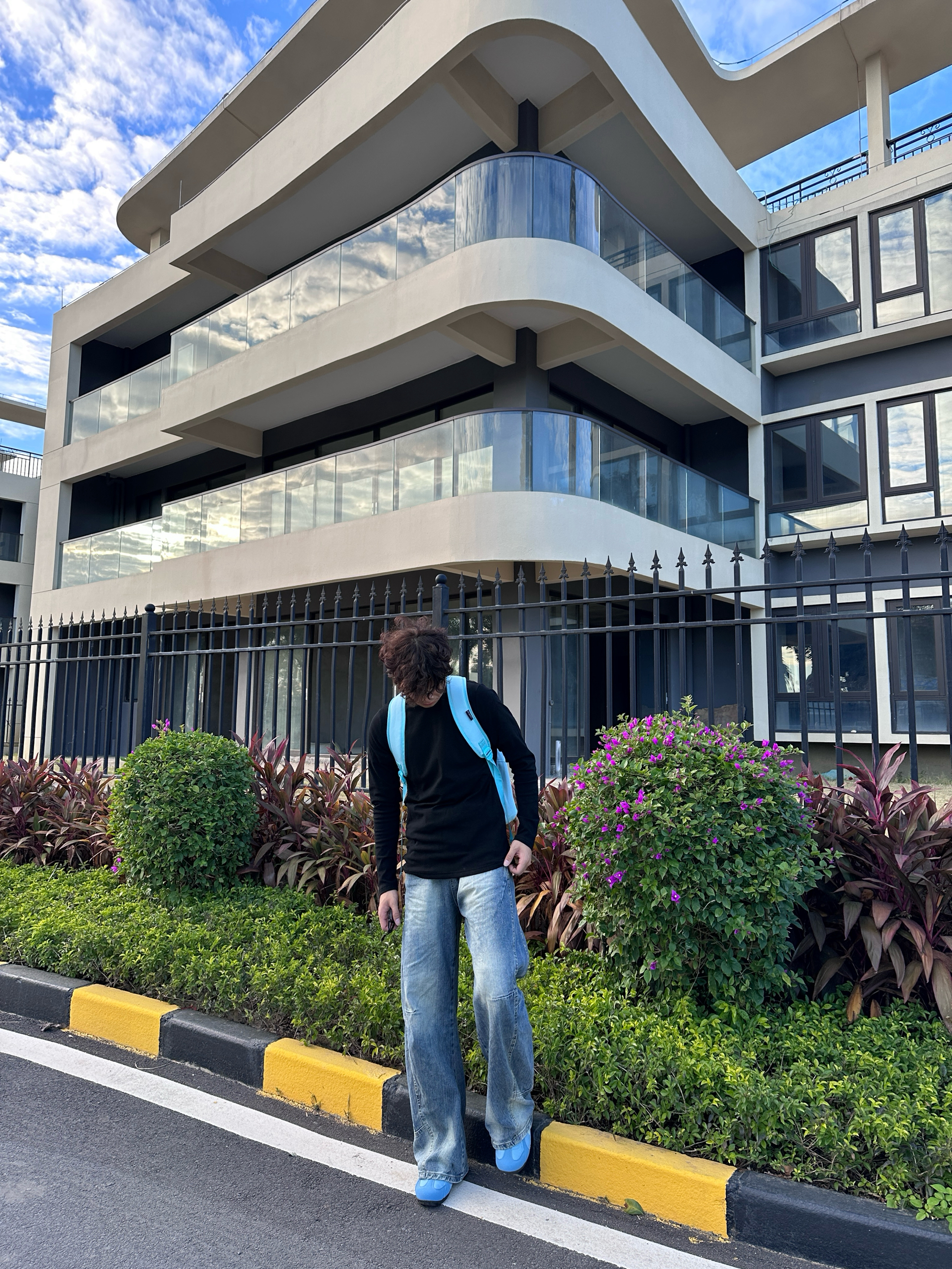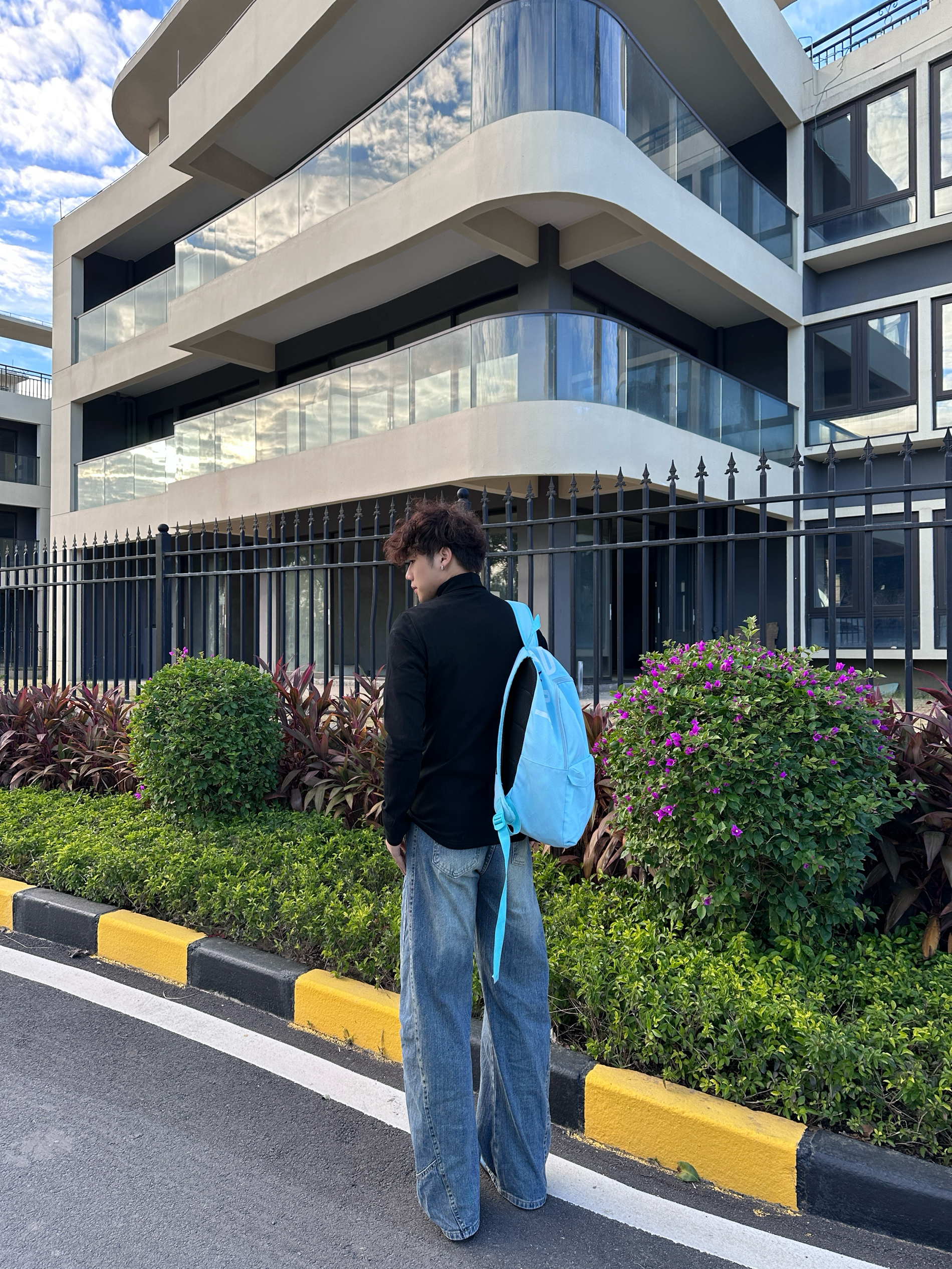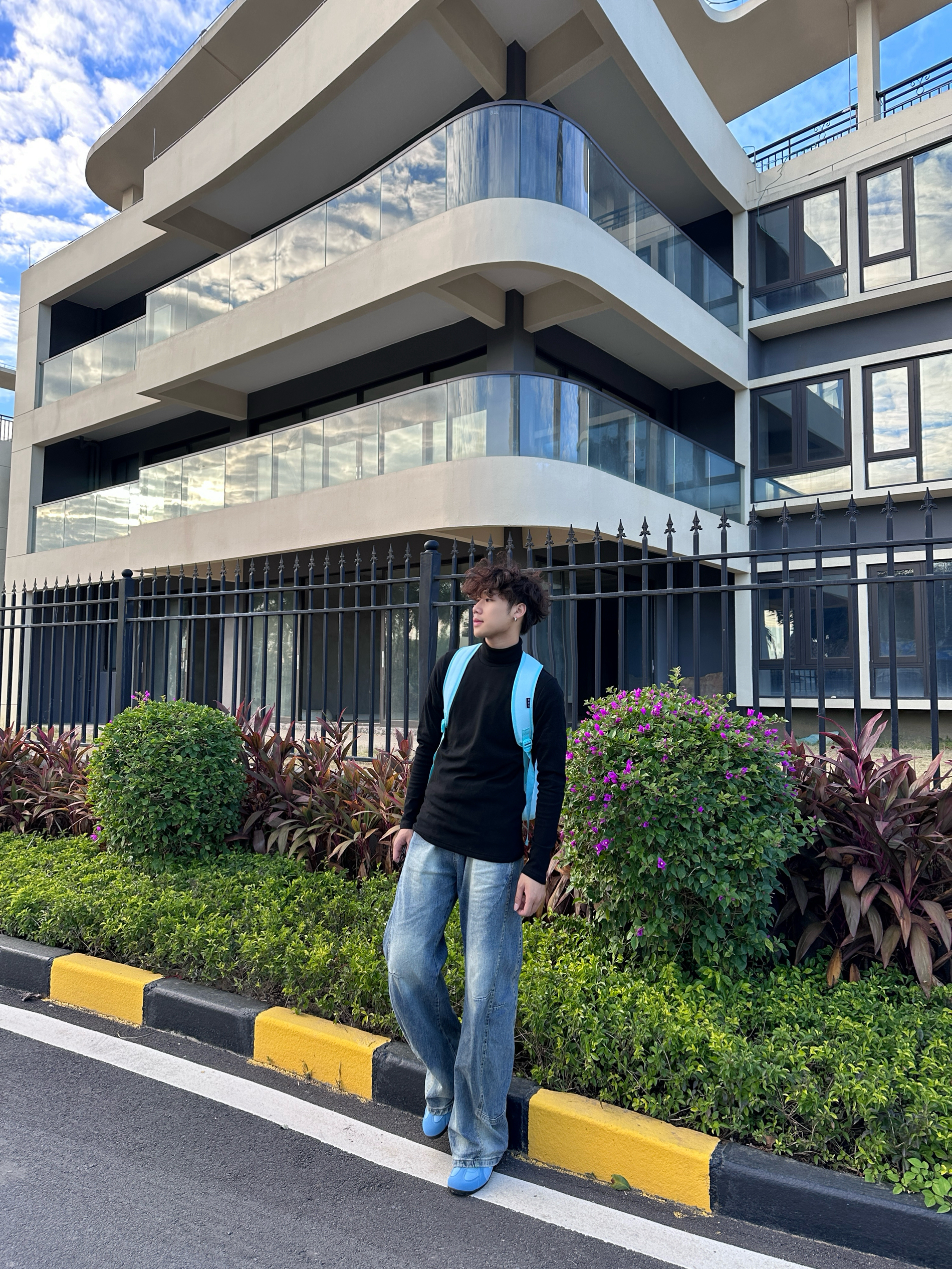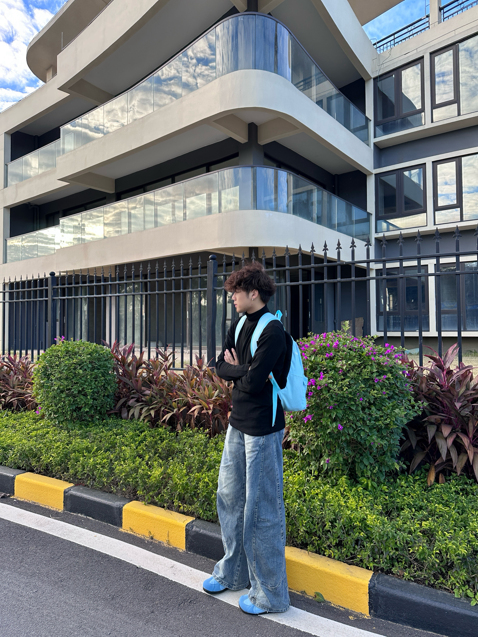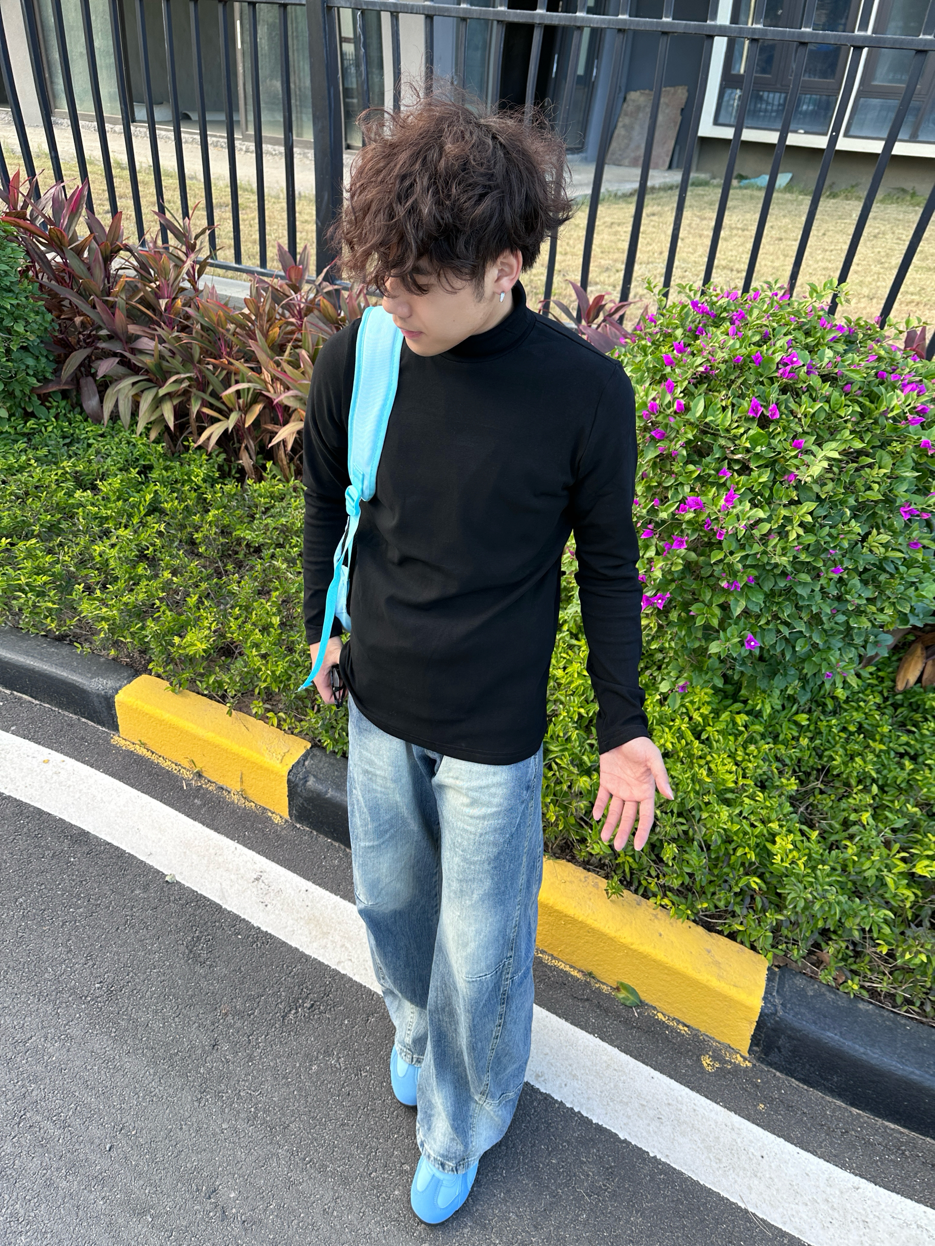这件黑高领软乎乎像裹了层云朵☁️,贴肤不闷还抗皱,抬手弯腰都没束缚感~浅蓝牛子裤是那种洗得刚刚好的松弛感,垂感直接把腿型衬得巨顺溜!配个同色系蓝鞋+包,小细节直接戳中审美💘~面料是洗多少次都不容易变形的那种,舒服又耐造,日常穿随便搭都出片!