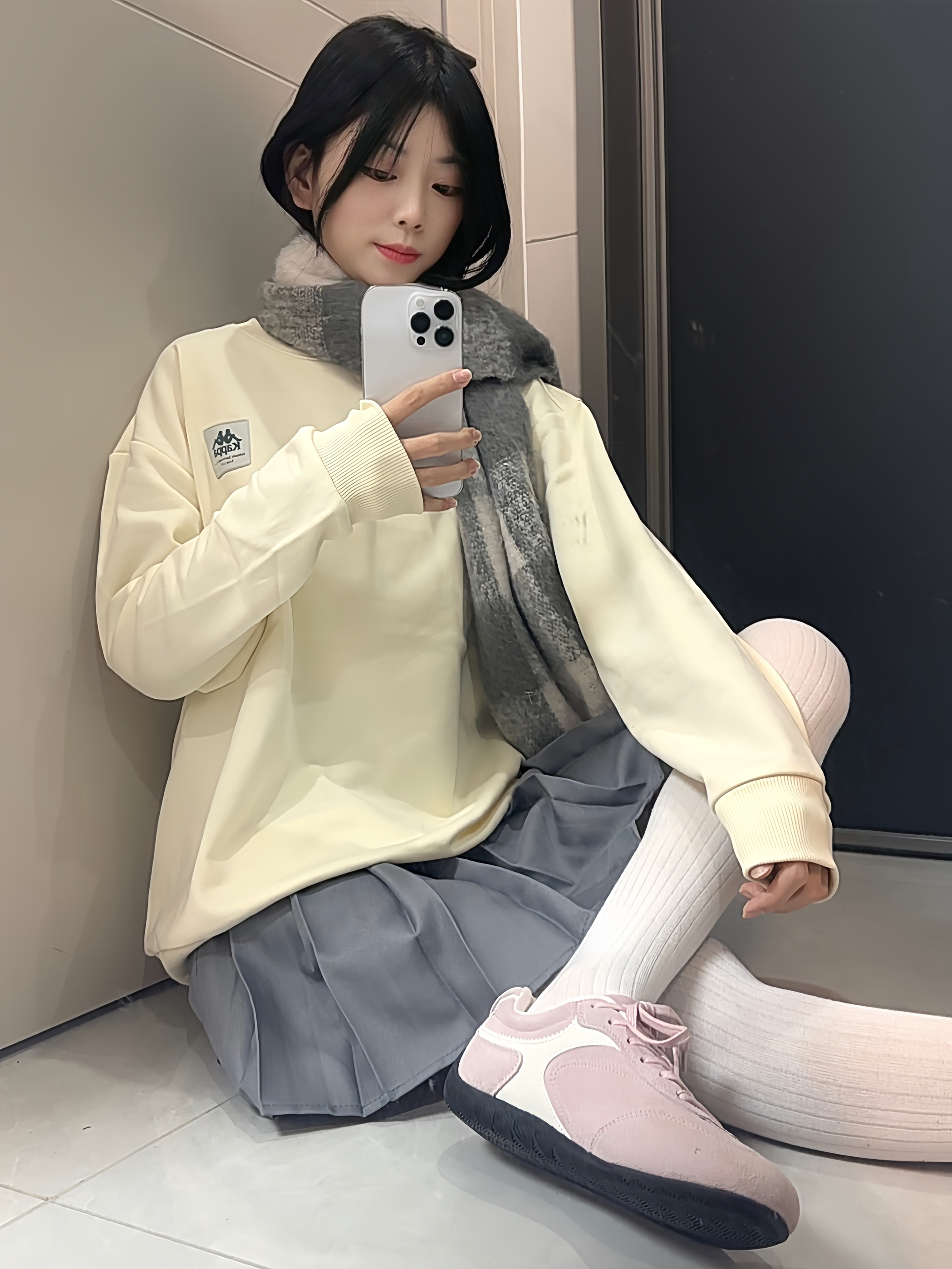 秋天就想穿得温柔又不撞款❗️ 选了件奶呼呼的卫衣 宽松版型藏肉不压个子 我身高166cm 体重55kg 穿M码 搭配灰色百褶裙 自带灵动减龄buff 温柔到骨子里啦✨ 再踩一双粉色赛车鞋 低帮设计显腿直 薄底轻便不笨重 配白袜氛围感拉满 通勤逛gai都合适~