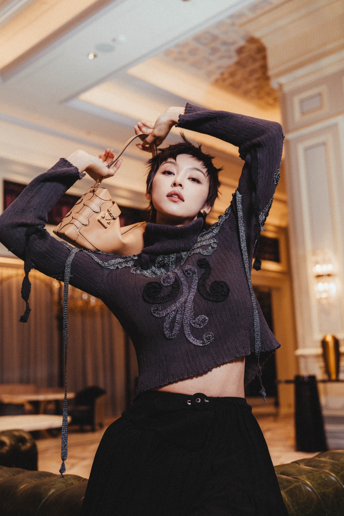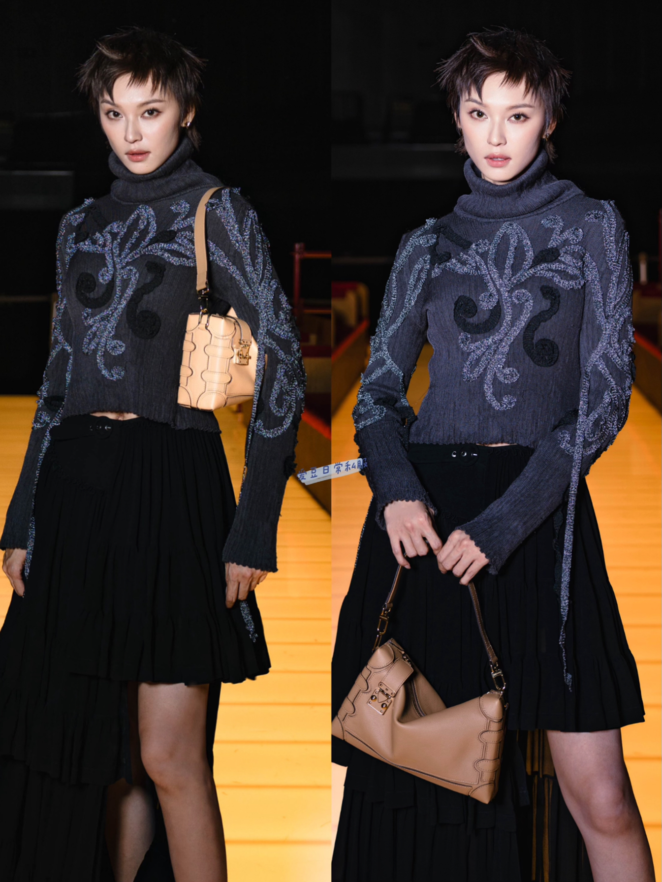 在刚刚落幕的LV澳门2026早春系列时装秀上,王丹妮再次以一套无可挑剔的造型,展现了为何她被视为品牌在香港地区一张亮眼的时尚名片。 她此次选择的是一袭深紫色针织上衣,搭配黑色不规则剪裁半身裙。修身的针织上衣勾勒出优雅的线条,而不规则裙装则通过飘逸的层次感带来了动态的美感。 利落短发与裙装的柔美形成了鲜明反差,这种强烈的对比完美地诠释了“时髦、干练、高级”的多重气质。 王丹妮能持续获得LV的青睐...
