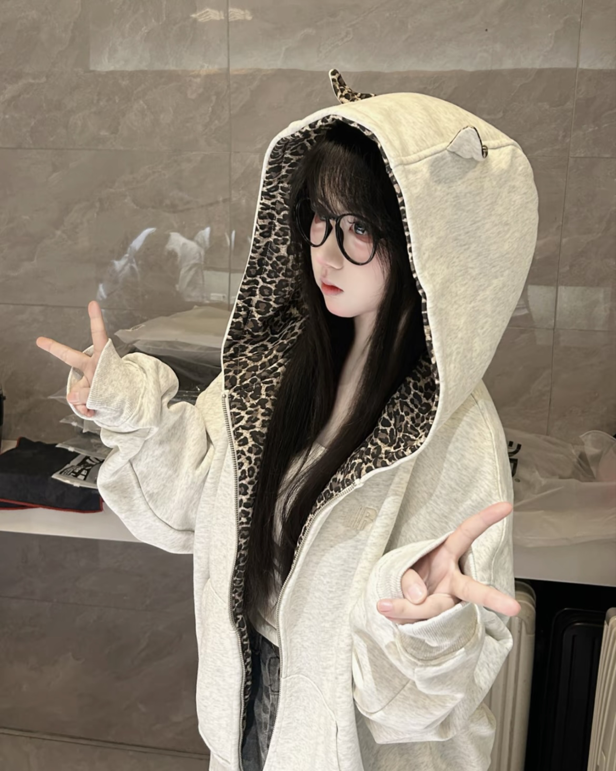 今天穿的是 FDR 家的卫衣外套~ 豹纹元素ootd太爱啦🥰 帽里和内里侧边都是豹纹元素 帽上可爱的耳朵设计hin俏皮呀~ 版型宽松舒适 上身也不显臃肿呀 #豹纹卫衣穿搭分享 #日常穿搭o o t d #今日份穿搭 #宝藏开衫卫衣推荐 #今日份穿搭
