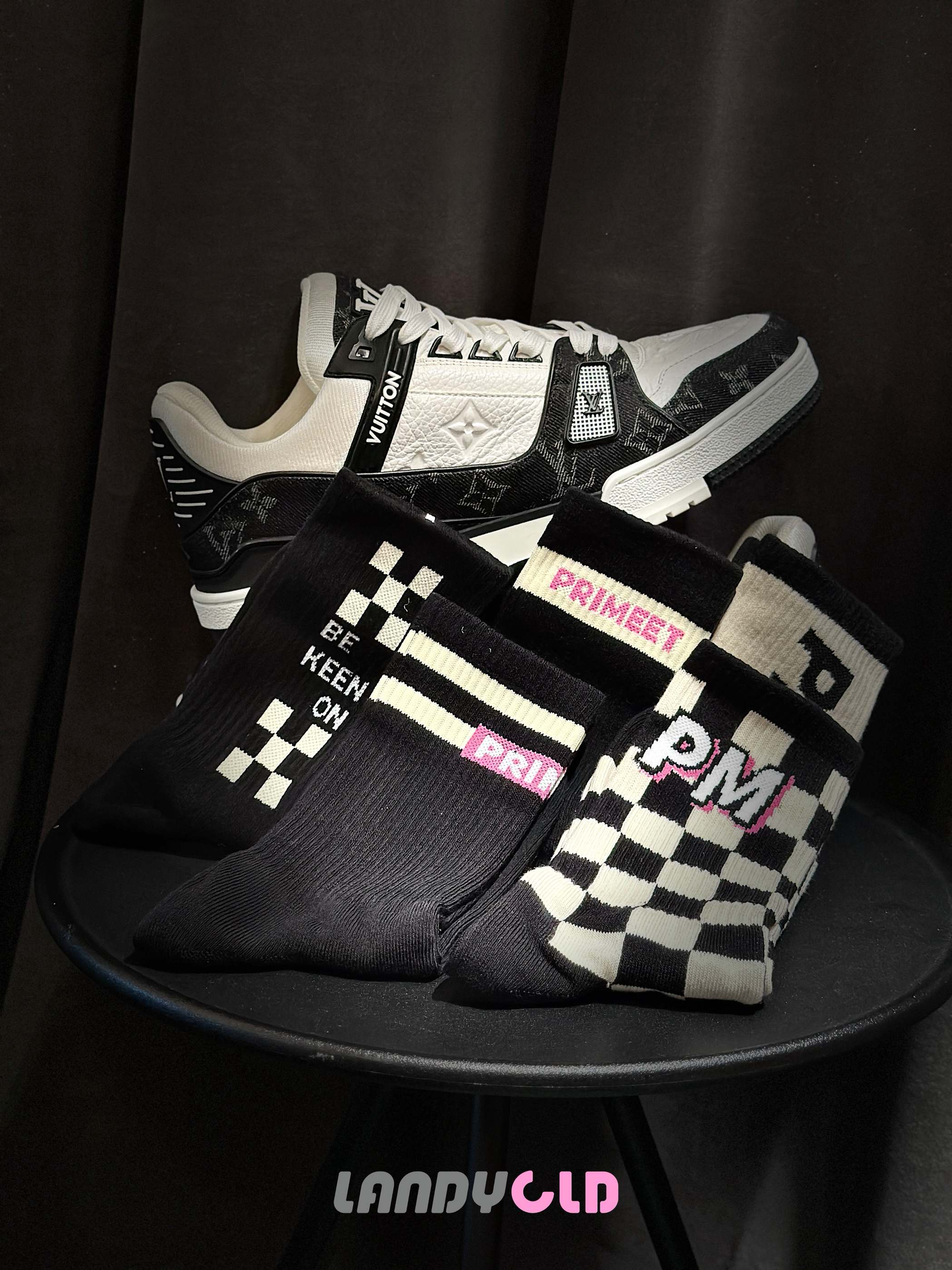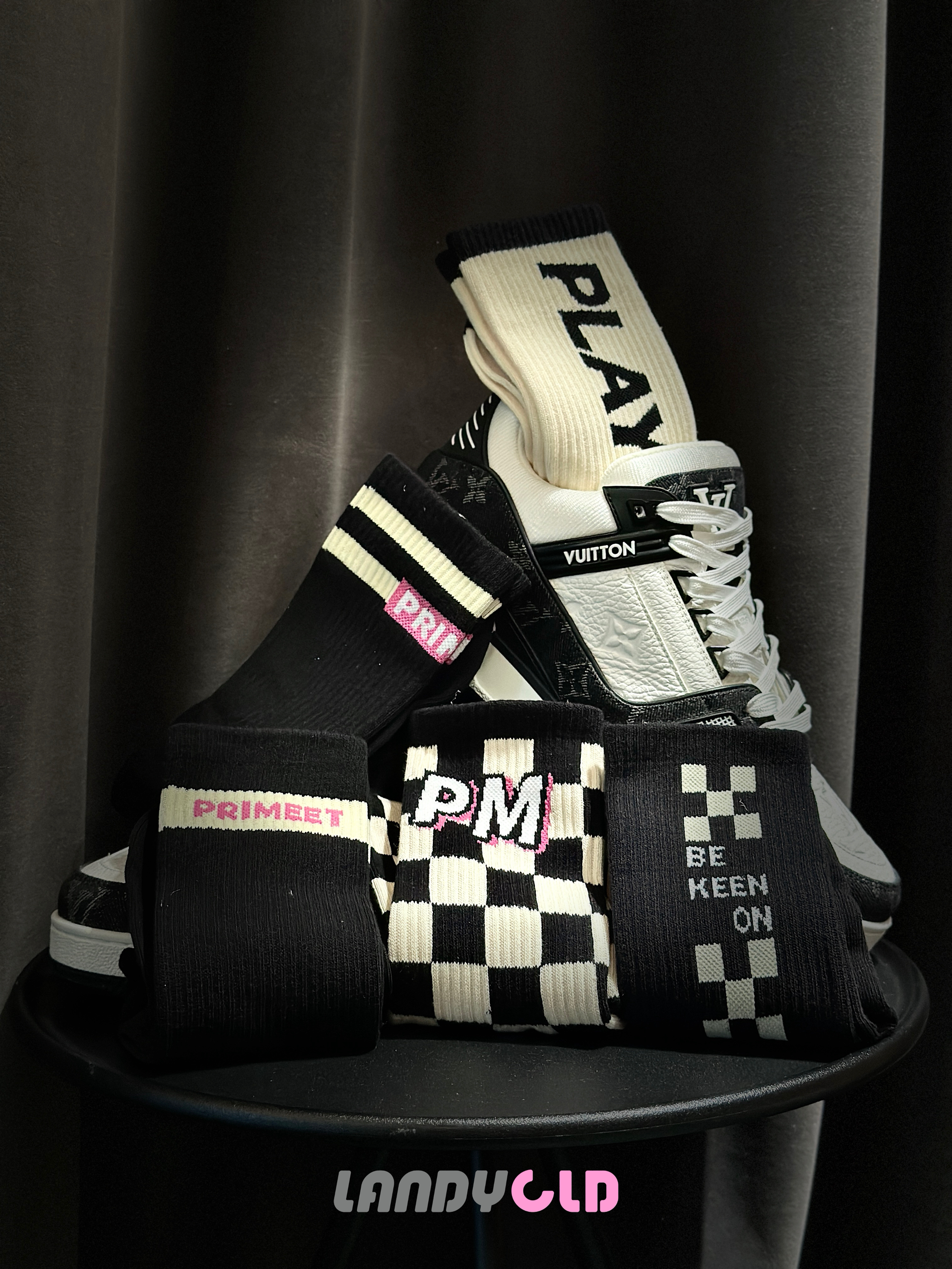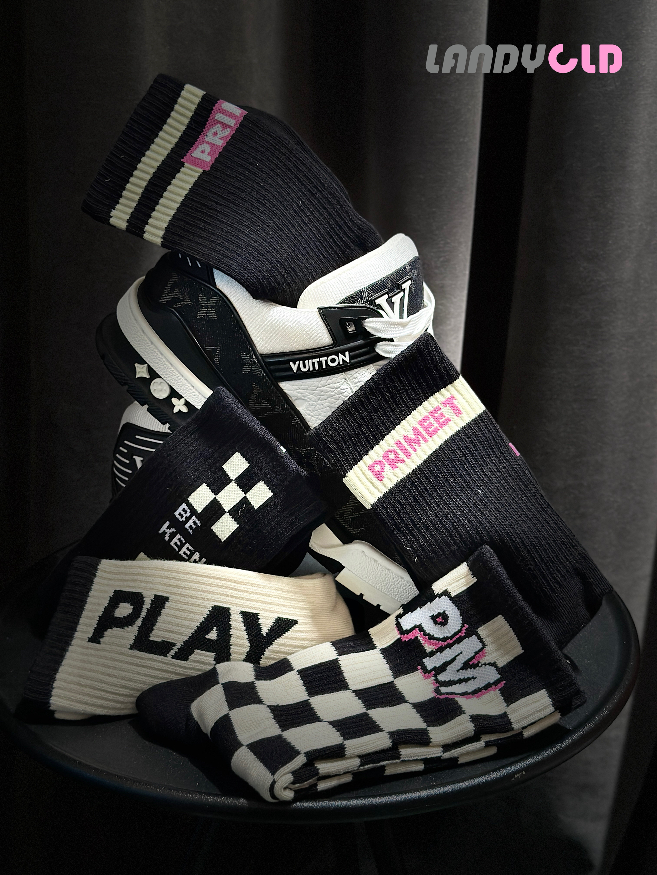 我对袜子和鞋子的搭配需求,还是蛮在意的,什么鞋配什么袜子更合适,都是要先搭配完才出门的,哈哈,到了秋冬,穿搭的风格,已经不再是“花里胡哨”了,那么,秋冬的袜子,我更喜欢搭配黑白系。 这几双袜子,虽然说是黑白系,但都各有层次和设计。 1️⃣简约的大字“PLAY”,白底竖条纹的样式,黑色线条的袜口,简约但有细节。 2️⃣黑底粉字“PRIMEET”字样,有点小俏皮 3️⃣ 黑底白双线条袜口加上粉字...