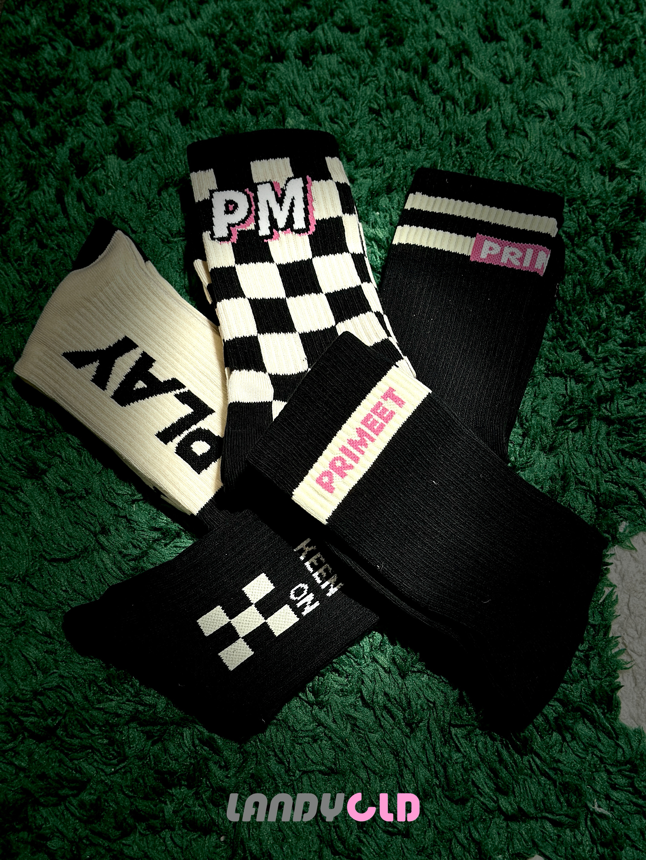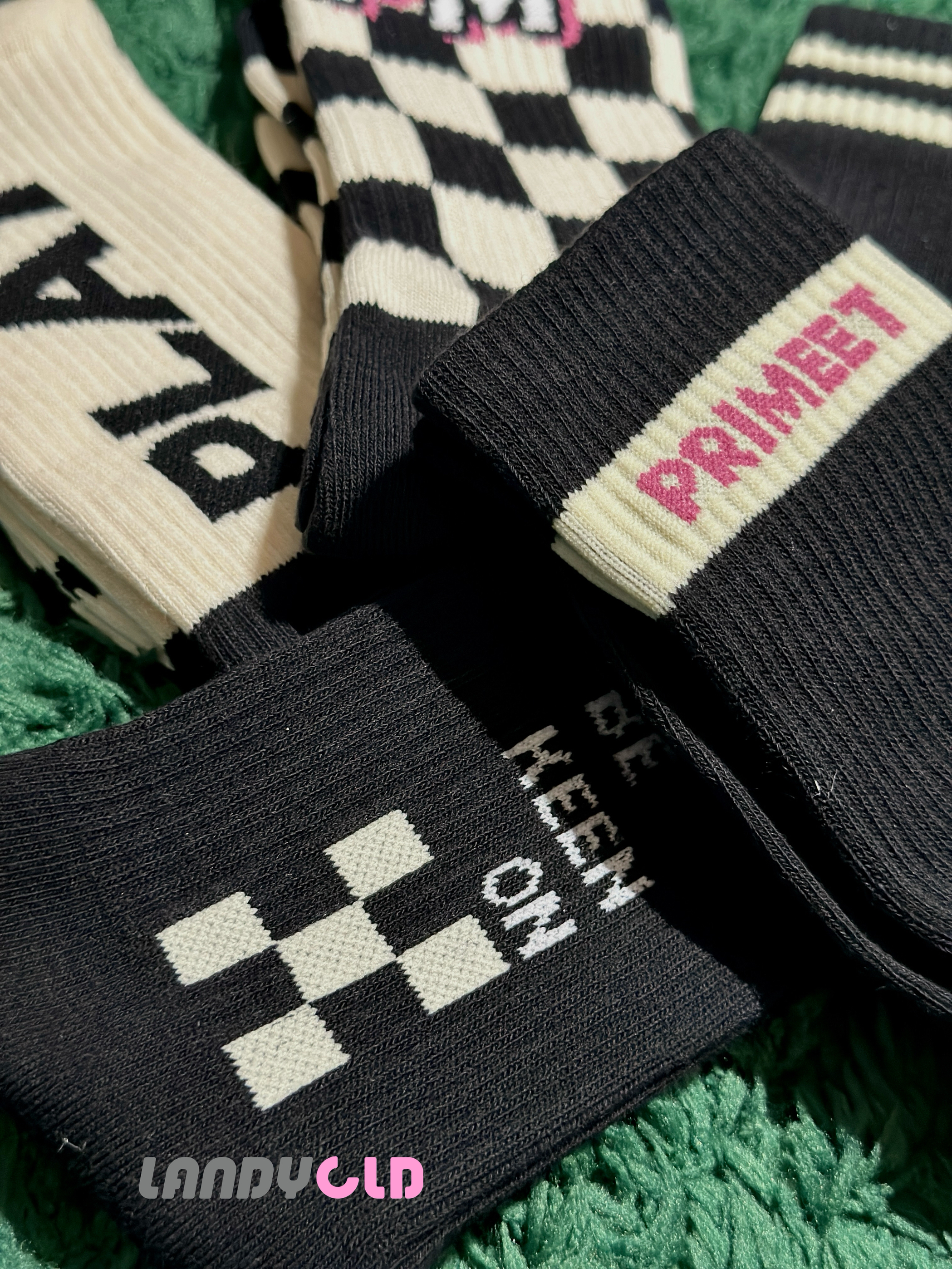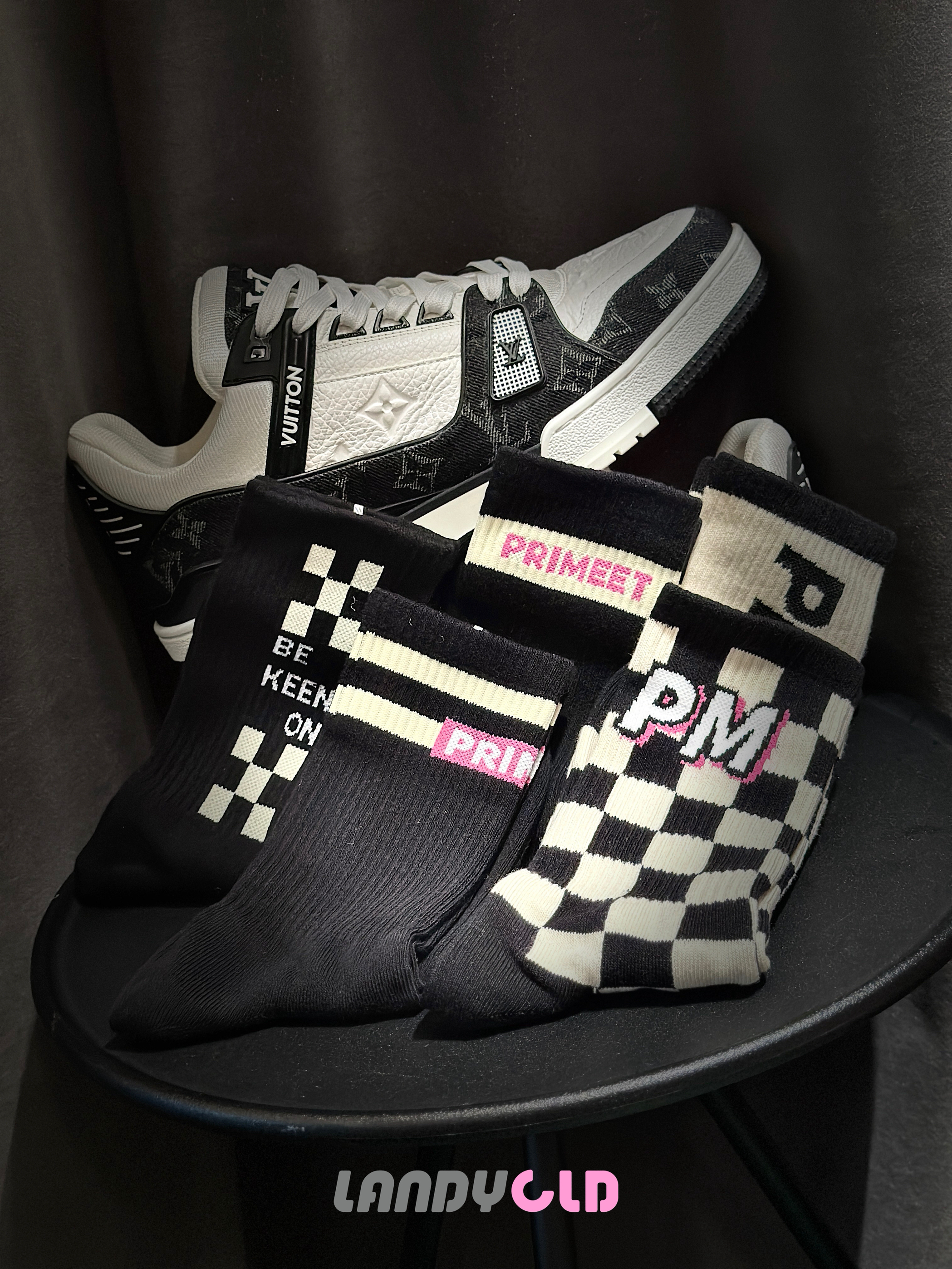我对袜子和鞋子的搭配需求,还是蛮在意的,什么鞋配什么袜子更合适,都是要先搭配完才出门的,哈哈,到了秋冬,穿搭的风格,已经不再是“花里胡哨”了,那么,秋冬的袜子,我更喜欢搭配黑白系。 这几双袜子,虽然说是黑白系,但都各有层次和设计。 1️⃣简约的大字“PLAY”,白底竖条纹的样式,黑色线条的袜口,简约但有细节。 2️⃣黑底粉字“PRIMEET”字样,有点小俏皮 3️⃣ 黑底白双线条袜口加上粉字...