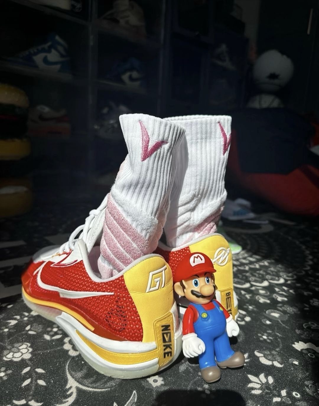 白蓝粉这3个颜色黑搭配在一起就是绝绝子呀! 鞋子很轻,上脚基本没有什么重量感,鞋底也挺软的,脚感不错的哟! 价格也还不错👍
