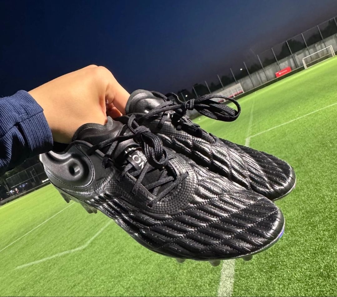 这双全黑足球鞋踢了场夜场球,说真的是有点东西!刚上脚那包裹感就特紧实,鞋面的纹路看着怪但触球的时候贼稳,传接球那一下的摩擦力刚好,不会滑也不会硌脚。 鞋钉在草皮上咬得巨牢,变向和急停的时候一点没晃,后半程跑起来也没觉得沉。不过有一说一,这鞋头稍微有点硬,踢久了大脚趾有点压得慌,宽脚兄弟可能得选大半码。 整场下来没磨脚,透气性居然比看着好,出了汗没闷得难受。讲真,这实战表现是真挺顶的,对得起这...