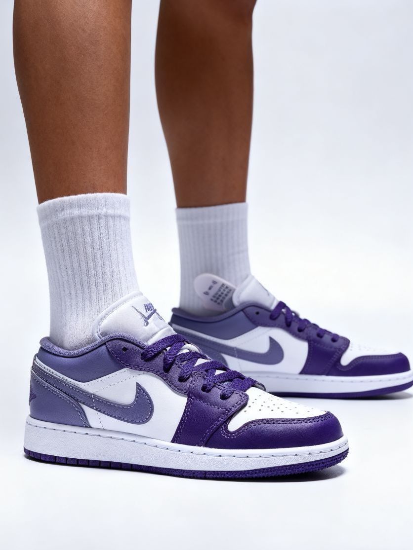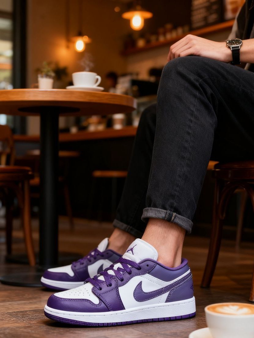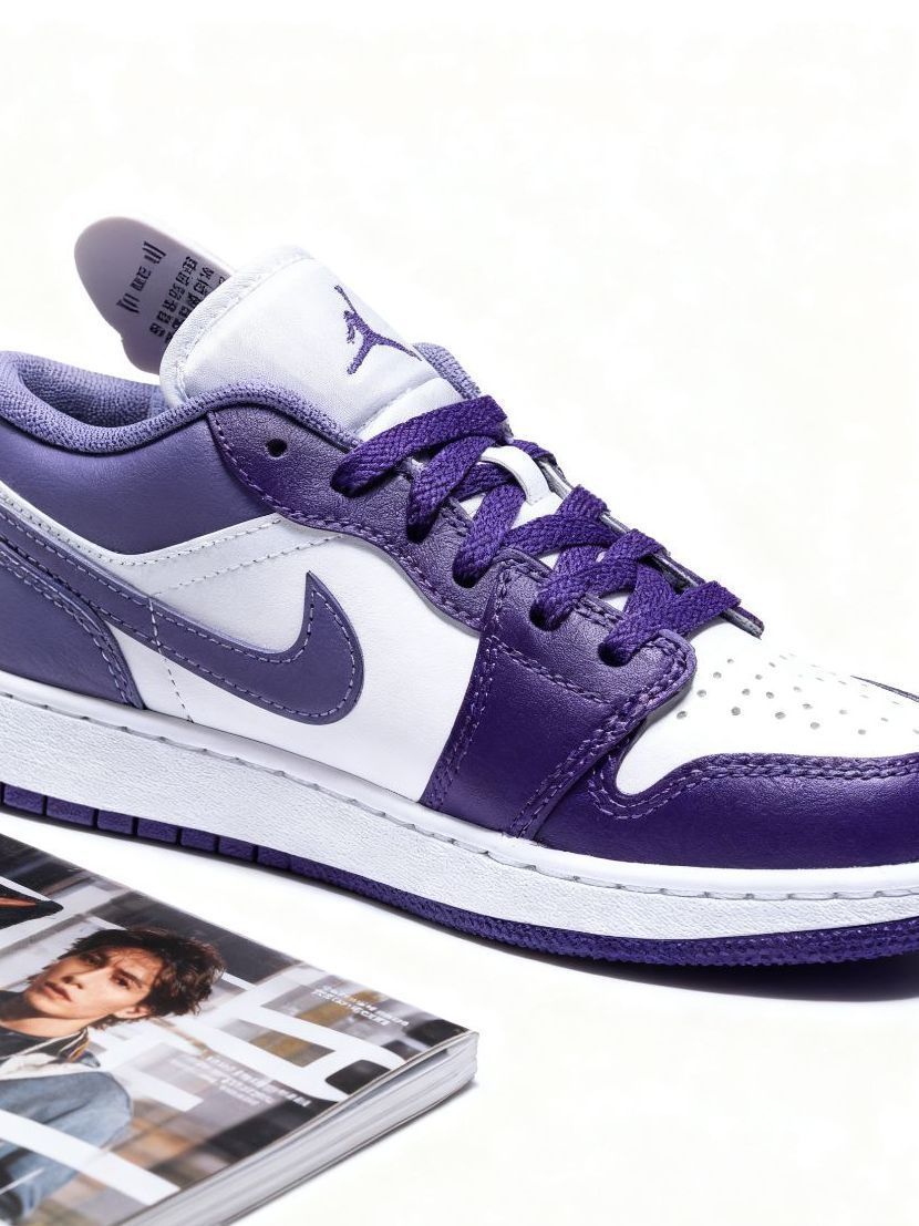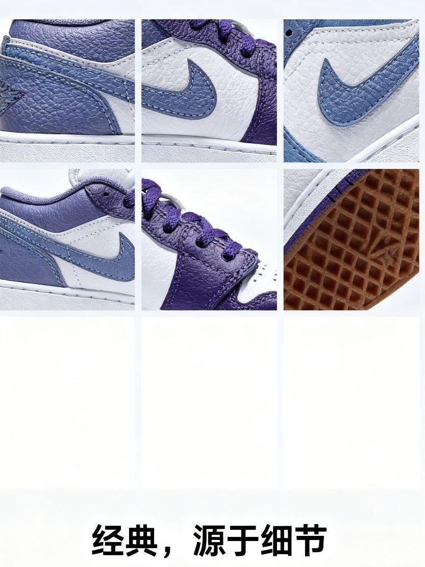 * **【侧面】**:经典的AJ1 Low侧影,流畅的线条与恰到好处的色块分割,是搭配九分裤或裙装的绝佳画布。
