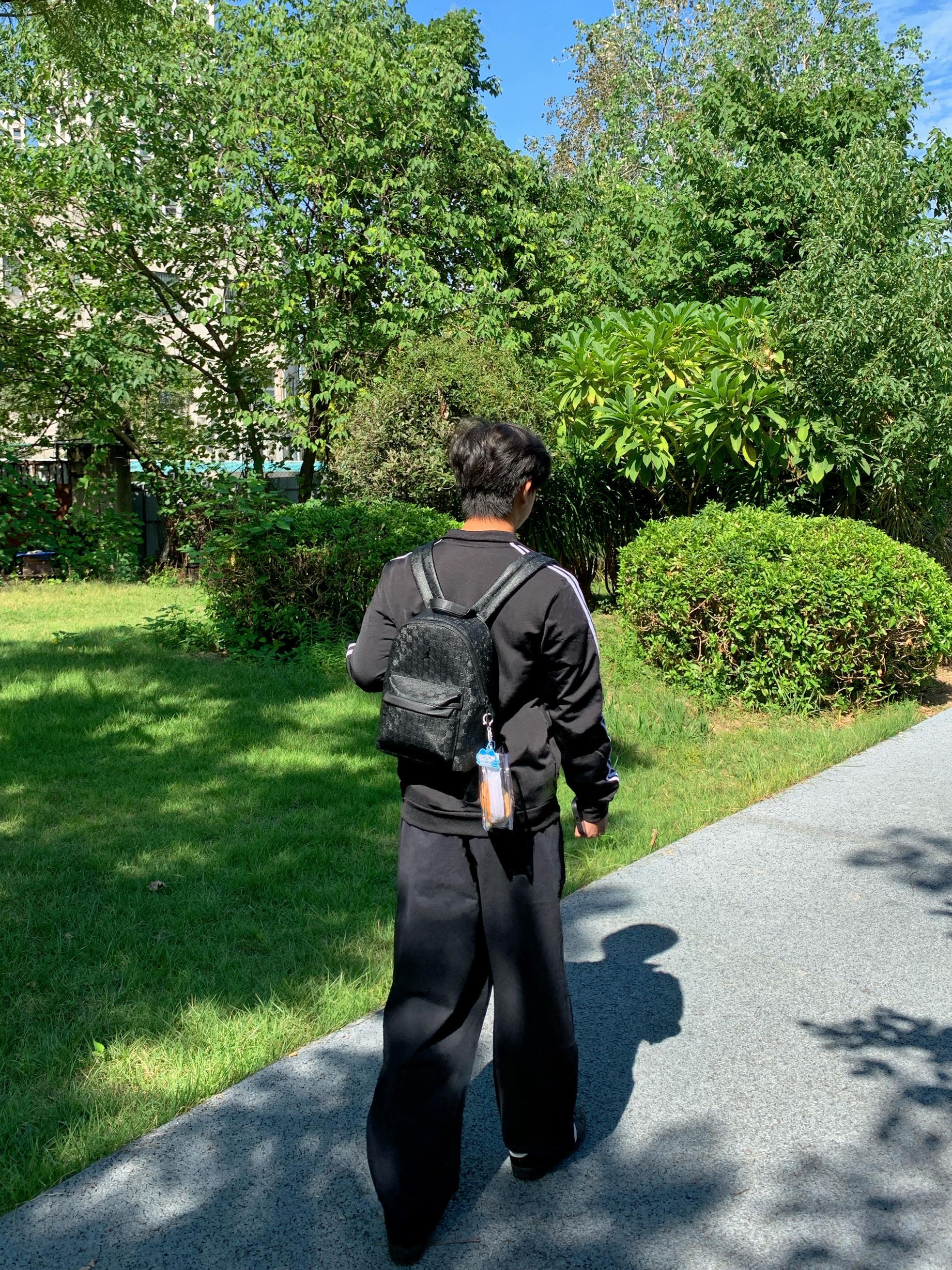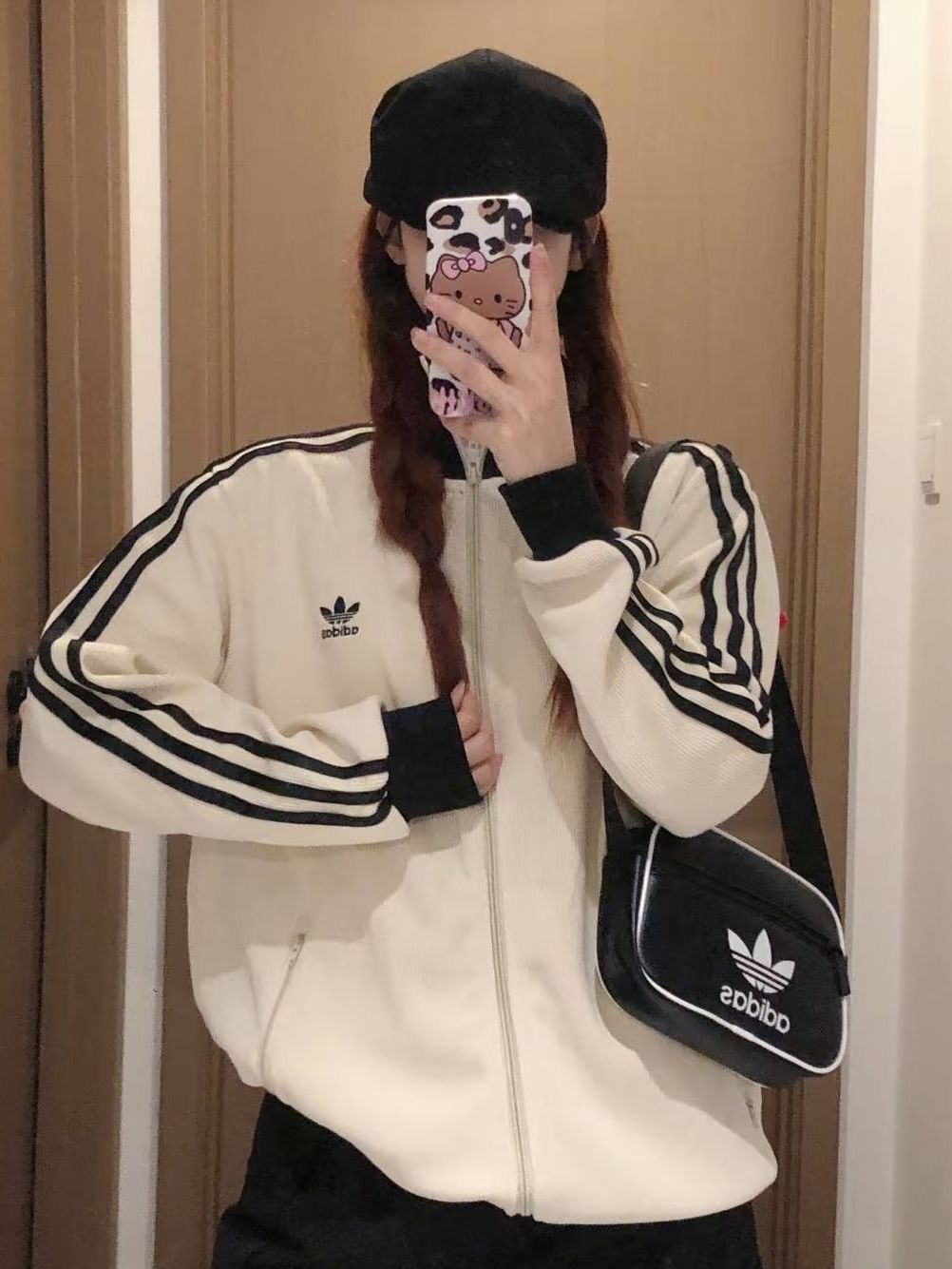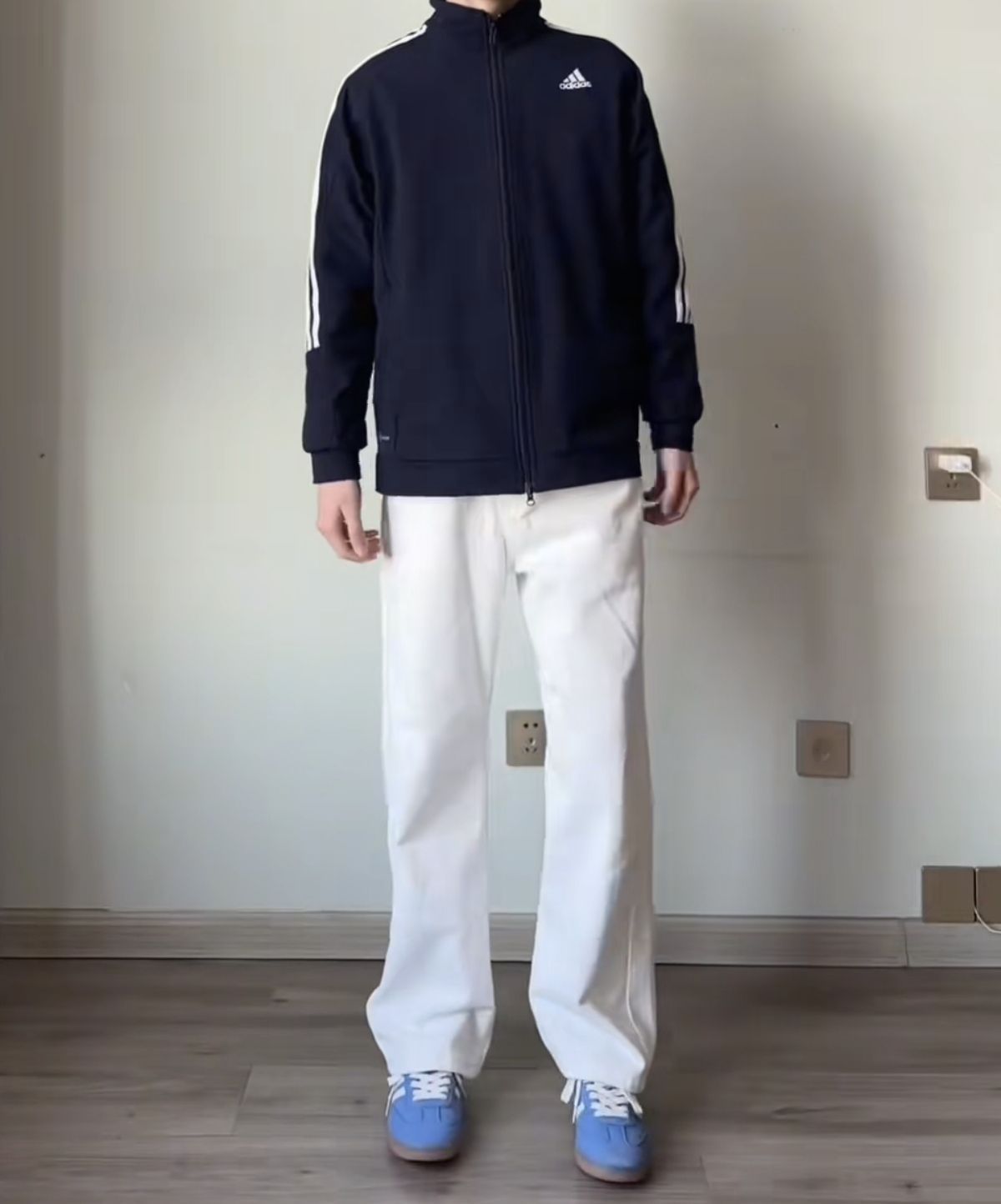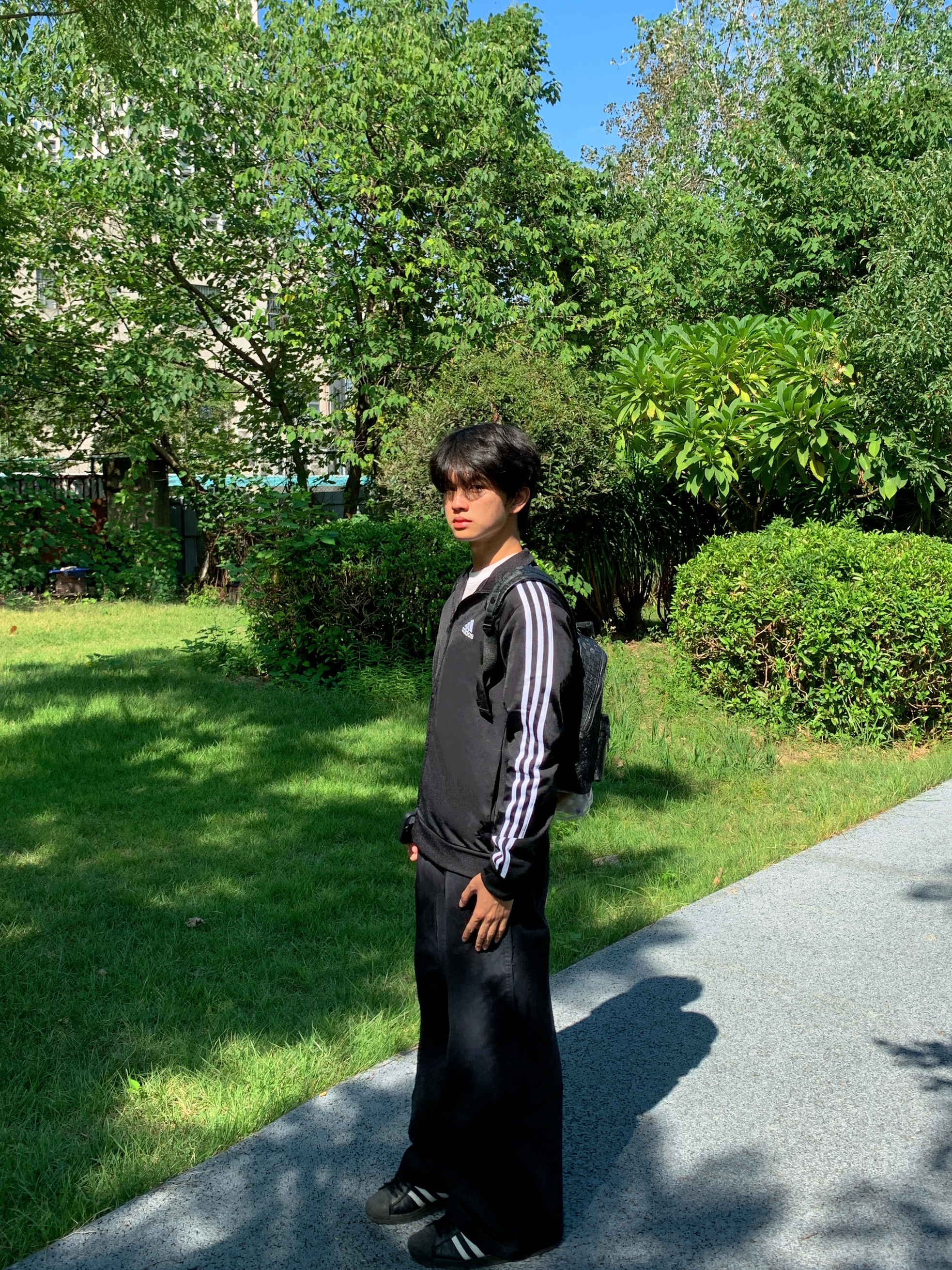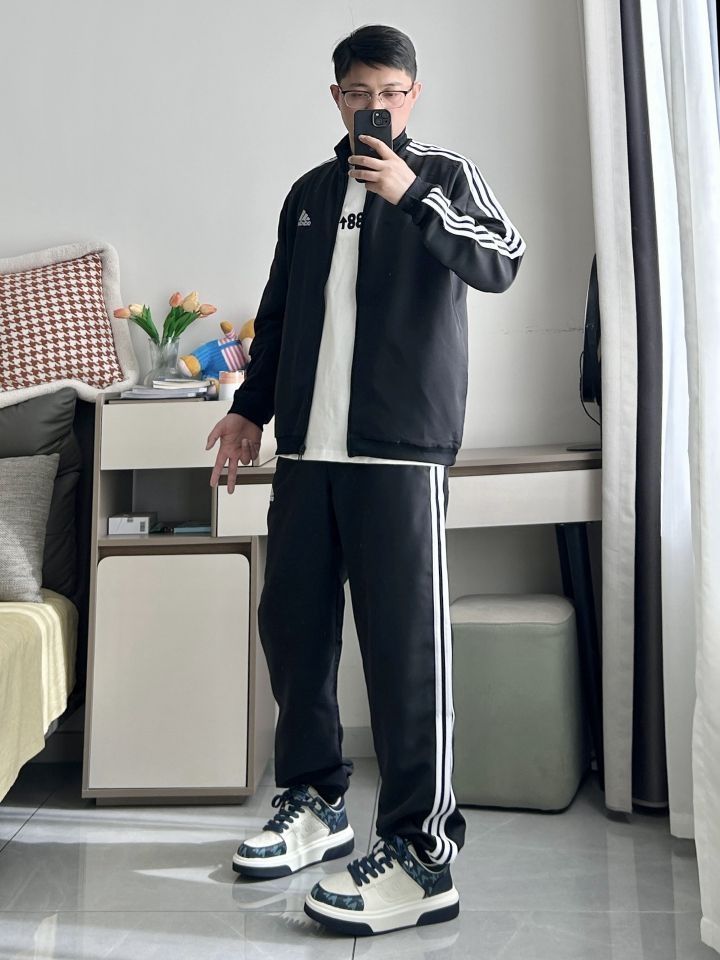 一身黑的adidas套装自带松弛感,经典三条纹元素让基础款不单调,宽宽松松的版型舒服又藏肉,配上同色系运动鞋,整体干净利落还很有少年感🌿 随便往小区绿化带一站,阳光一衬就很出片,日常上学通勤这么穿,舒服又不费力~