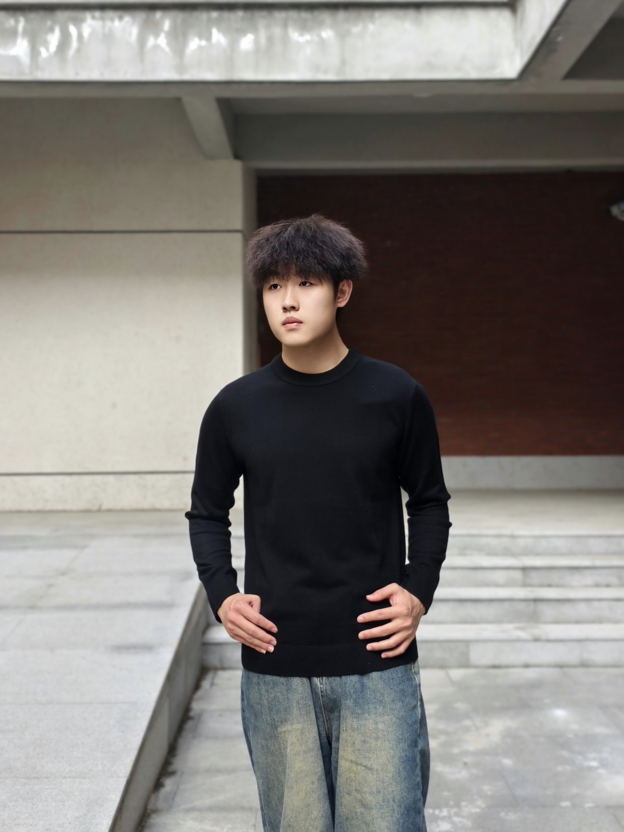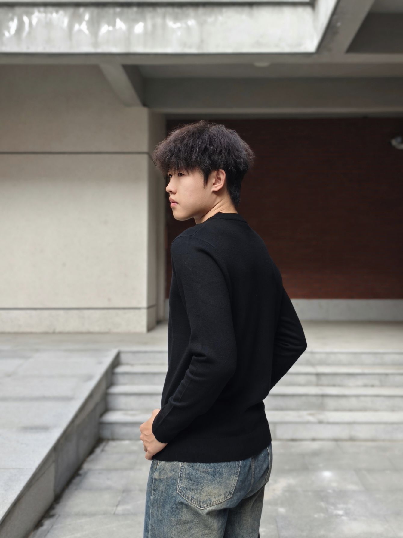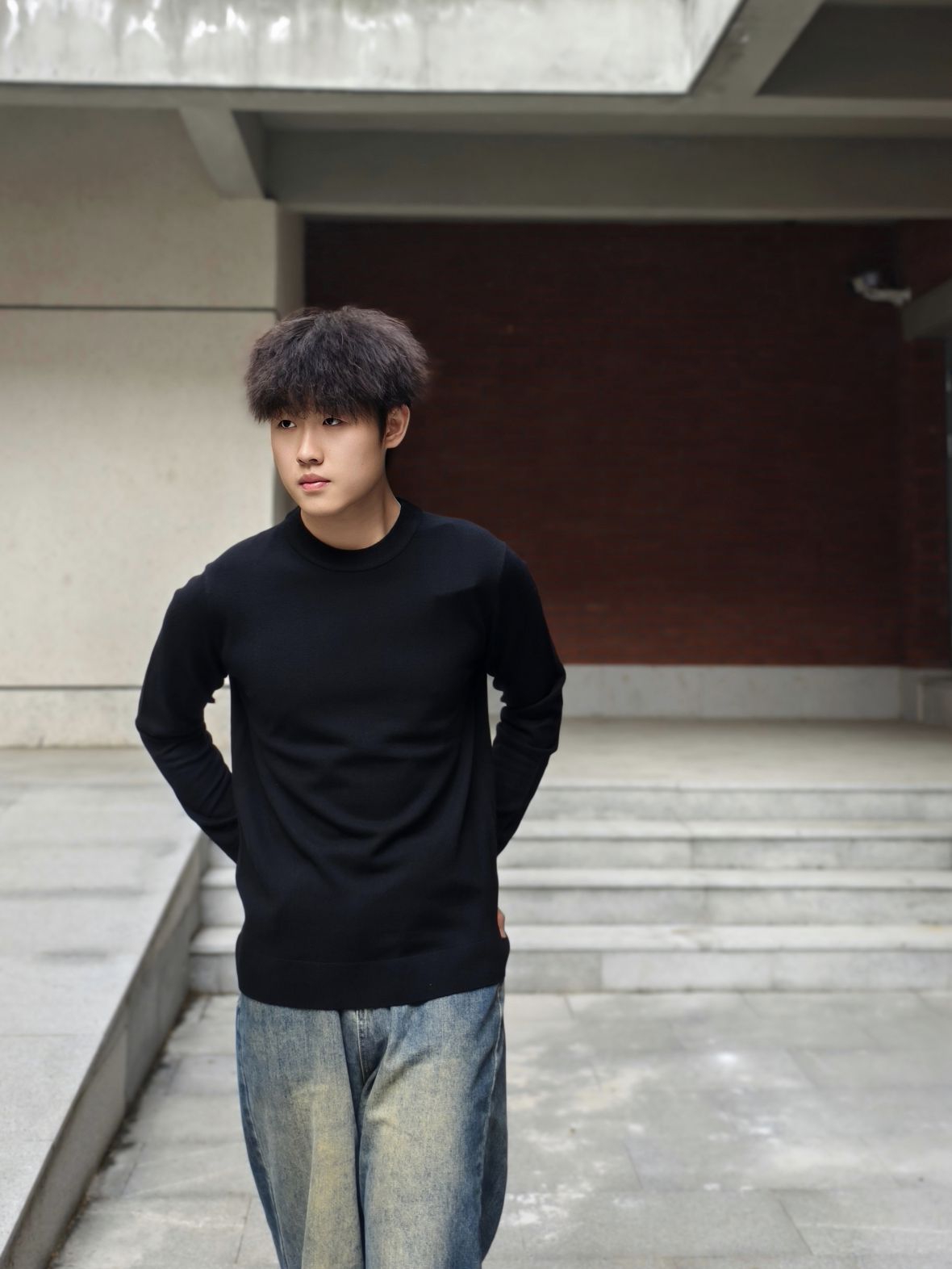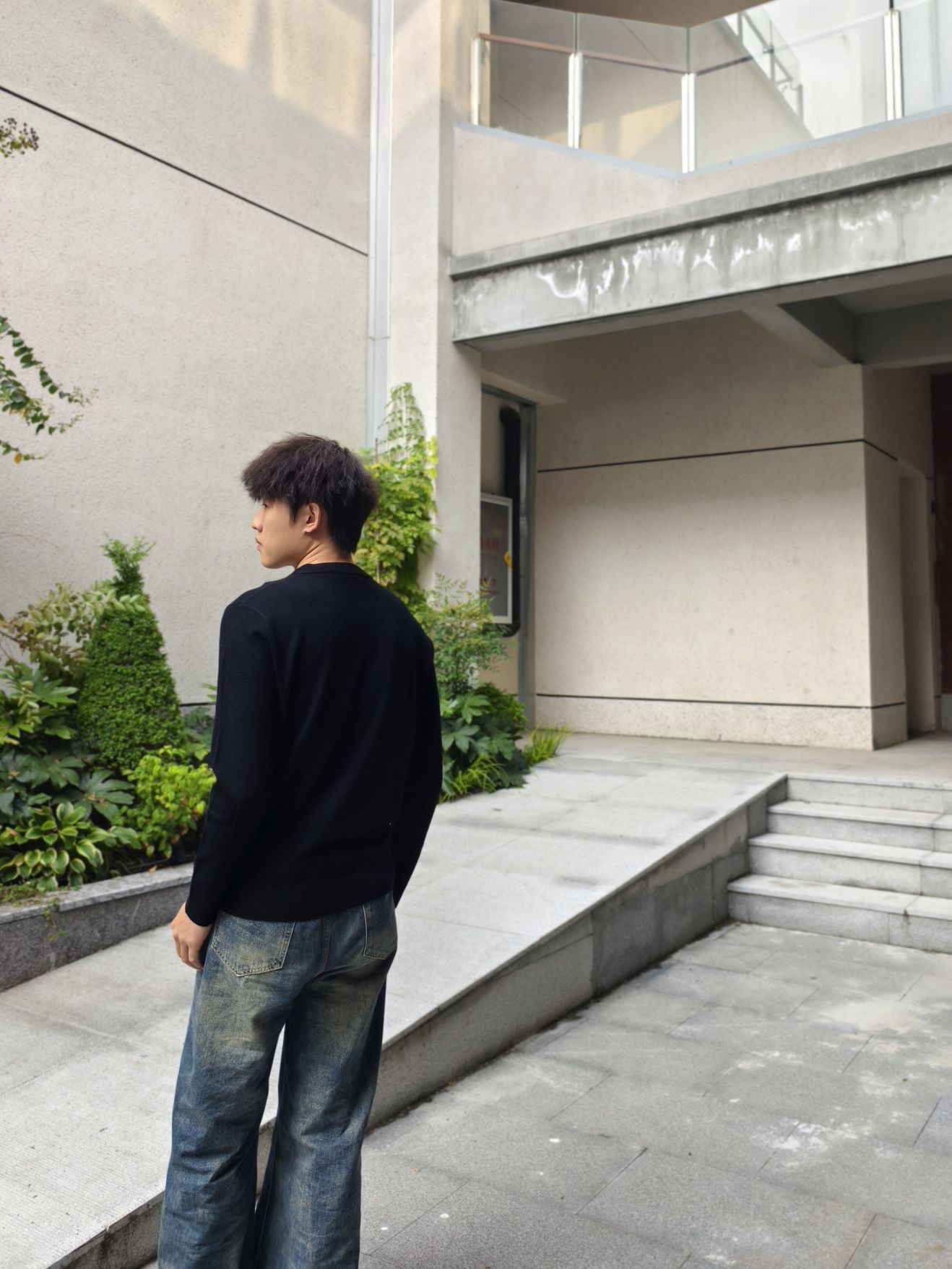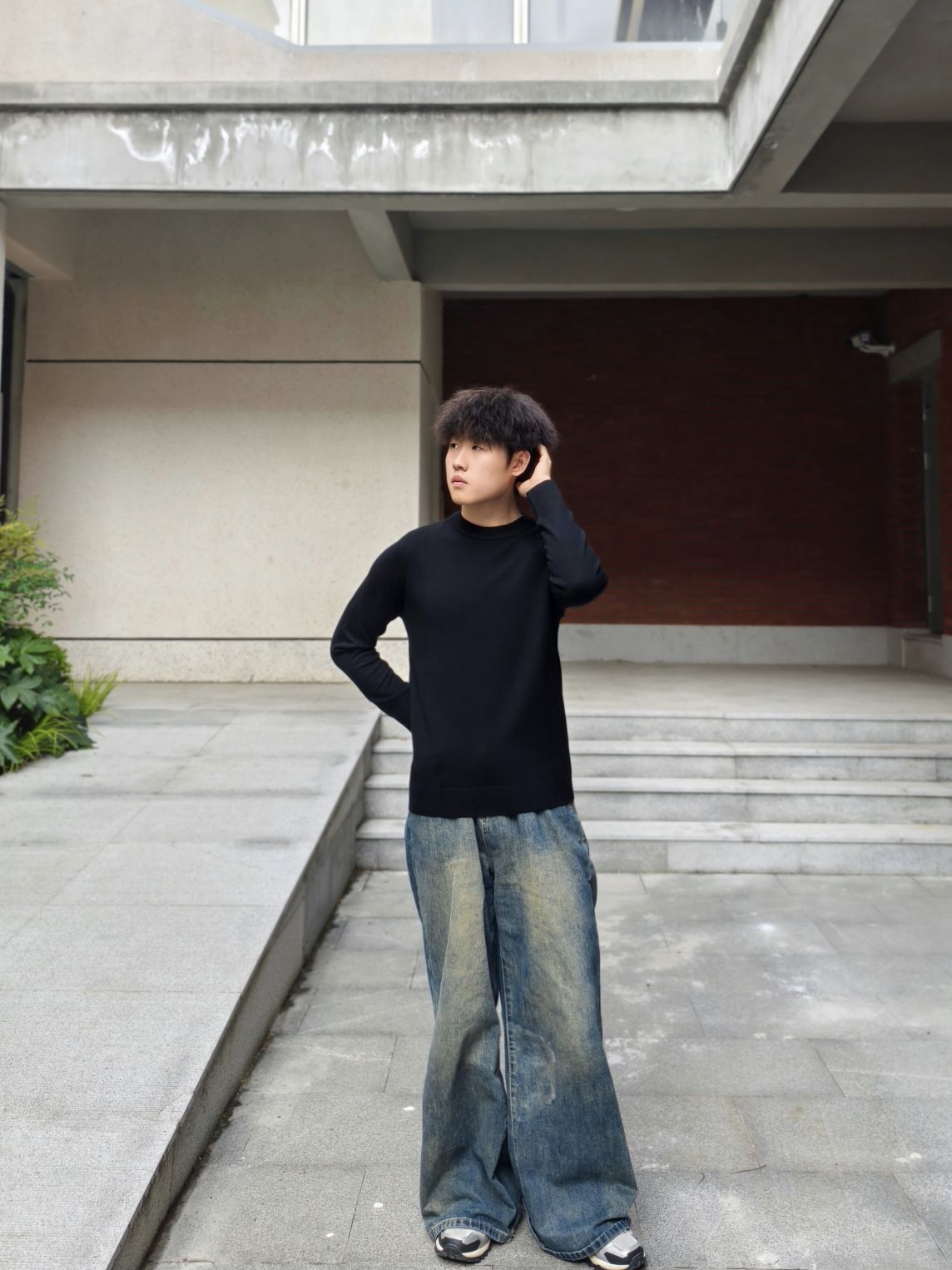#海澜之家 HLA 这件“万能打底”黑毛衣 - 纯色基础款,贴肤软糯还显瘦 - 搭做旧阔腿牛仔裤,慵懒感直接拉满 - 单穿适配秋日温差,叠穿也能扛住降温❄️ 简单一套就够帅,秋冬这么穿准没错!📸
