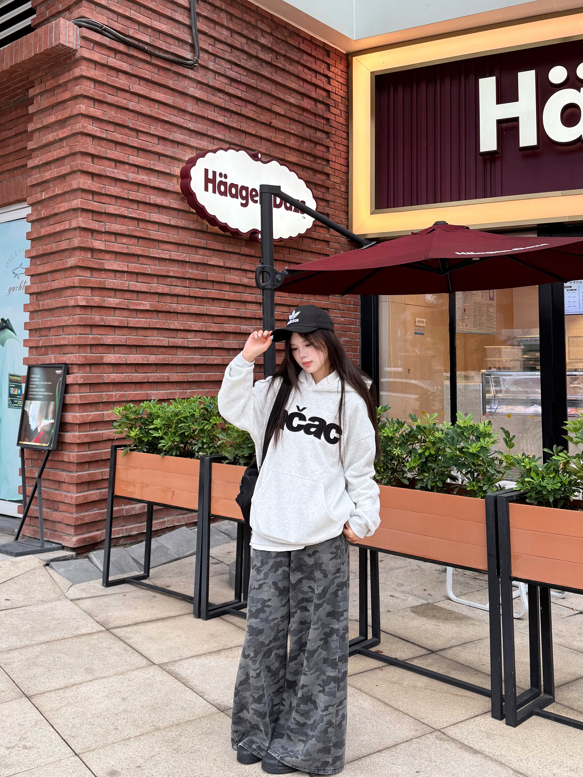 身高|体重:168|51 🧍♂️ 穿搭风格:美式街头风 👔 上衣:A chock 👟 鞋子:阿迪达斯 🧢帽子:阿迪达斯 谁能不爱这种随性又有范儿的穿搭! 浅灰色连帽卫衣印着醒目字母,休闲感拉满😎 搭配灰色迷彩阔腿裤,显高还藏肉,走路都带风~ 再挎个复古小包,戴顶棒球帽,美式街头那味儿直接拿捏✔️ 你们觉得这套穿搭怎么样?评论区说说你们的日常穿搭小心机呀👇