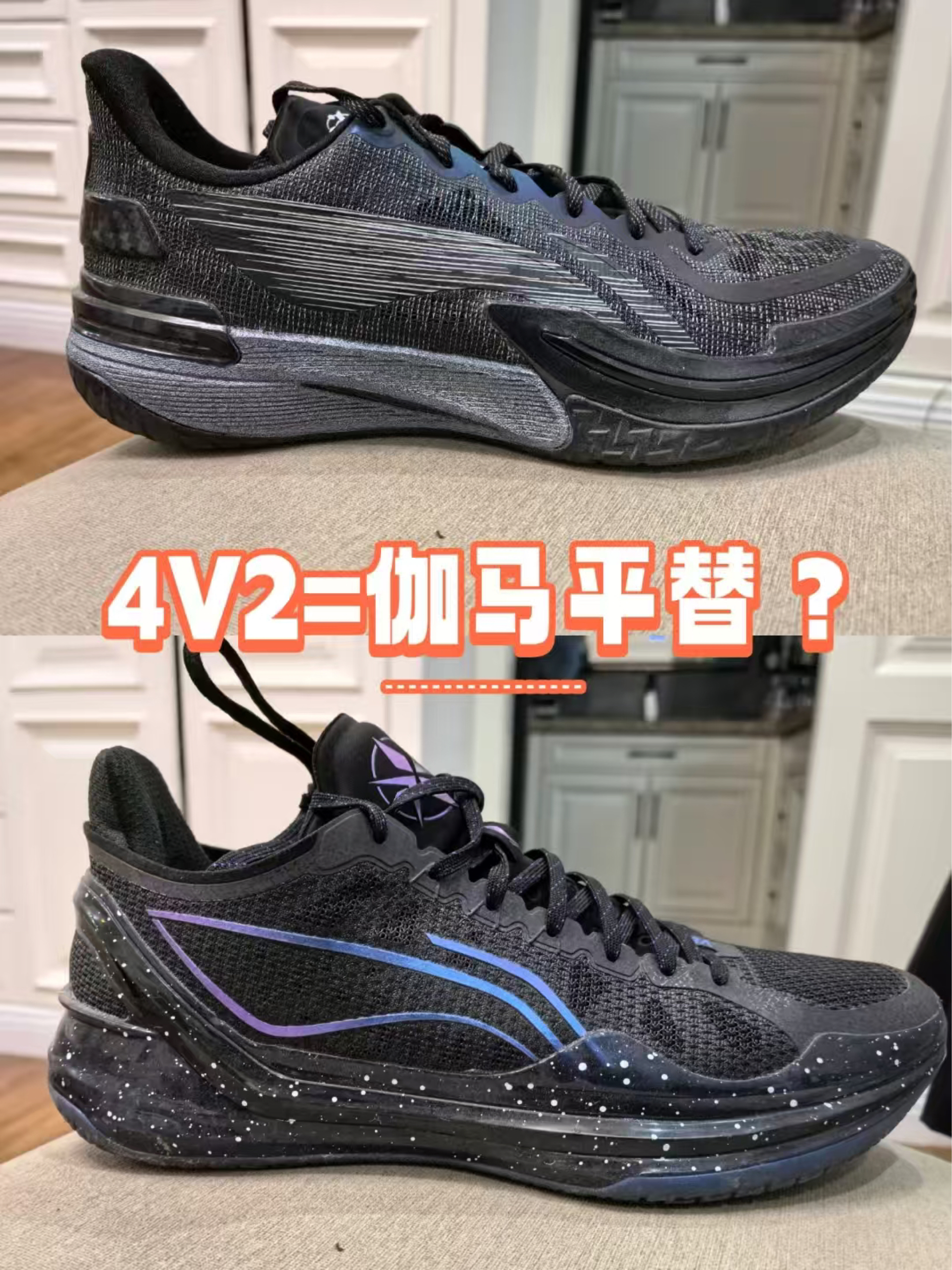 共同点: • 脚感相似:都为韧弹脚感,用户反馈"穿着感受基本一致" • 抓地表现:大底纹路相似,防滑性能都不错 • 重量控制:轻量化设计,都适合快 选购建议 • 追求极致性能且预算充足:选择伽马一代,碳板推进感和包裹性更出色 • 注重性价比或脚型偏宽:选择利刃4V2,400多元价格穿坏不心疼 • 小体重后卫:两双都合适,利刃4V2更经济实惠 • 大体重球员:两双缓震极限都不算高,建...