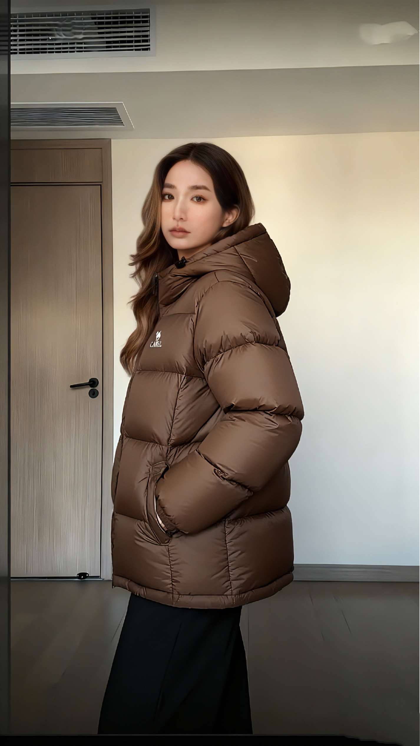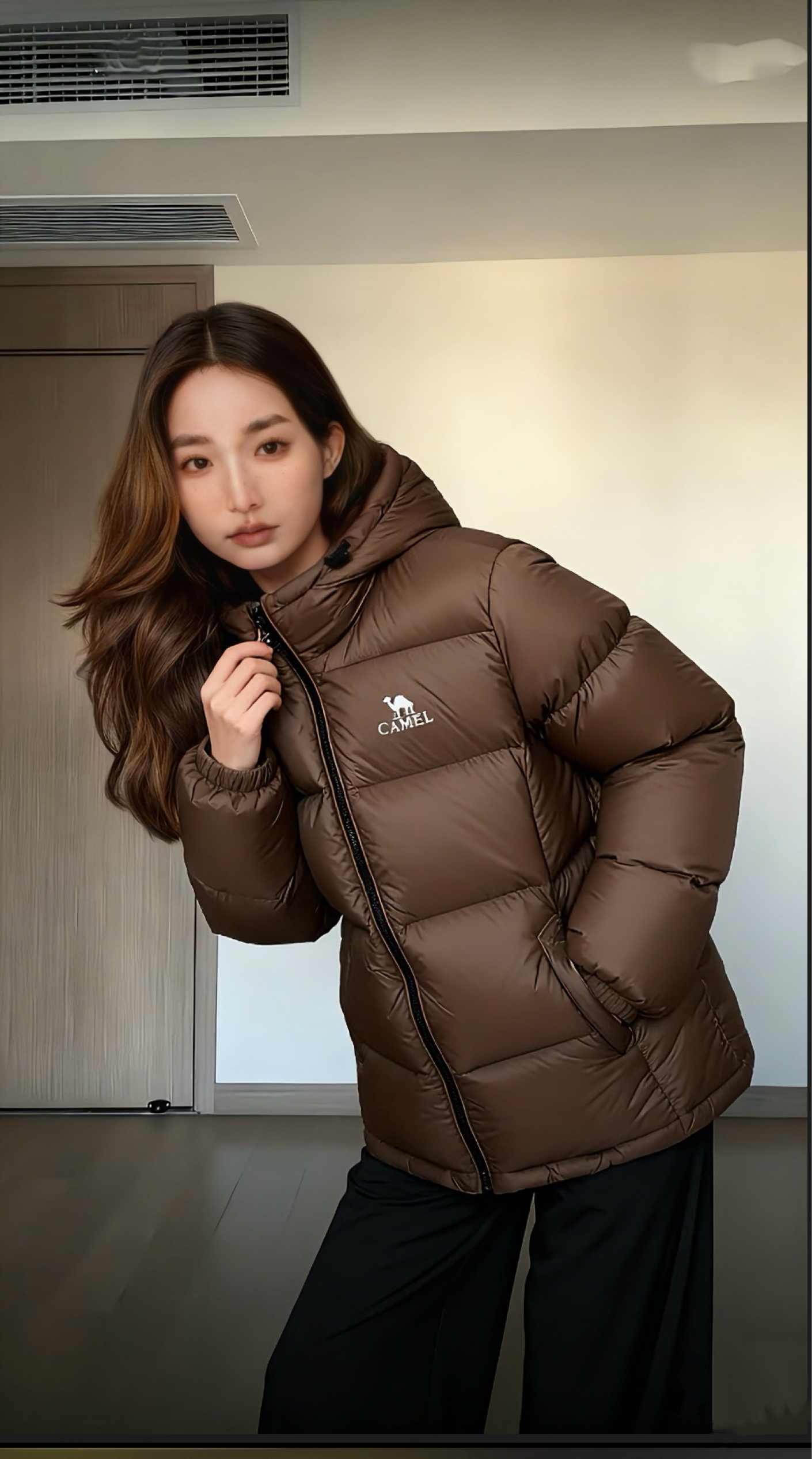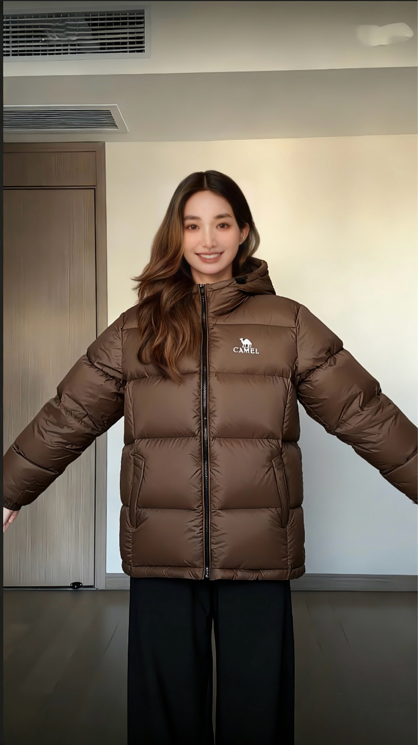 👔版型&保暖度 • 是我爱的宽松oversize款,但完全不压个子!我165穿M刚好盖住pp,配阔腿裤就是慵懒松弛感 • 充绒量很足但不臃肿,连帽款防风又软fufu,北方初冬穿完全够暖(南方姐妹可以直接过冬!) • 口袋是隐藏式的,插手超方便,细节控表示很爱! ✨搭配&实穿性 搭黑色阔腿裤是“韩系女高”,配牛仔裤就是“慵懒学姐”,属于随便穿都好看的基础款~ 面料是那种不易皱的,穿了一周没...