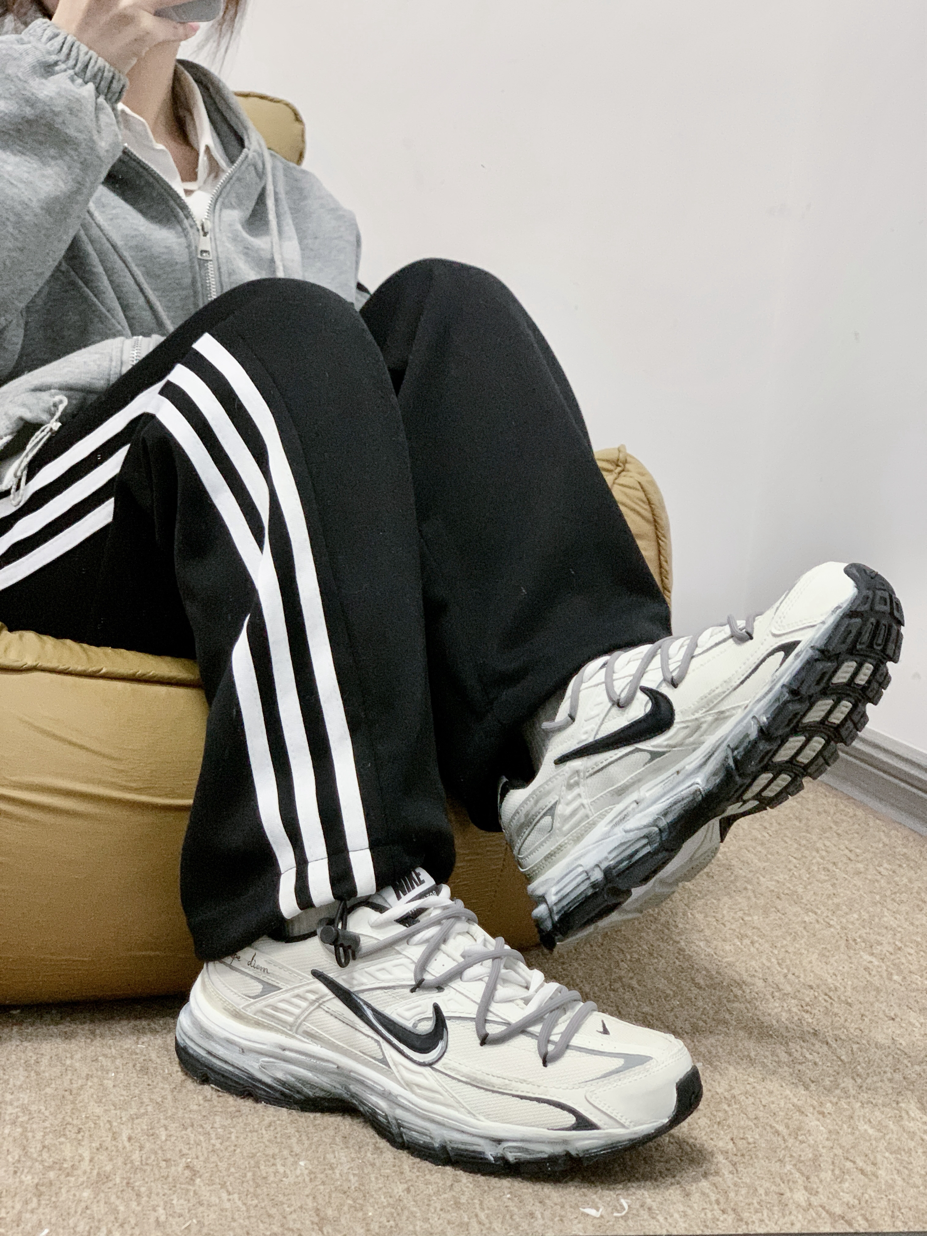 这双粉黑 AJ1 上脚还挺有意思~ 粉黑拼接很特别,不会烂大街,搭衣服轻松营造甜酷感,牛仔裤、短裙换着配,风格切换没压力。 脚感方面,日常走路算舒服,不会硌脚,长时间逛街也能扛住 。要说缺点,可能刚穿时鞋帮有点硬,不过穿穿就磨合啦,总体是双能为穿搭加分、又好穿的鞋,喜欢这种调调的可以试试~