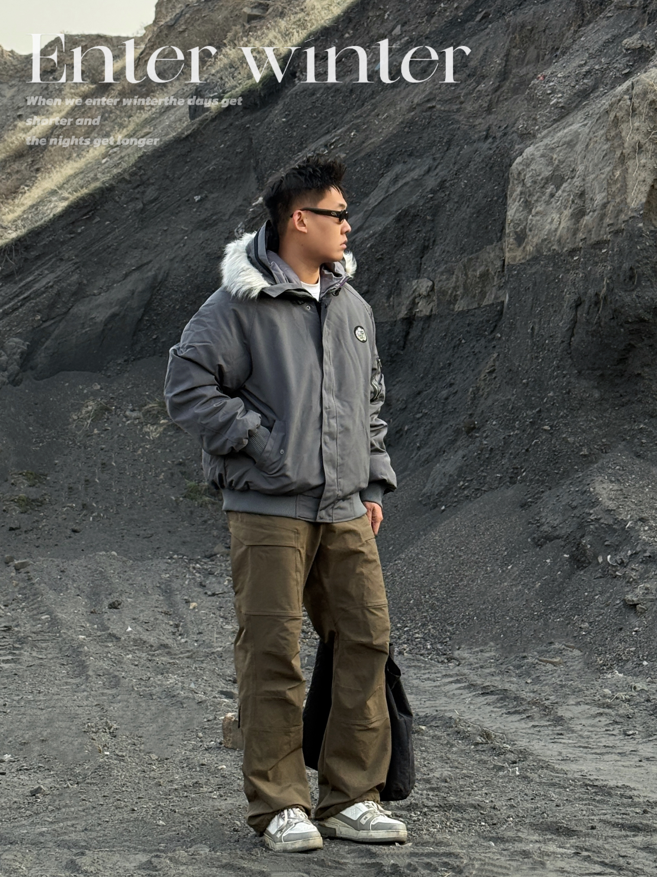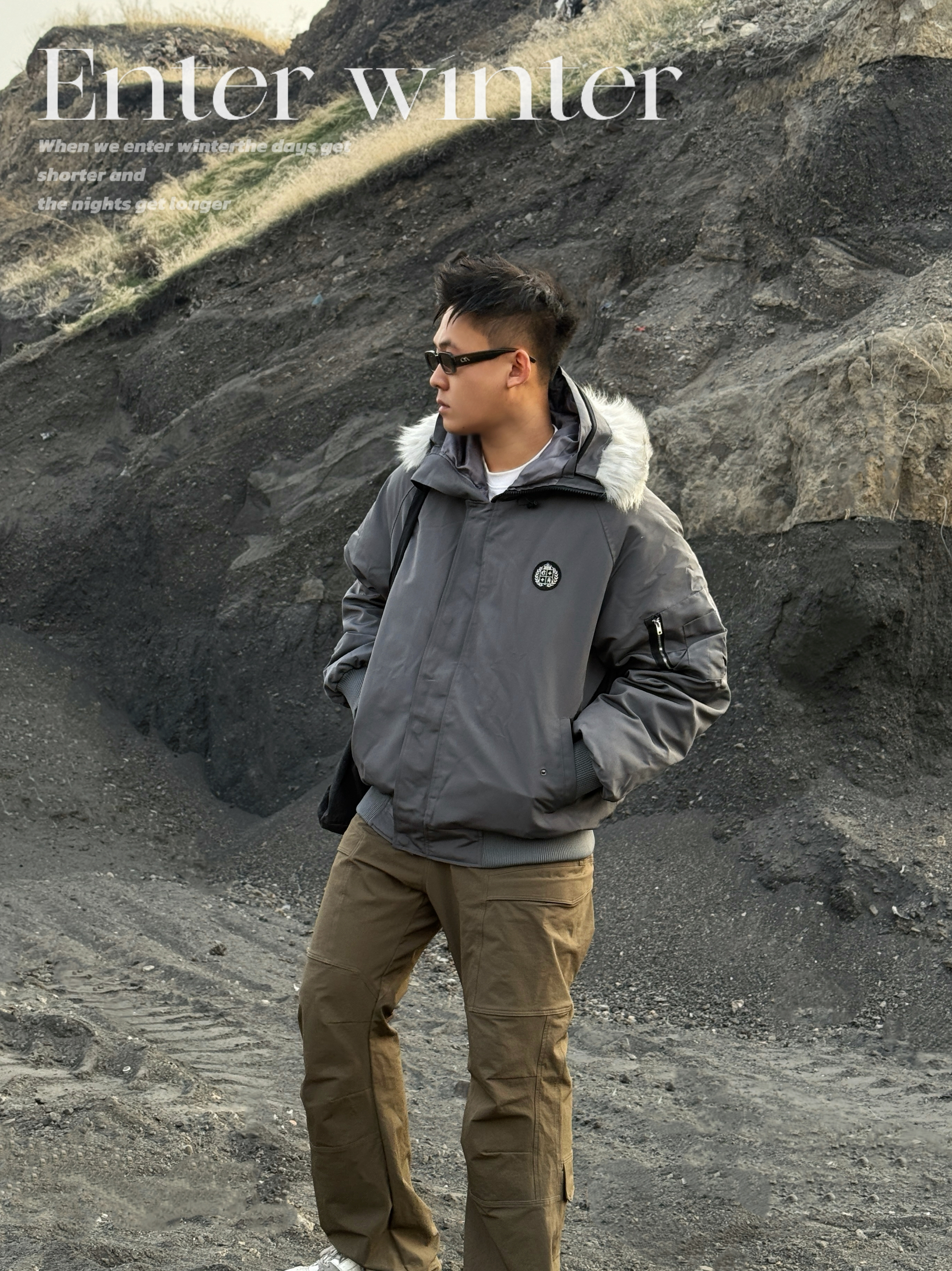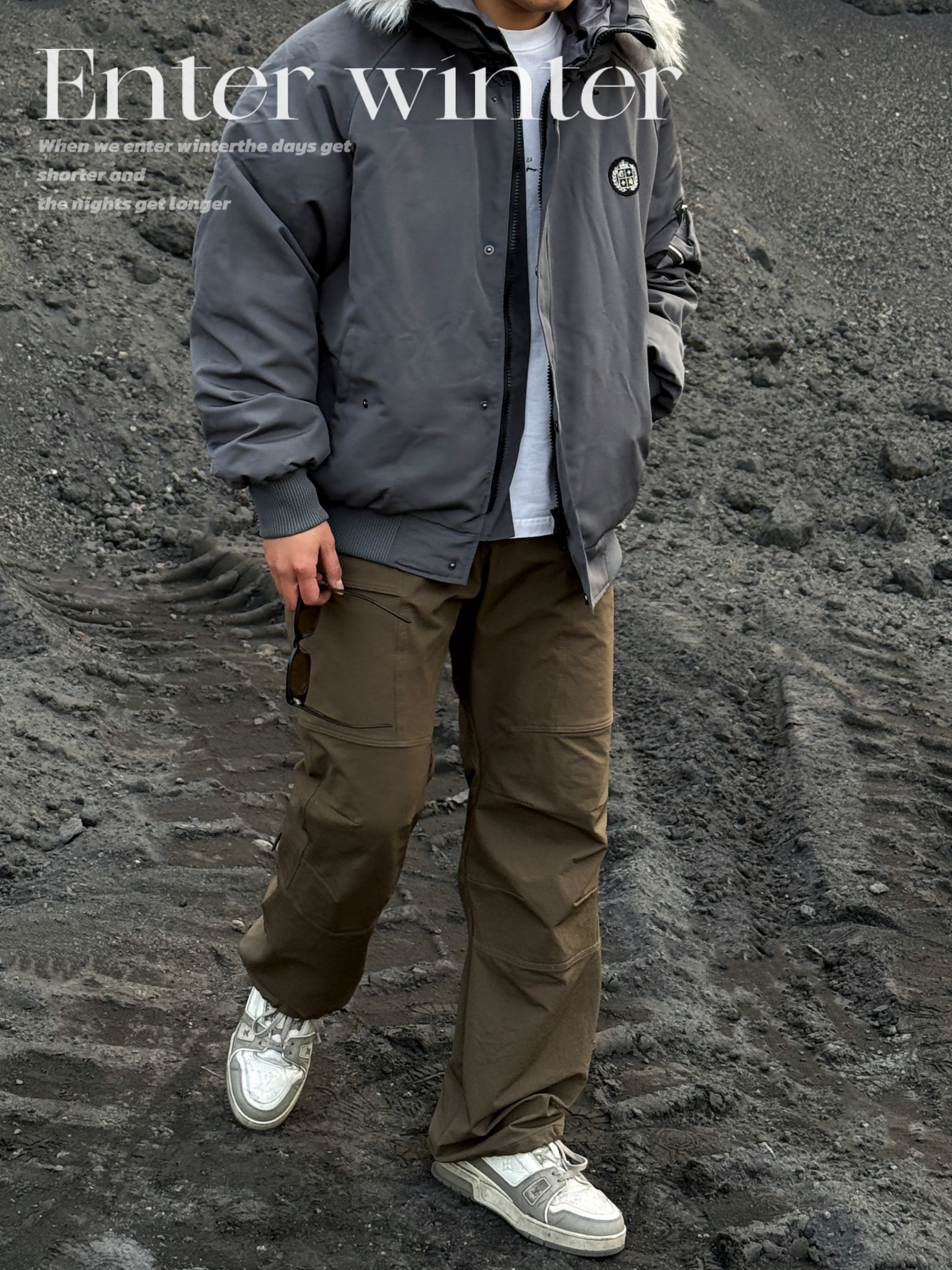 🔜今日小雪,安排上入冬的保暖搭配吧! ▪️上身一件派克棉服就很合适! 挺括的短宽版型➕大毛领的连帽设计,保暖又有范儿💯 穿上下雪天出门足够温暖喽🔥 而且低饱和服的灰色系也超有秋冬的氛围感💨 ▪️下身就简单搭配一条棕色休闲裤➕灰色板鞋👟 整体颜色也是协调统一👌 冬日简单通勤,这套温度和风度都拿捏啦! 👔A chock