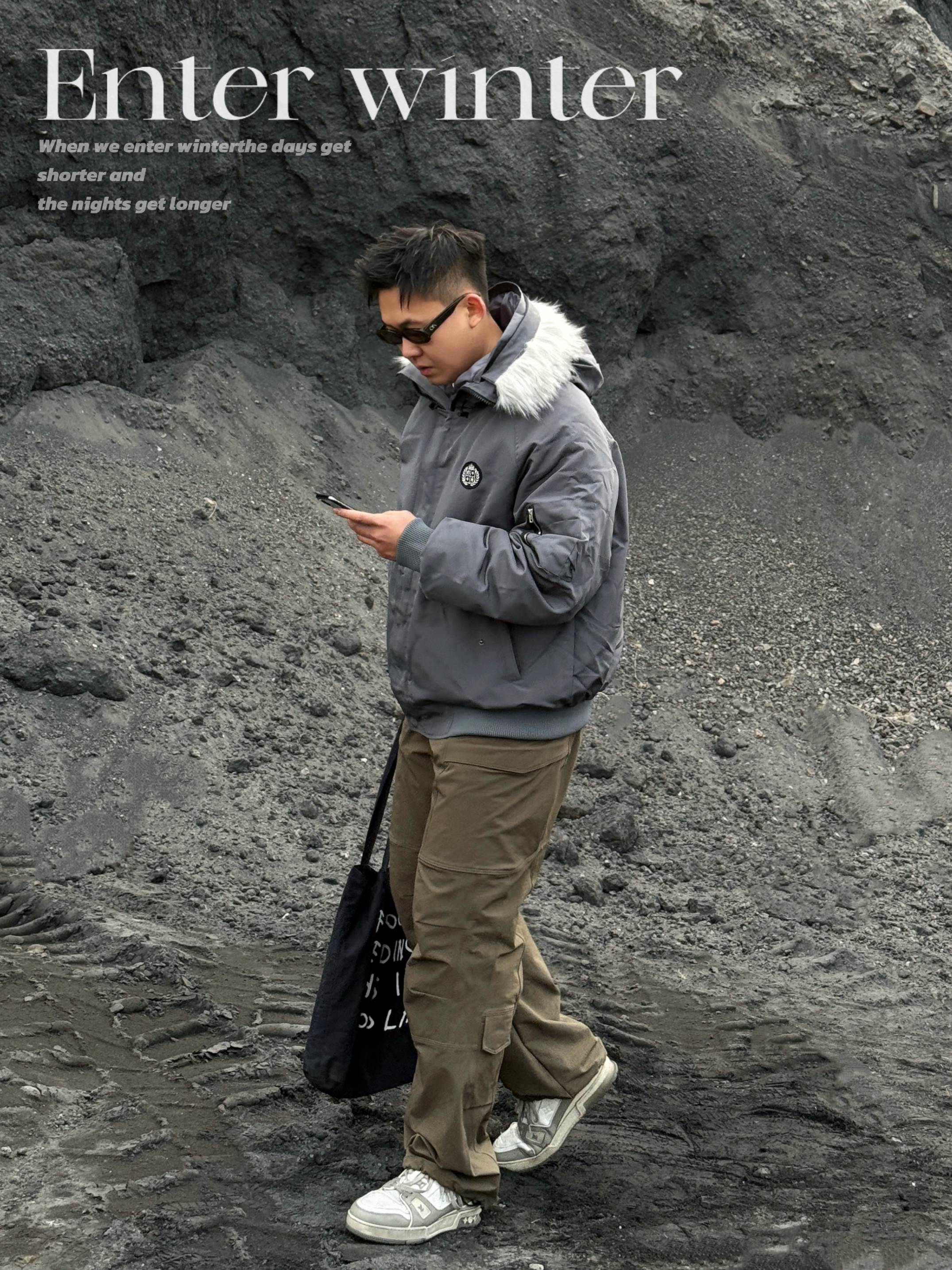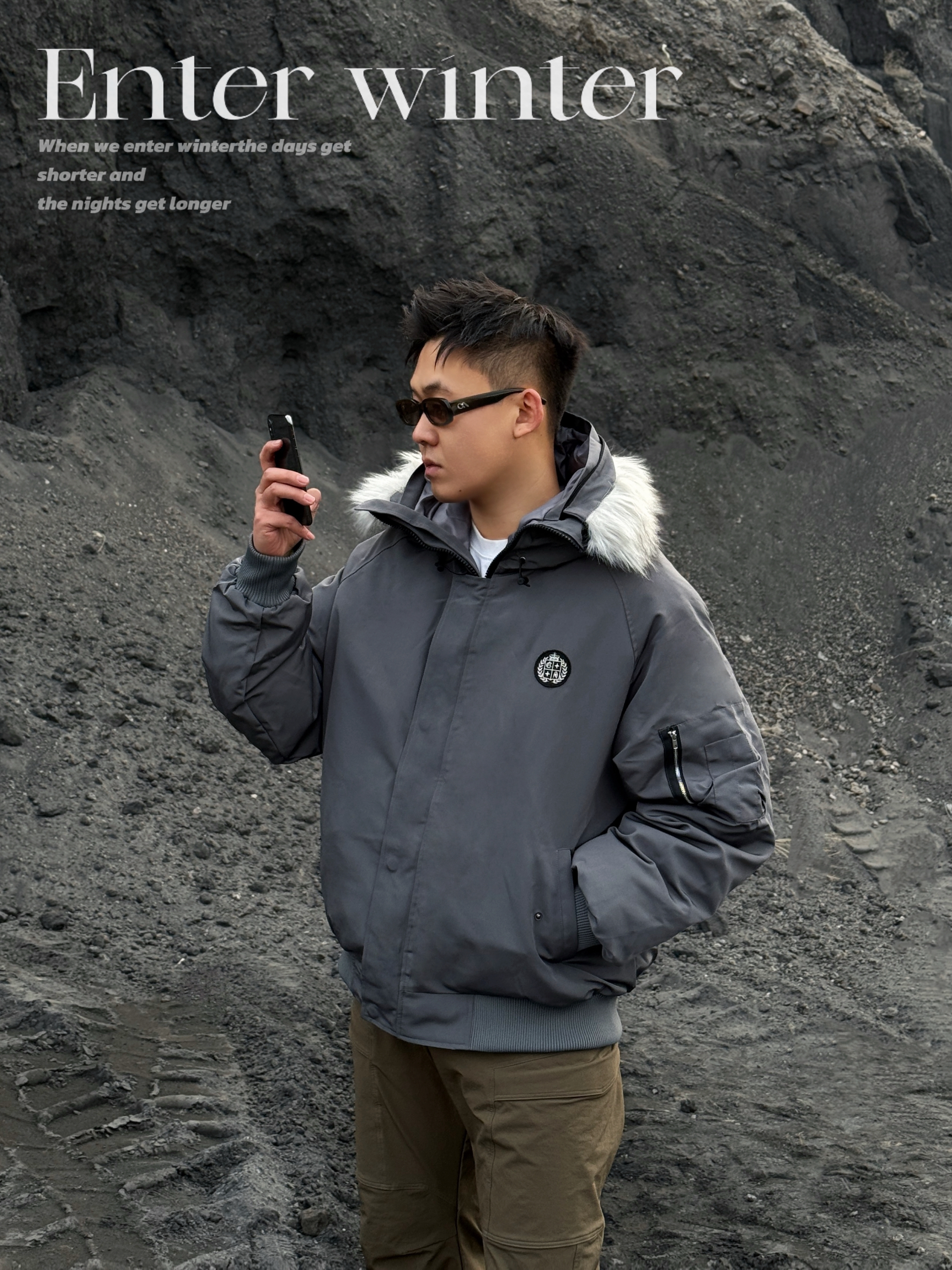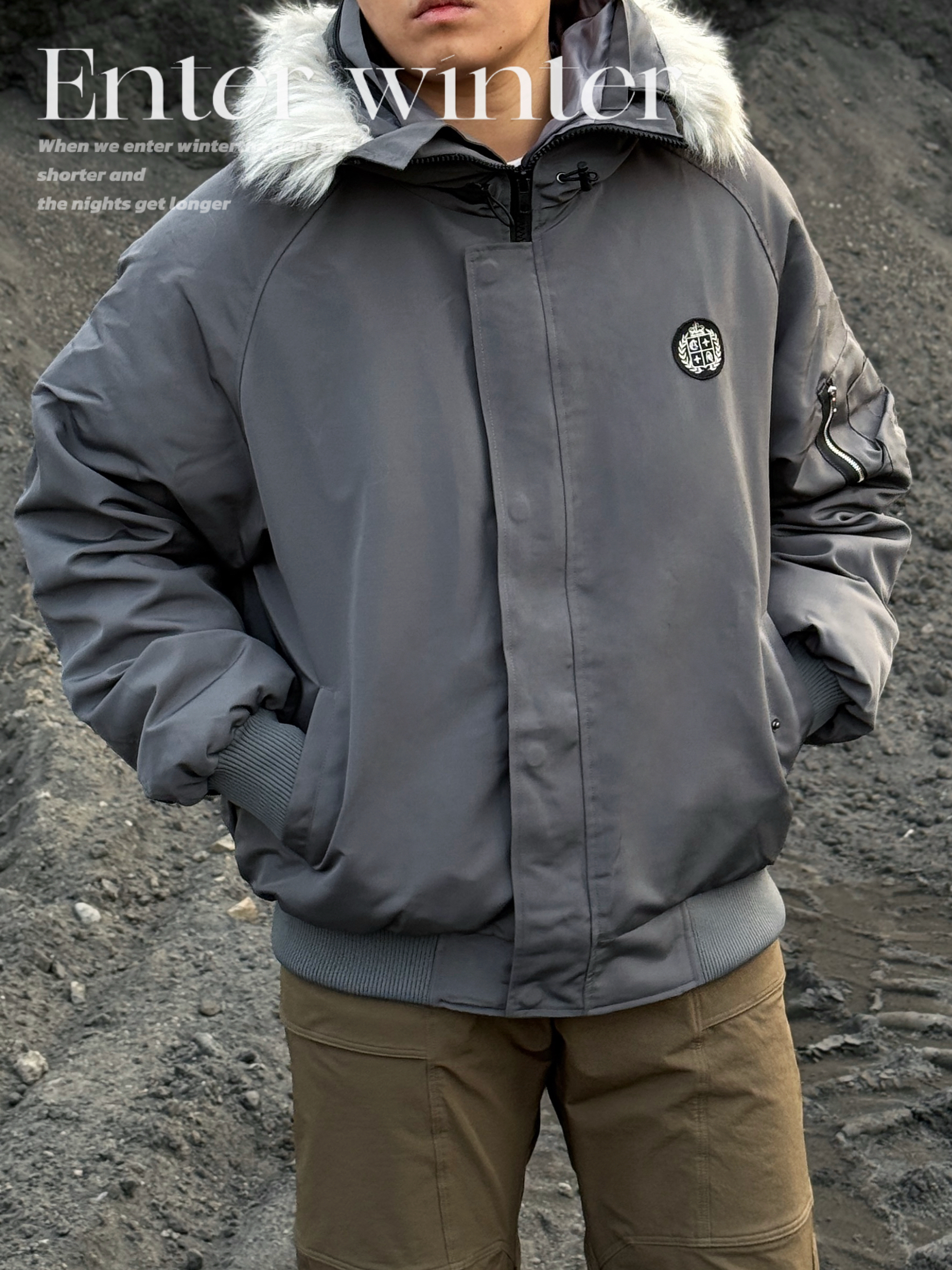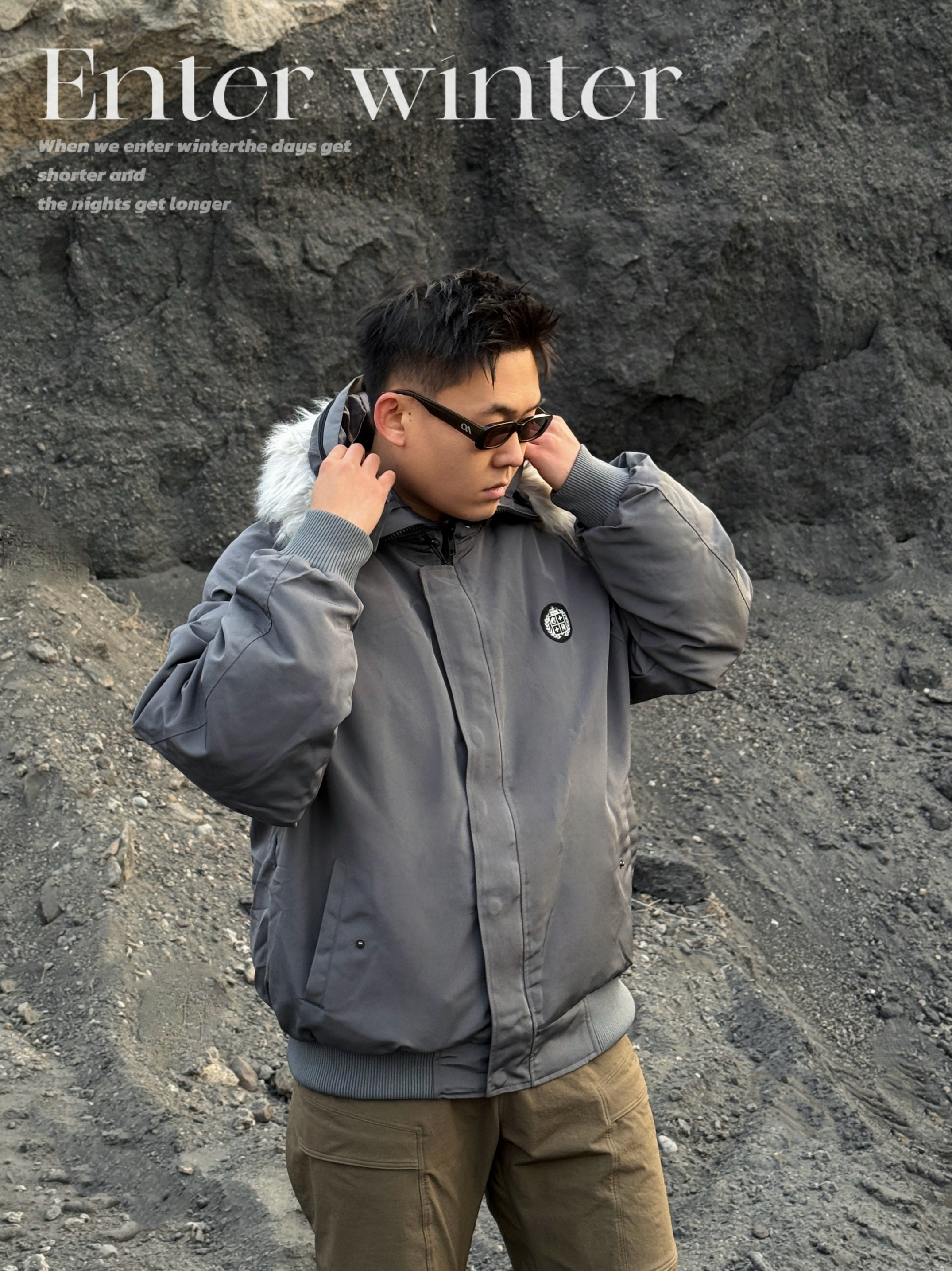 🔜今日小雪,安排上入冬的保暖搭配吧! ▪️上身一件派克棉服就很合适! 挺括的短宽版型➕大毛领的连帽设计,保暖又有范儿💯 穿上下雪天出门足够温暖喽🔥 而且低饱和服的灰色系也超有秋冬的氛围感💨 ▪️下身就简单搭配一条棕色休闲裤➕灰色板鞋👟 整体颜色也是协调统一👌 冬日简单通勤,这套温度和风度都拿捏啦! 👔A chock