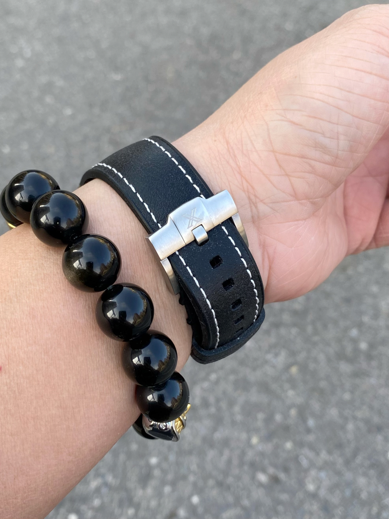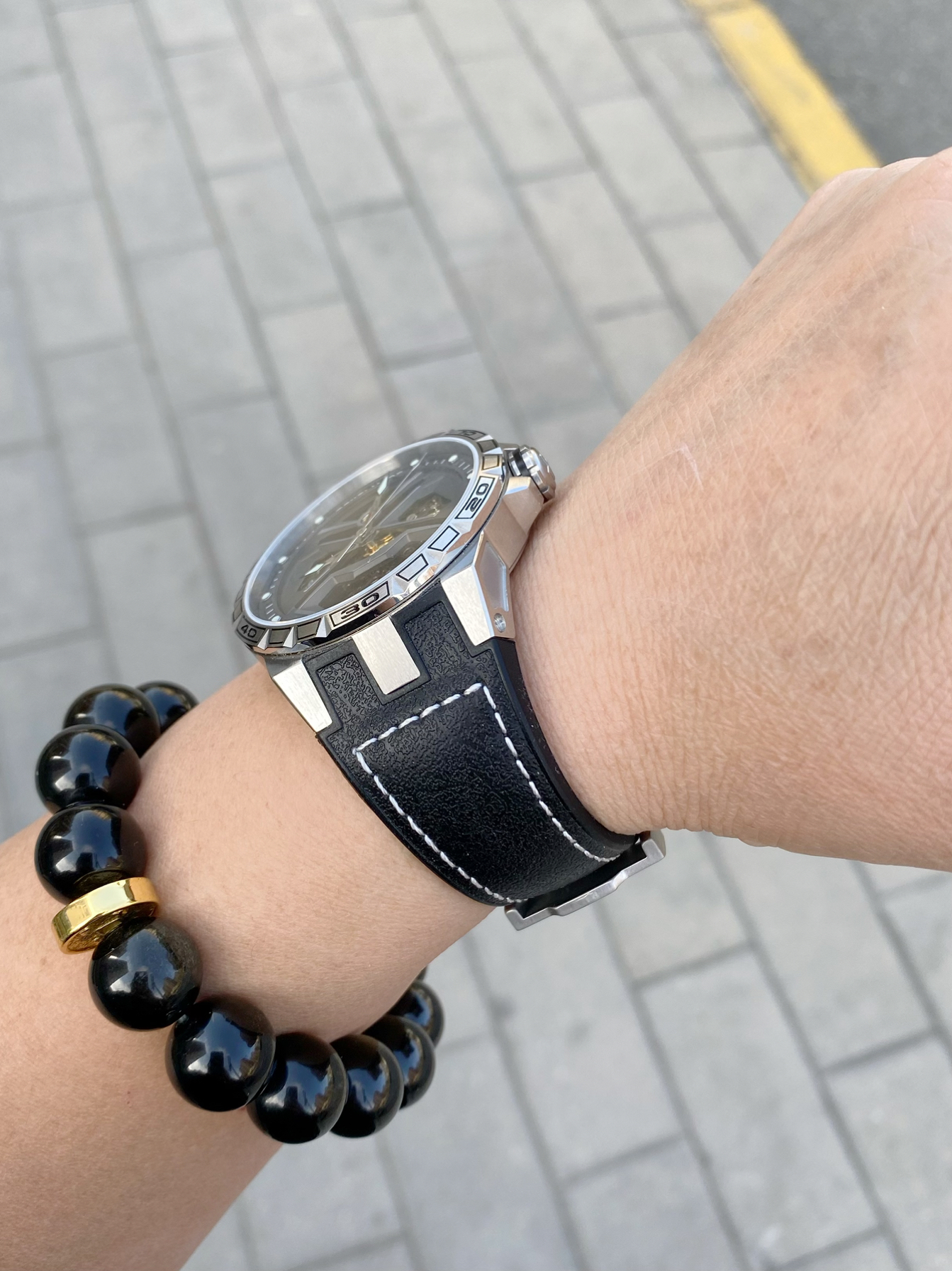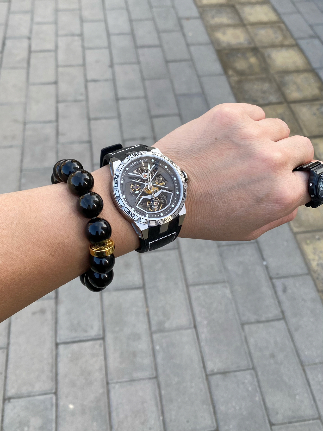 黑皮表带摸着特别软和,最绝的是表盘,能看到里面的机械零件在转动~ 不管是上班戴还是跟朋友出去玩,戴这块表都特别有面儿。
