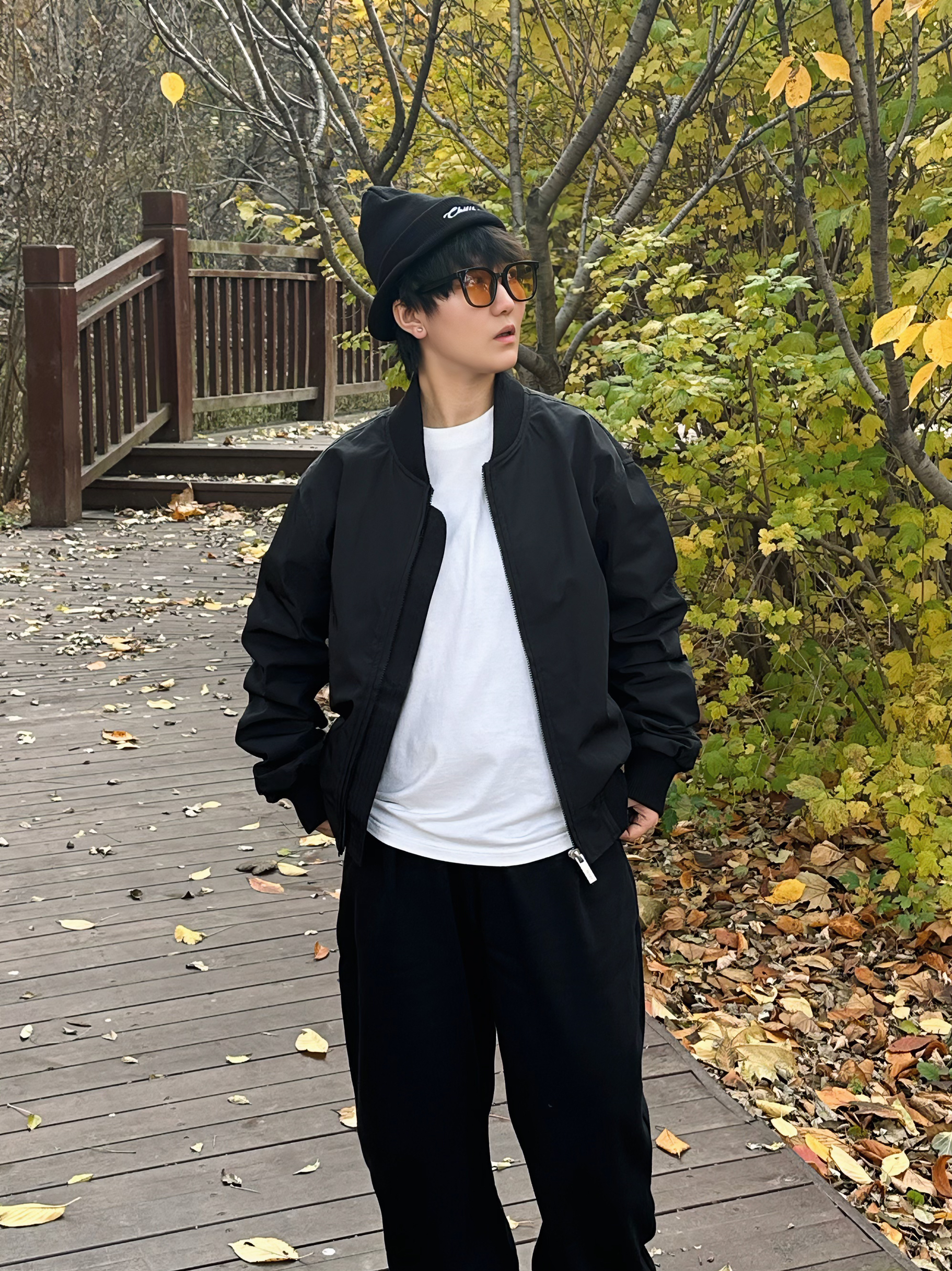 听说下周要降温了😅那关我这周过秋天什么事 休息日认真打扮约上好朋友出门拍照 到底是谁发明的磁吸耳夹🤭让我这个无耳洞星人也能带上耳钉啦 iCEGIANT的这个🔩耳钉特帅,而且很牢固 👔👖一套All Black穿的chinism 加绒卫裤上身舒服又暖和 全黑色飞行夹克外套自带复古氛围又很百搭 🚶♂️出行出游都是好搭子