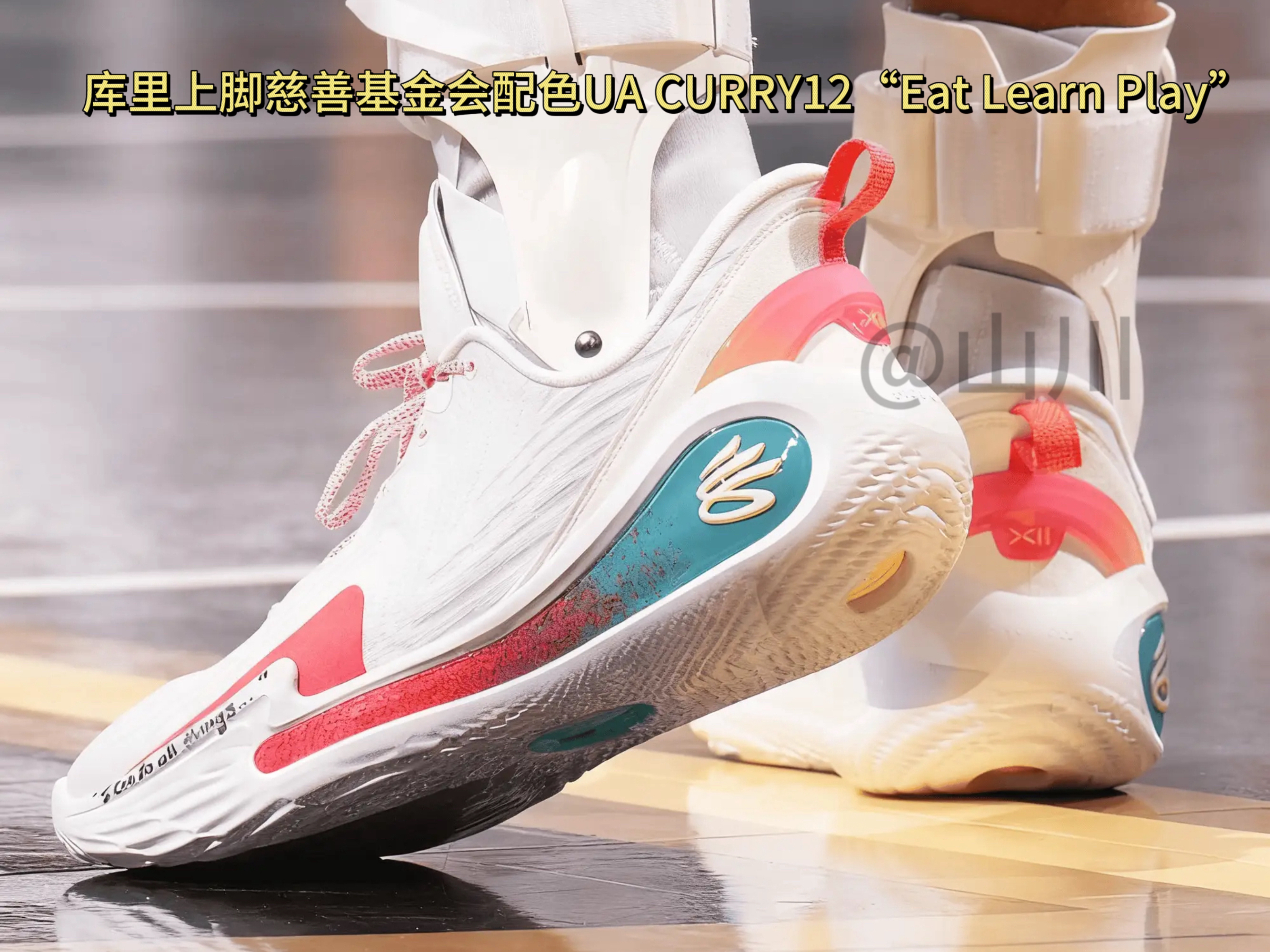 弗拉格上脚红色New Balance Hesi Low v2 16分5篮板1抢断 唐斯上脚蒂芙尼绿色Nike G.T Jump 2PE 39分11篮板4助攻1抢断 文班亚马上脚黑紫色Nike G.T Hustle3 PE 26分12篮板4助攻1抢断3盖帽 库里上脚慈善基金会配色UA CURRY12“Eat Learn Play”,下半场换穿蓝色UA CURRY Series7、库里热身上脚曼巴基金...
