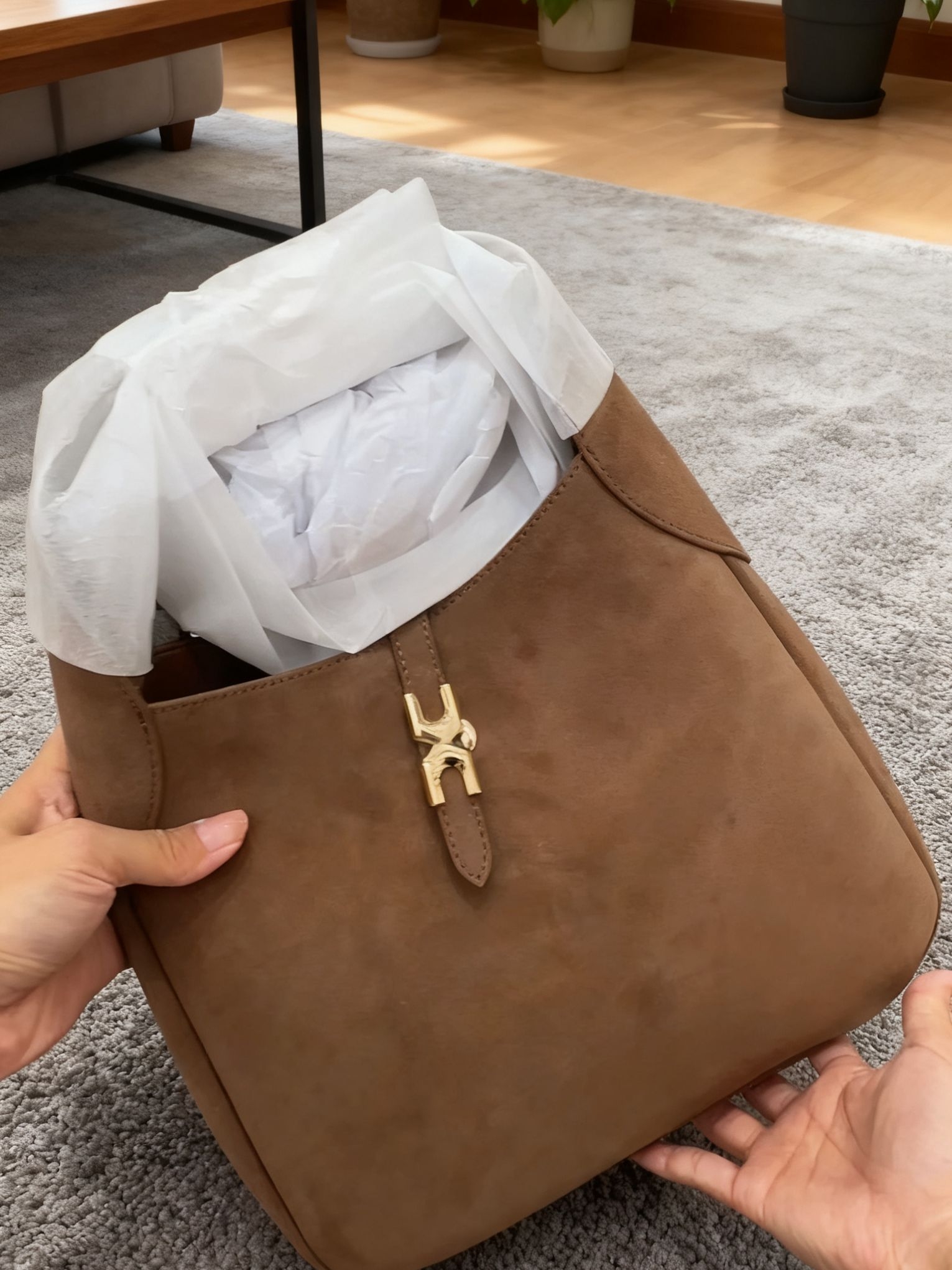 小CK这款麂皮包质感超惊喜!触感柔软细腻,自带复古高级感,秋冬搭大衣巨好看。容量很能打,通勤用品轻松装下。轻微划痕可护理恢复,日常打理不麻烦,性价比拉满,闭眼入不踩雷!