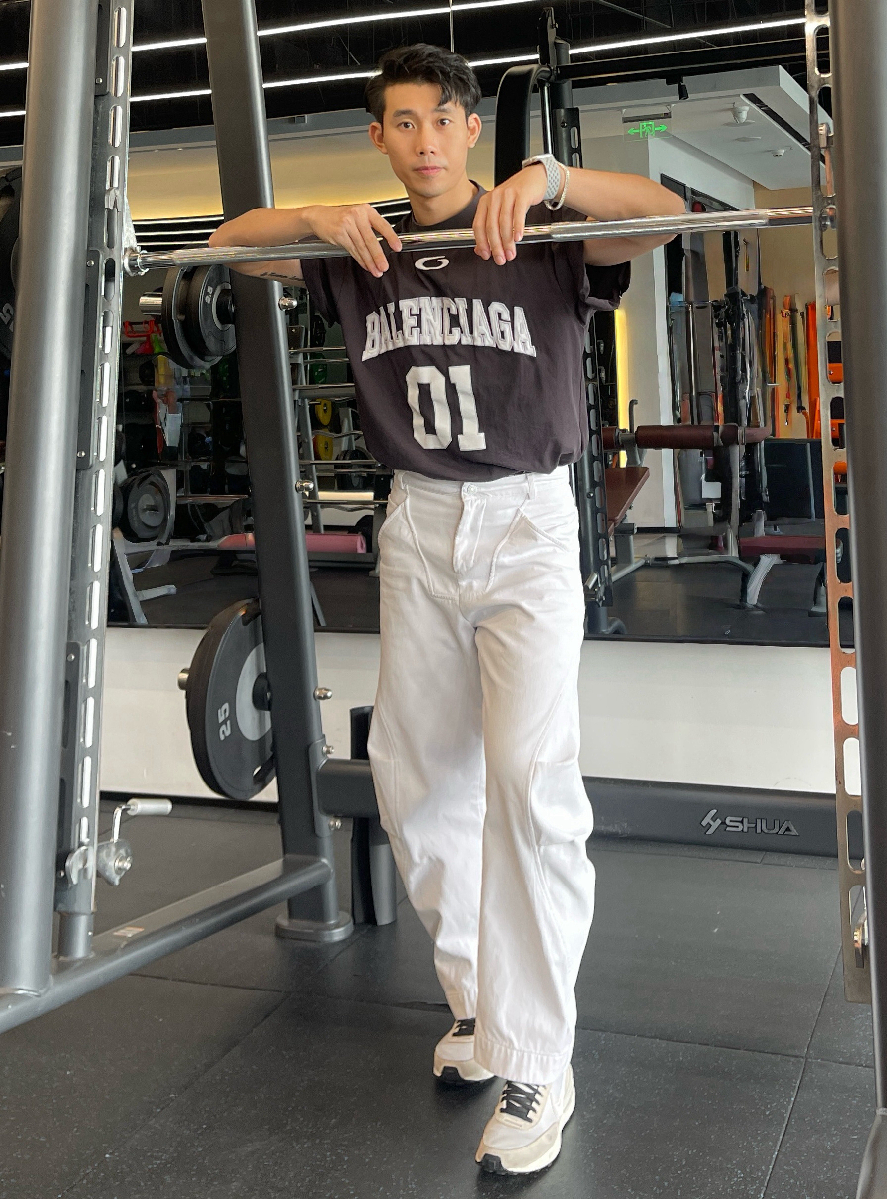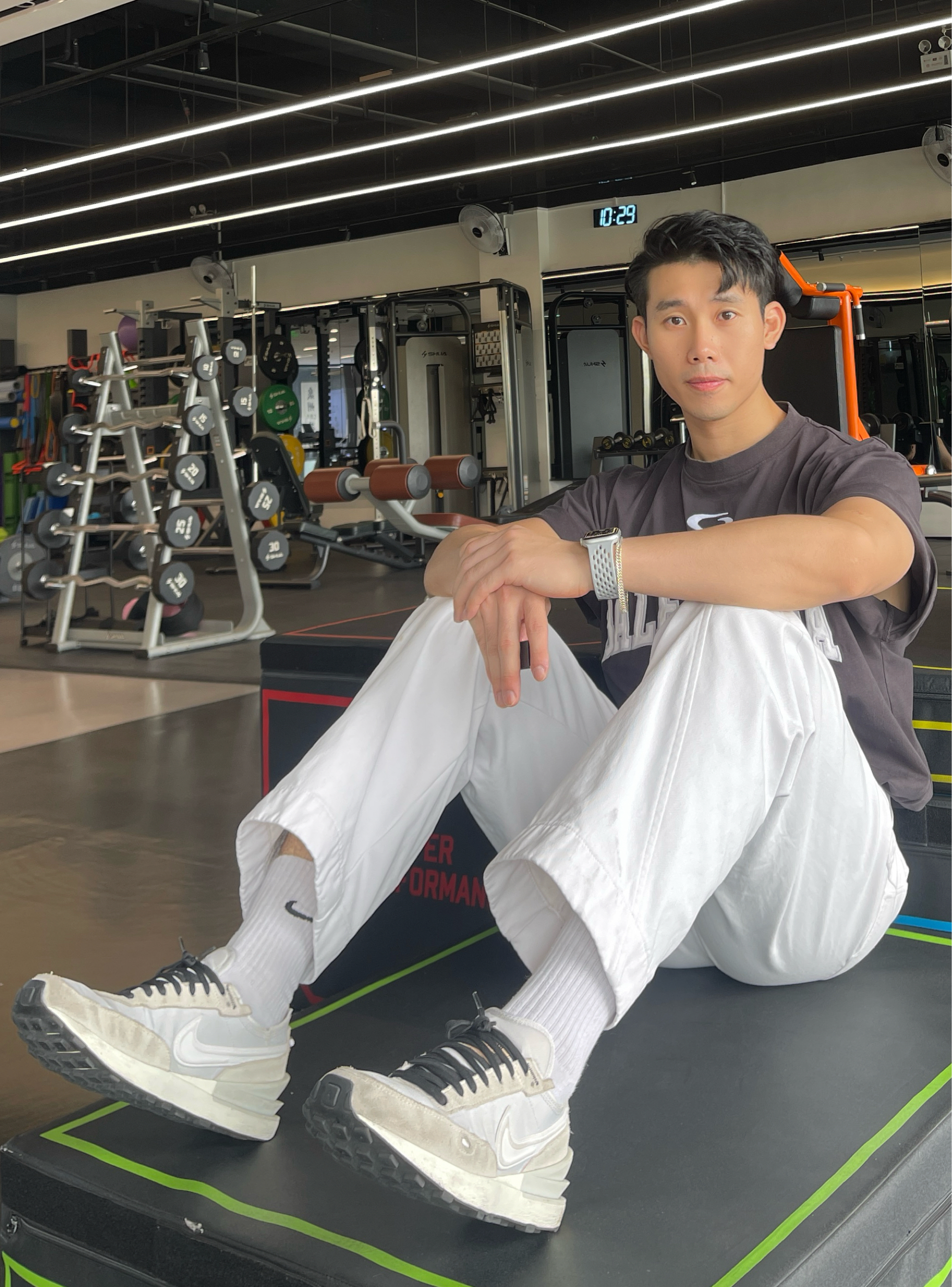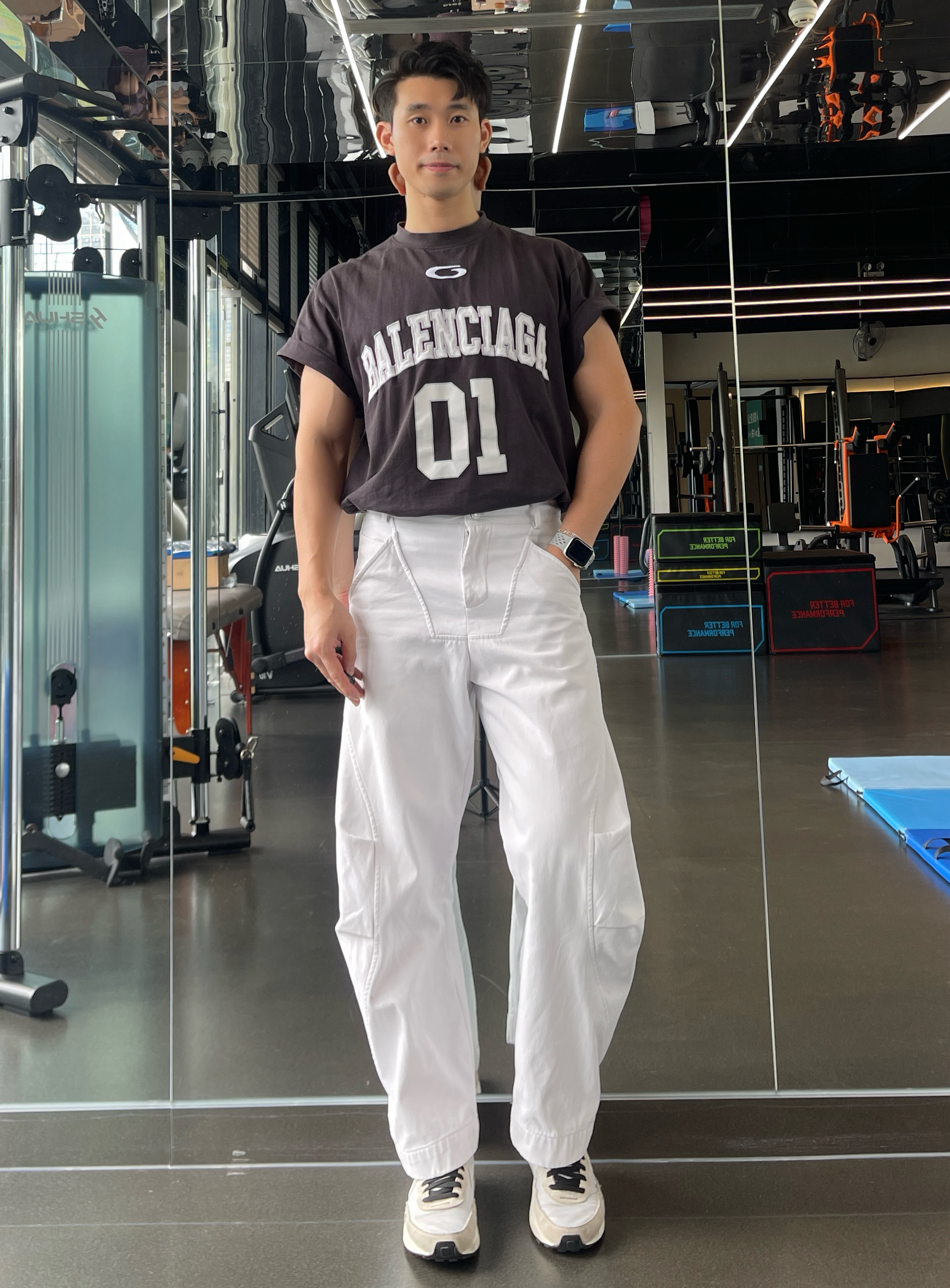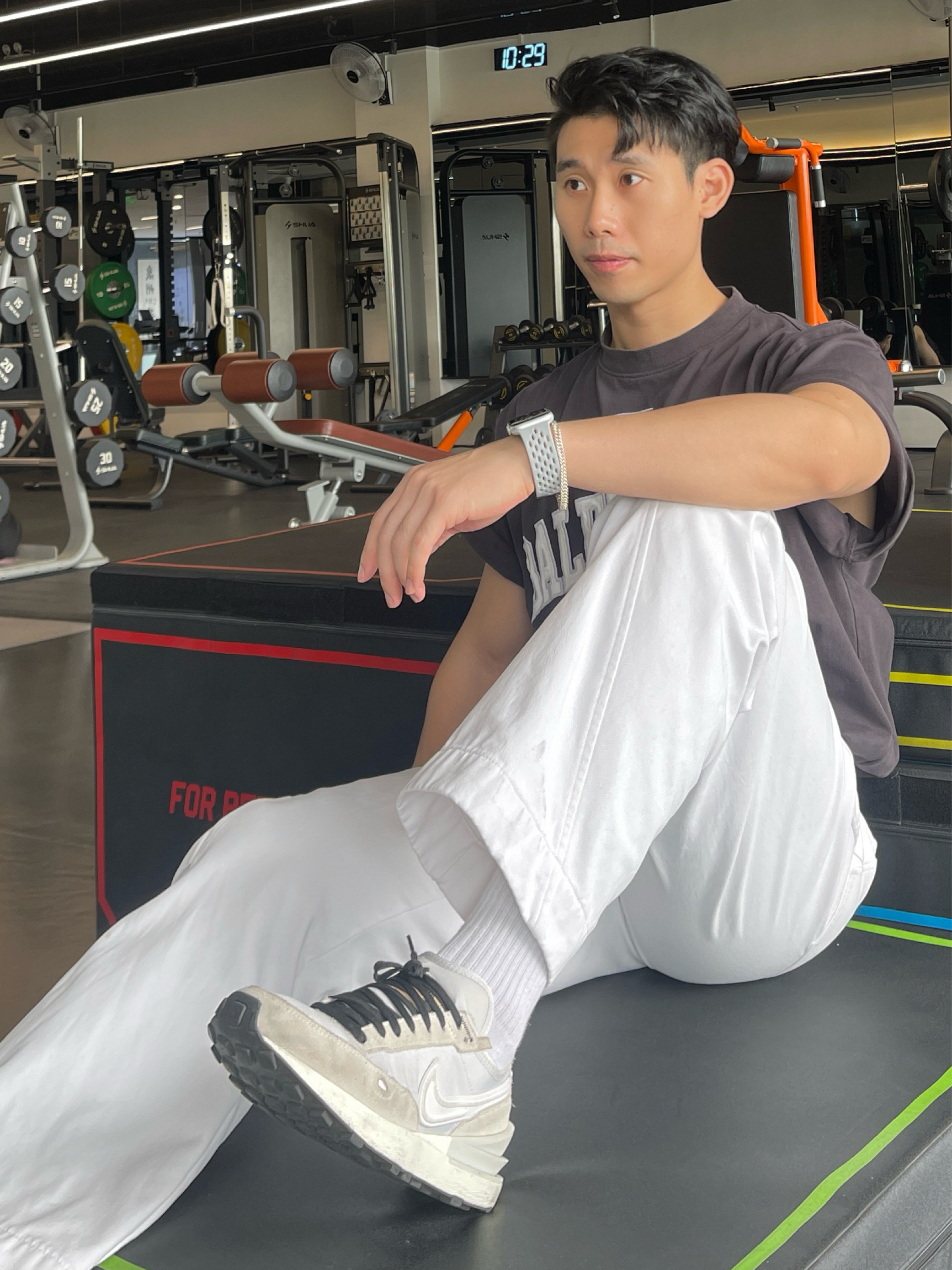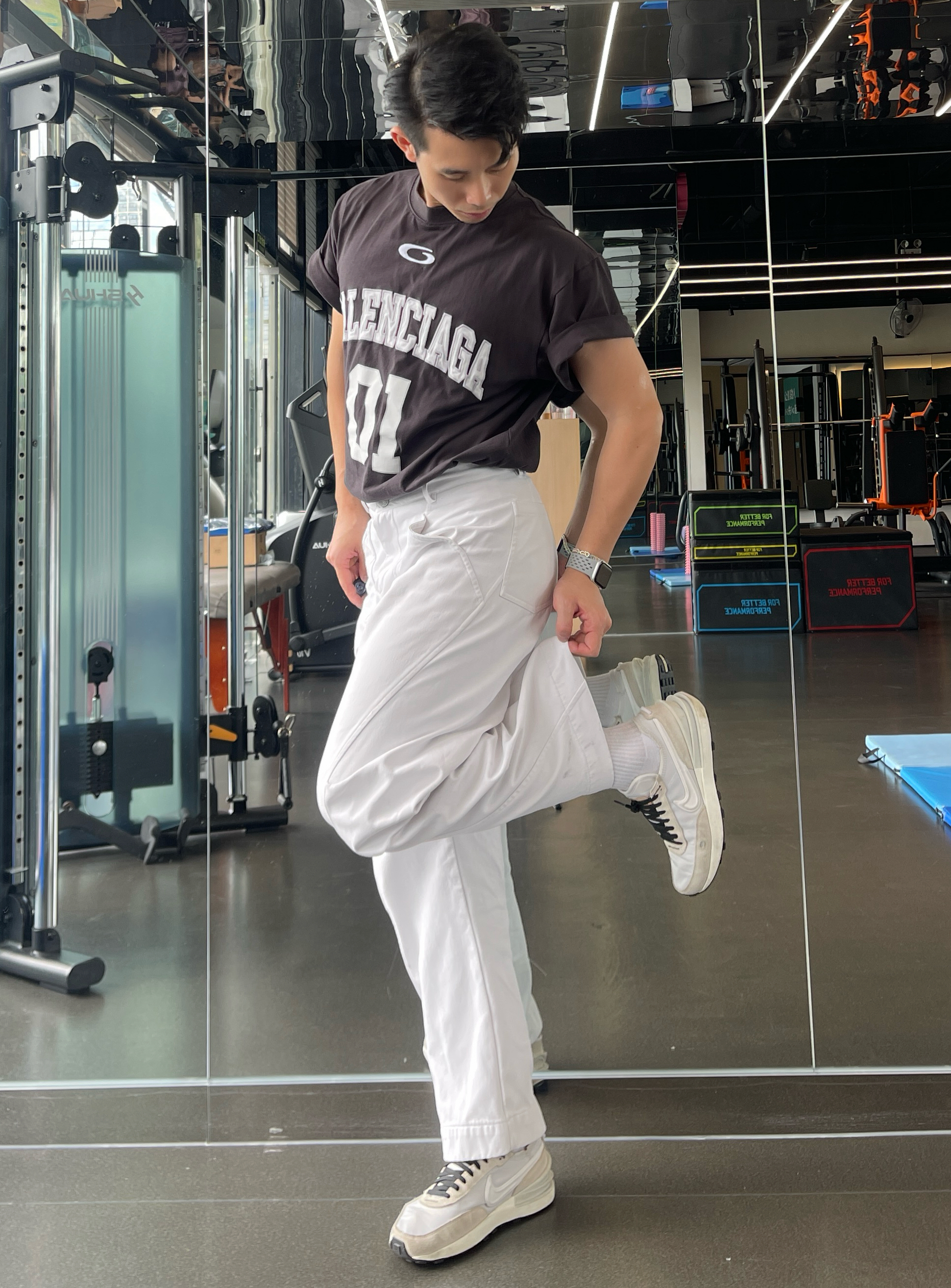 健身穿搭简约不简单 一套穿搭最重要的就是舒适性和质感 今天训练主要是推胸的训练 所以一双华夫格鞋就足够了 这双鞋外观没得说,一定是颜值拉满 鞋面也是比较好清理的 缺点就是鞋底比较硬,不建议用来跑步 搭配的话阔腿裤或者休闲裤运动服都是百搭 身高180|体重76|鞋码43 👕:巴黎世家 👖:弯刀牛仔裤 👟:NIKE WAFFLE