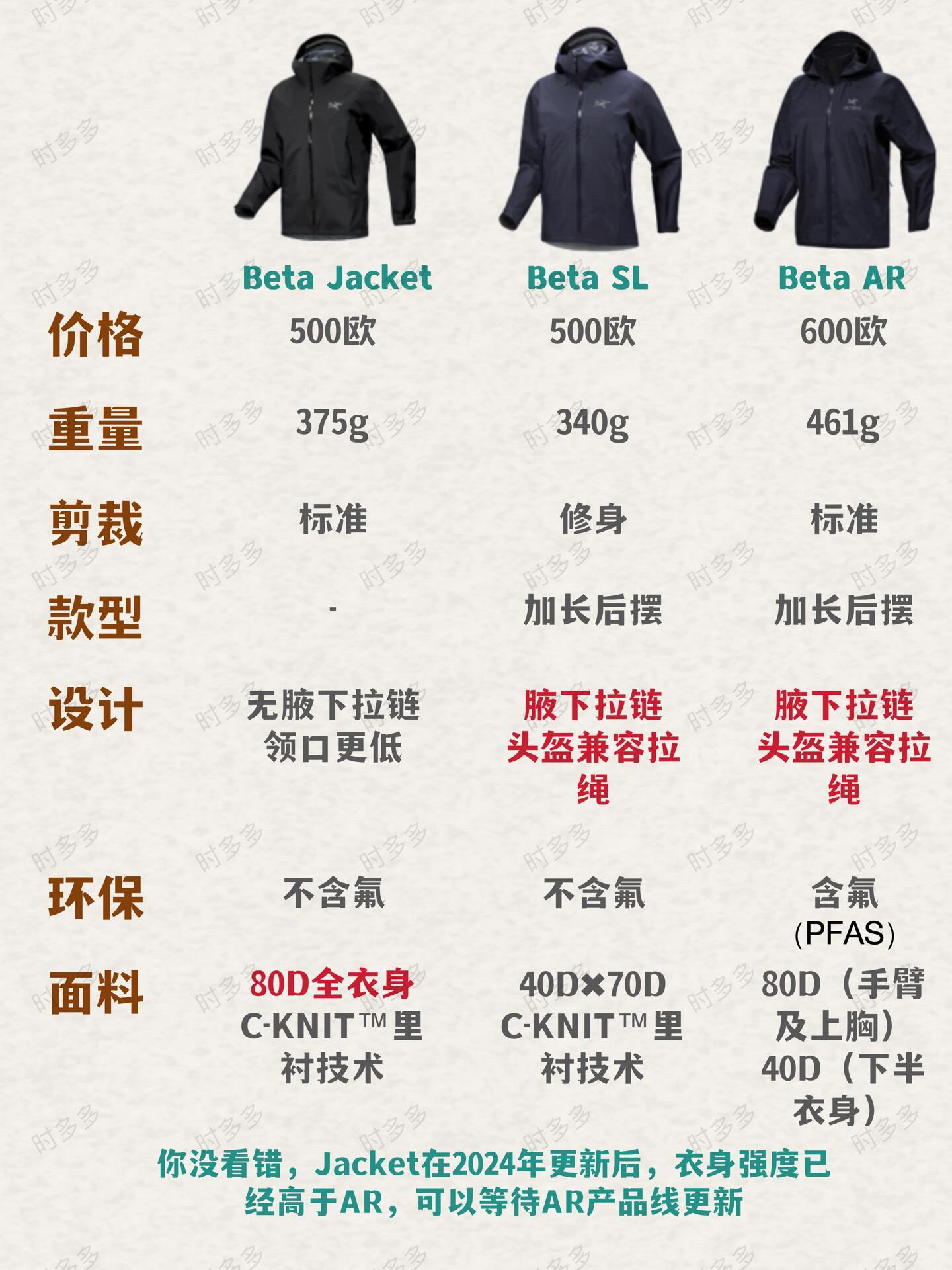 始祖鸟硬壳近几年更新频繁,那么在当前,常规硬壳Beta和SL、AR之间如何选择,需要考虑产品线更新因素。 目前主要核心区别还是在于Jacket在2024年升级了80D面料,在beta里已属最硬面料,高于AR产品线(因为AR尚未升级),但是Jacket没有腋下拉链,是你的话会怎么选择? ps:由于Beta AR面料含聚四氟乙烯(不符合环保理念),美国三月开始禁售含氟面料产品,在售的Beta ...
