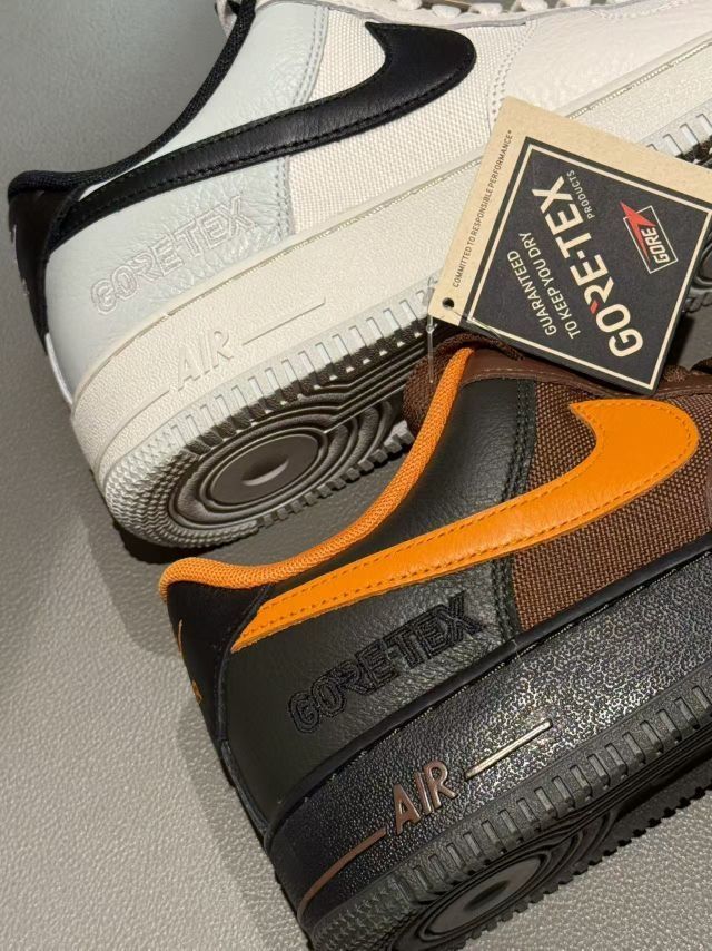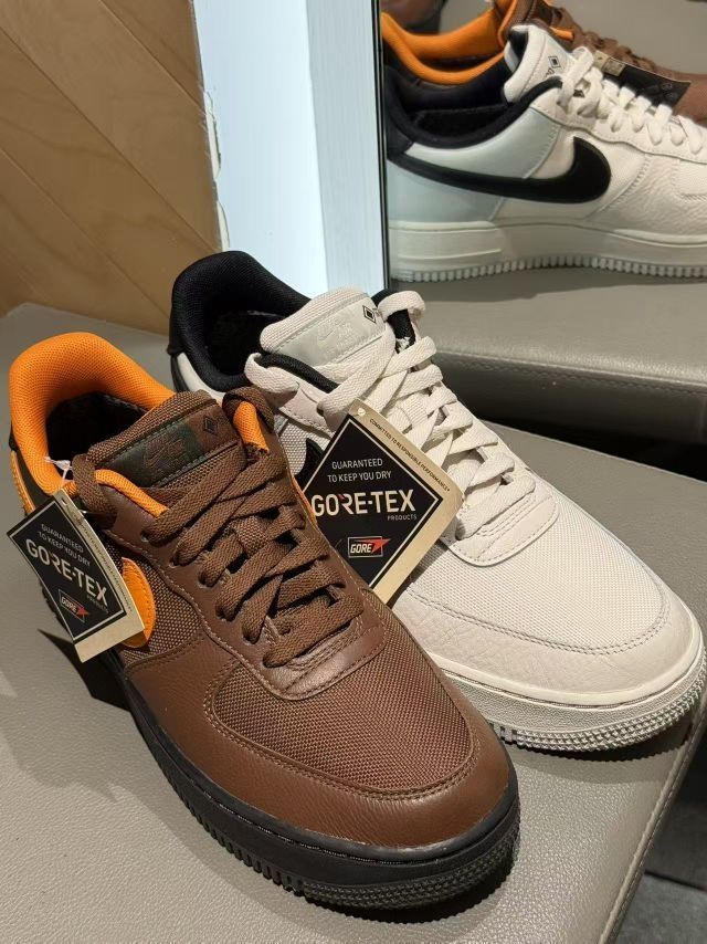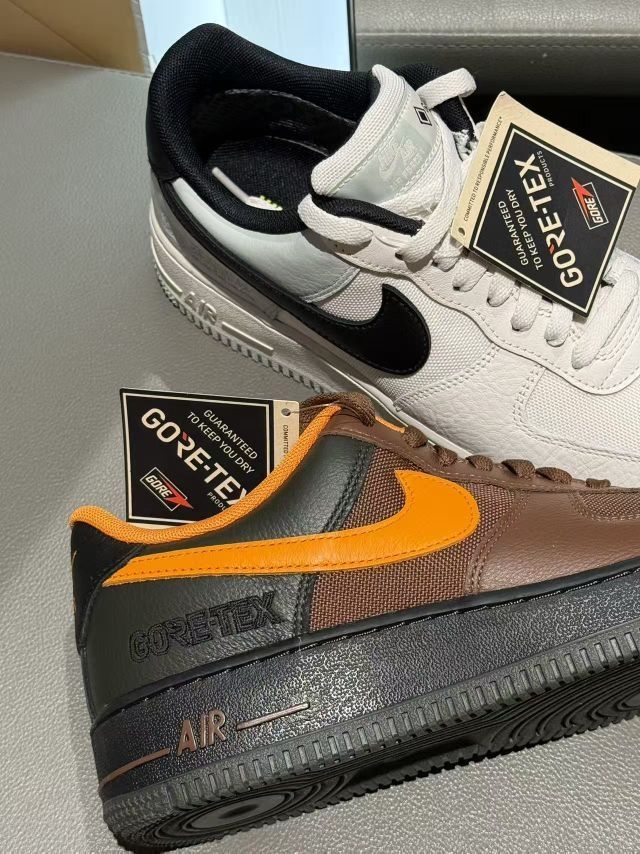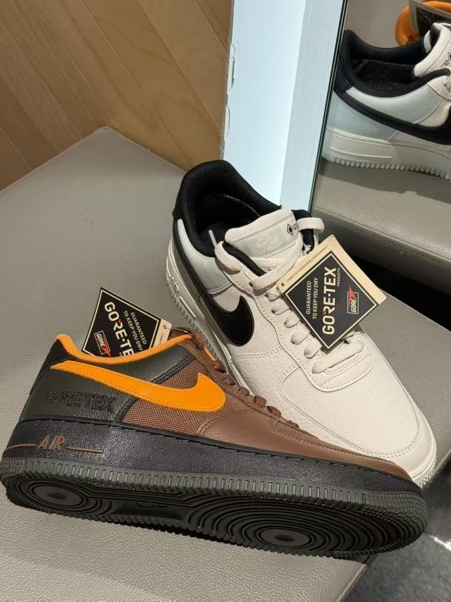两款鞋型都是经典AF1,但加了GTX后更挺括,显腿细还不笨重 码数正常,宽脚也能穿,走路软乎乎的不累脚 防水+耐脏,秋冬不用小心翼翼护着鞋,实用性直接拉满 这两双属于“纠结星人直接all in”的款!棕橙走复古风,米黑走简约风,不管日常通勤还是出门逛gai,下雨下雪都能直接冲~