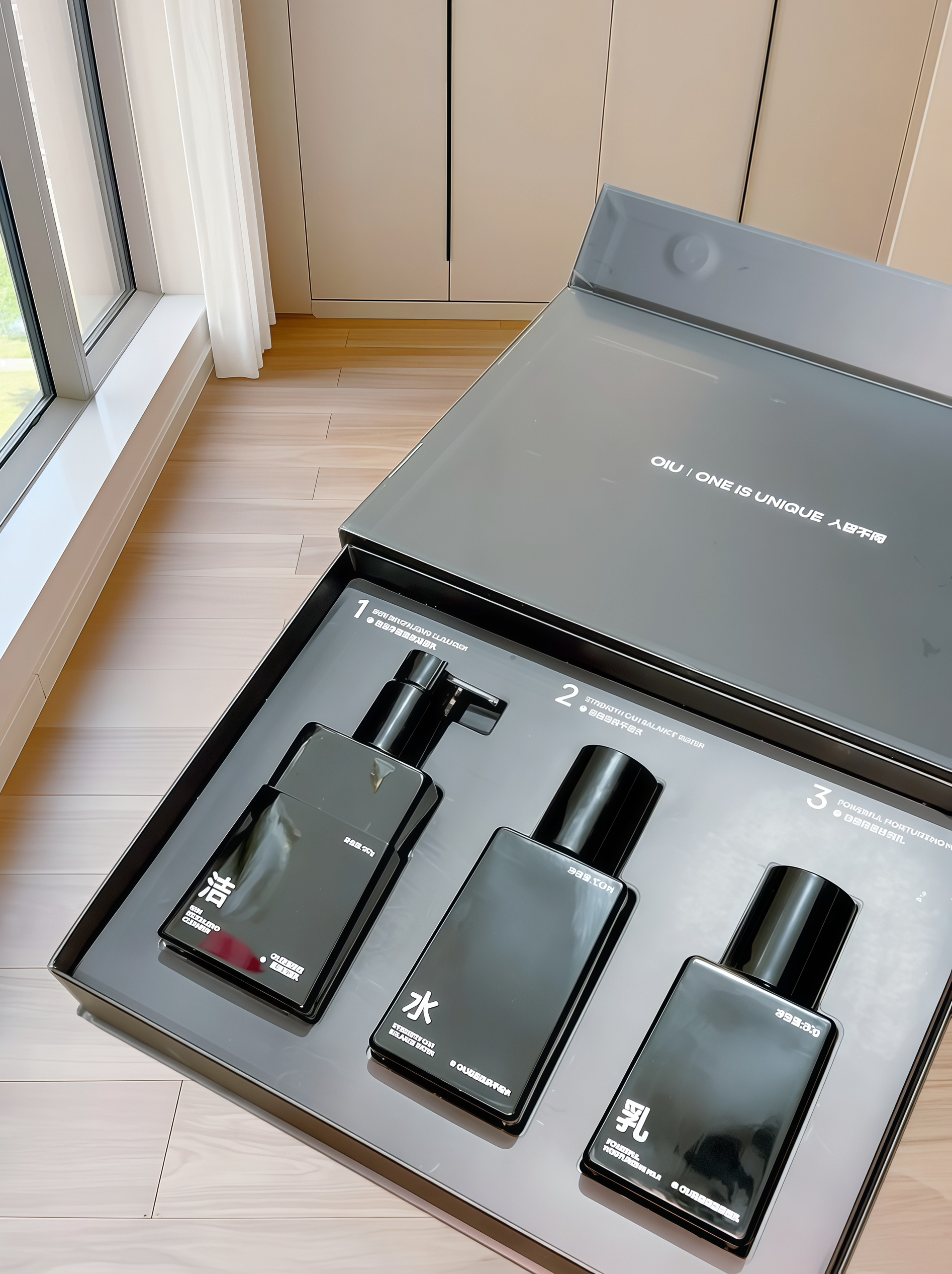 这么浪漫的礼盒说实在的~男孩子是尊滴没办法拒绝啊 是oiu家的男士水乳套装 打开就是洗面奶~水乳 香挂和贺卡 满满一大盒 好有仪式感 洗面奶好容易起泡 洗完脸不拔干 清爽又舒服 水乳涂起来滋润但是不会粘腻主打的就是控油和祛痘滴 我感觉挺适合油痘男孩日常精简护肤呢 一整套实用还有面儿尊滴蛮不错诶 当作生日礼物送给男生他肯定敲开心哒!