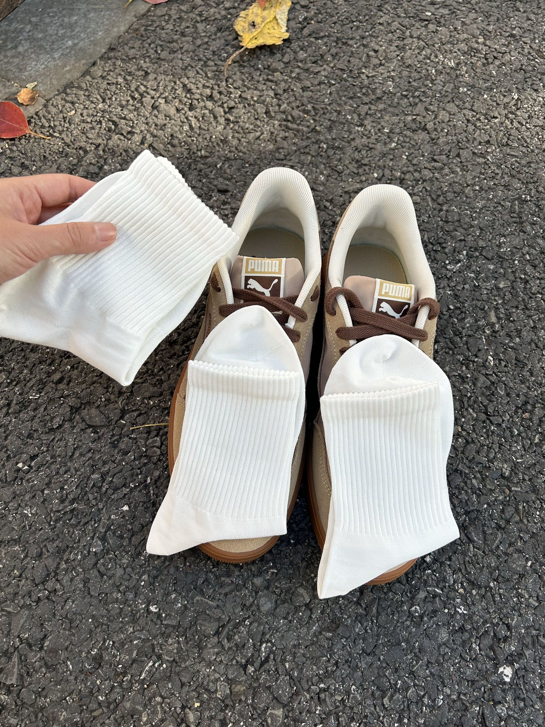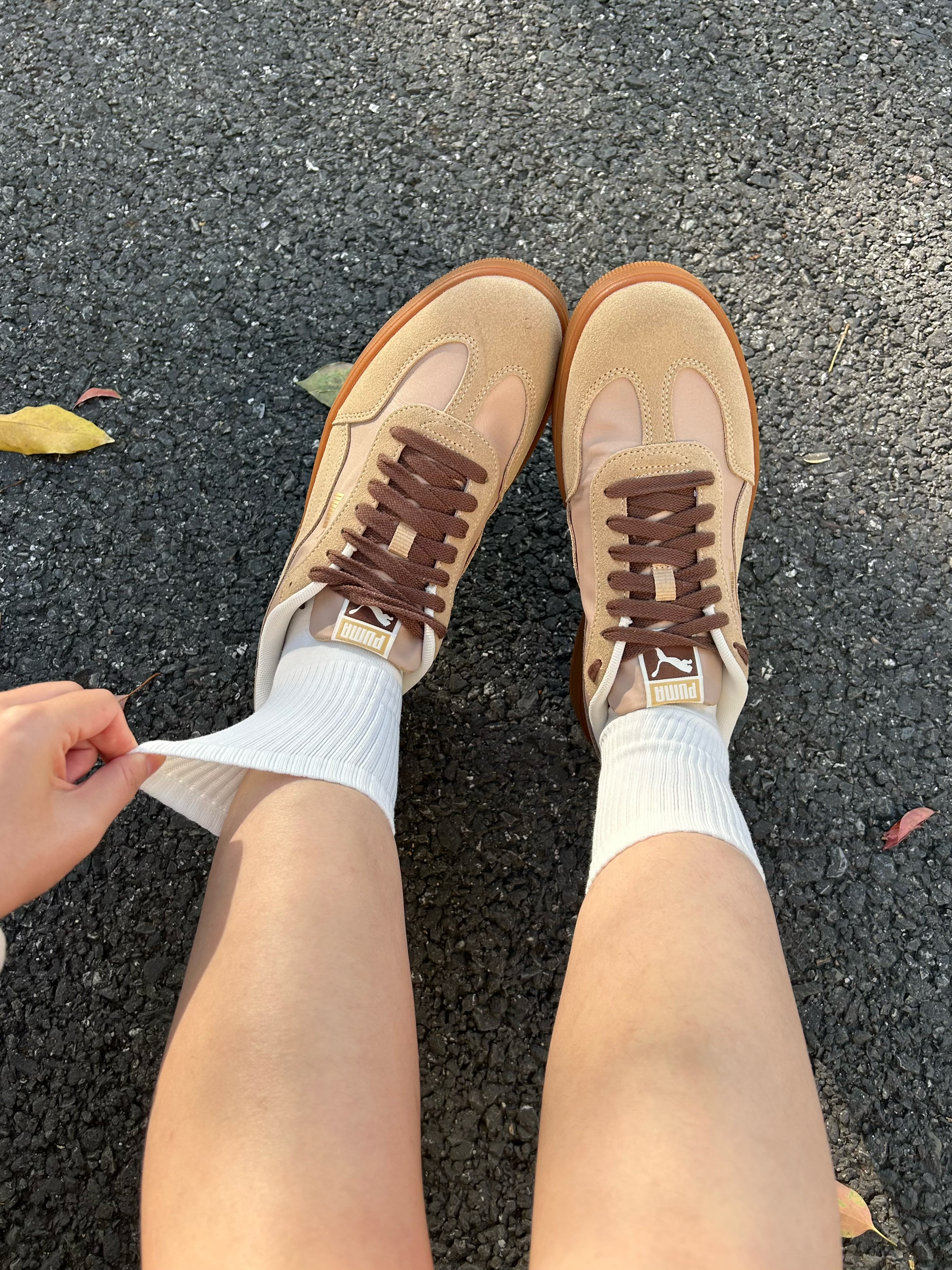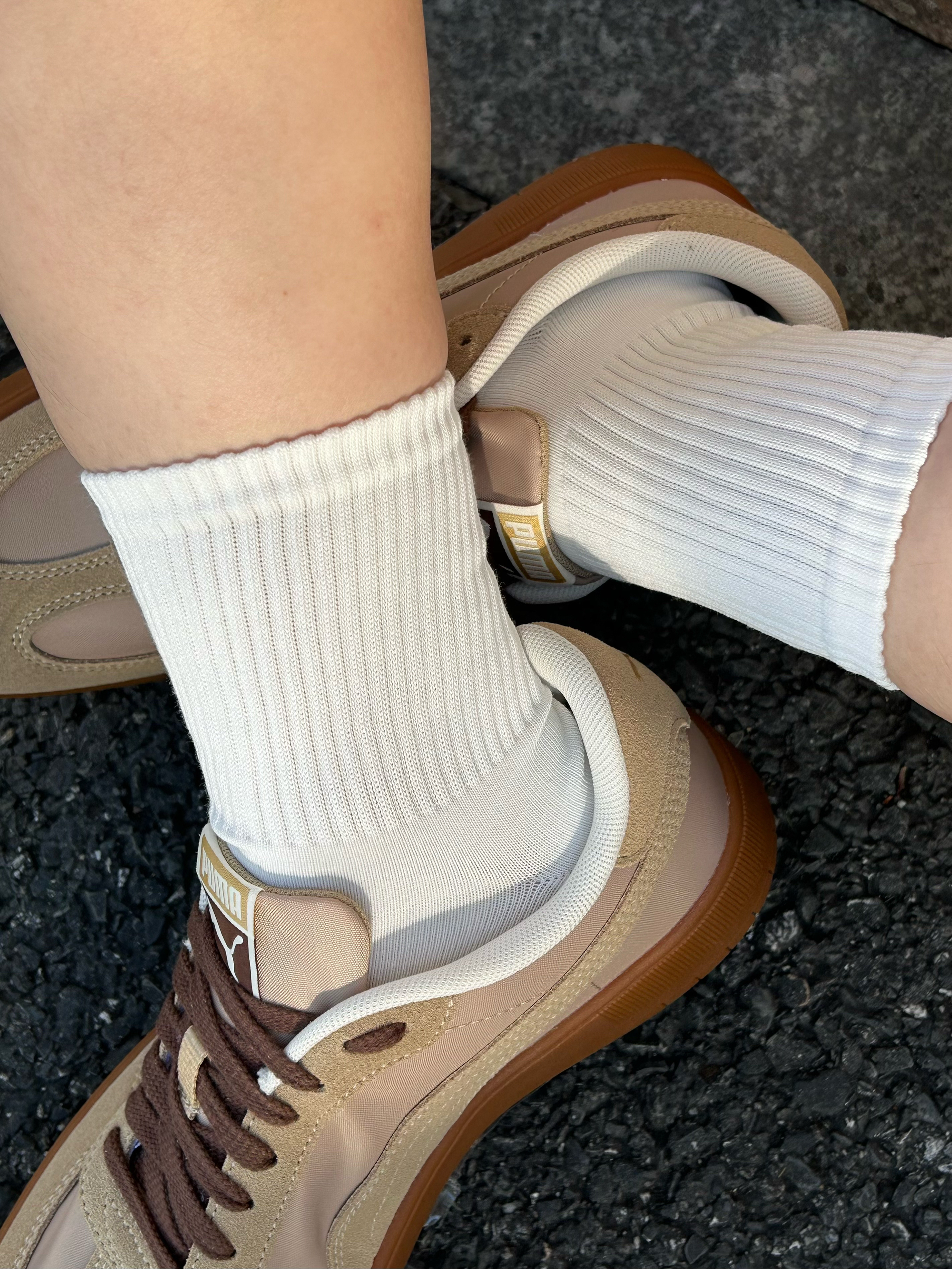 我最近新入了两双小白袜 白色基础款百搭还显干净 上脚软乎乎的,脚感蛮舒服的 出门搭配我的棕色彪马板鞋穿 看起来清爽又好看🥰