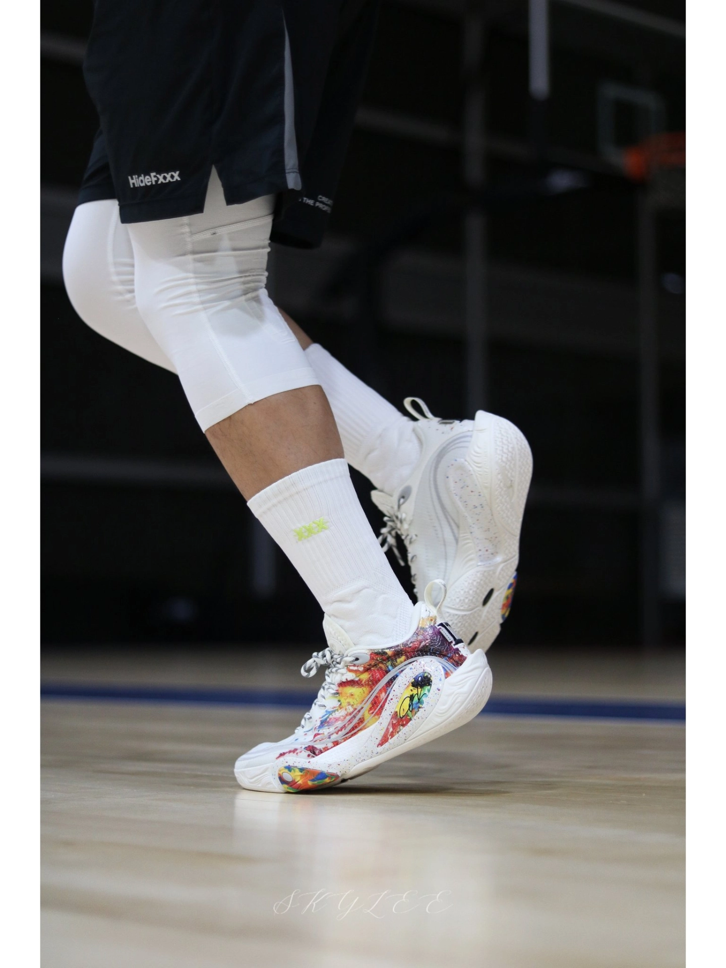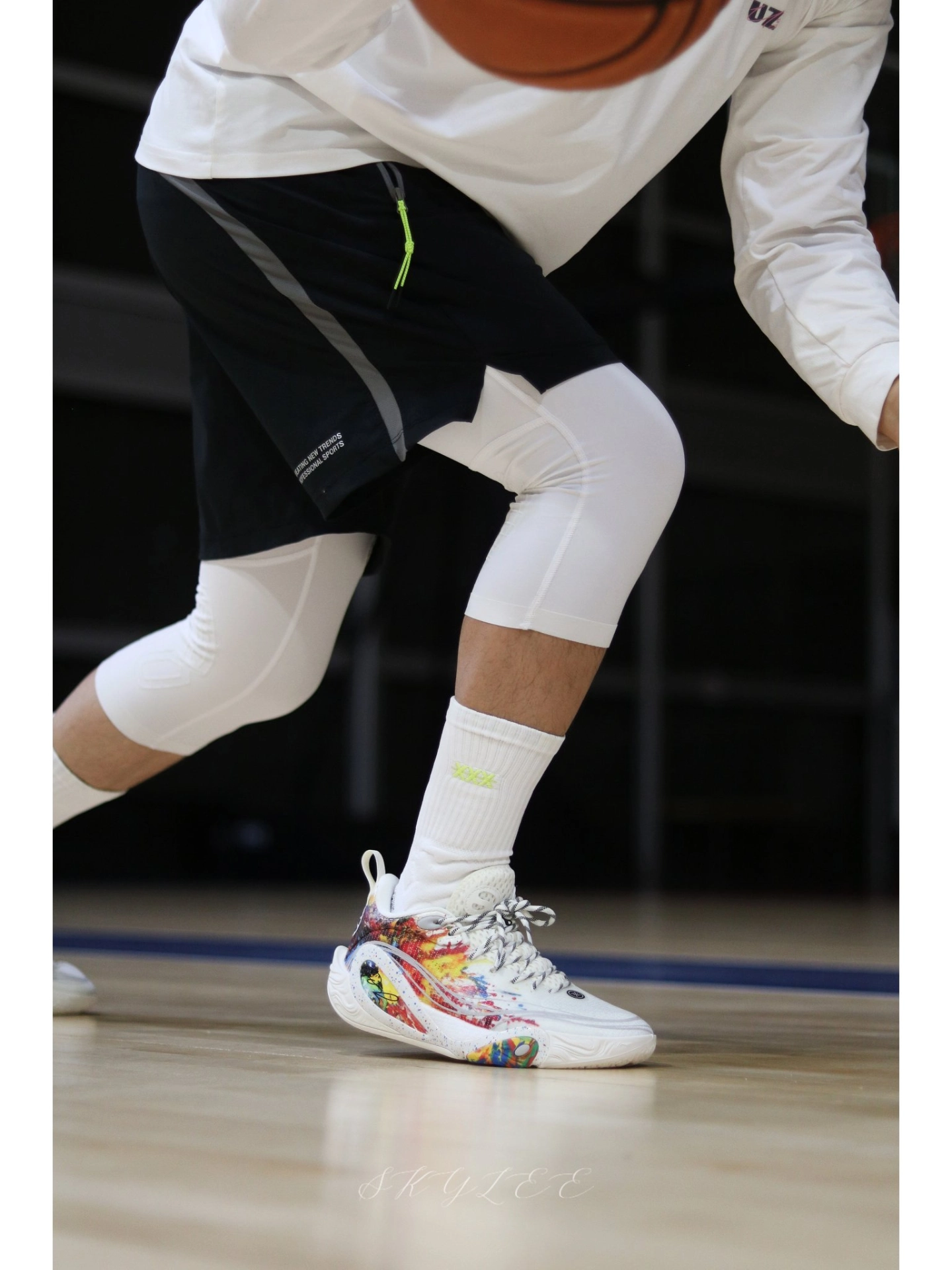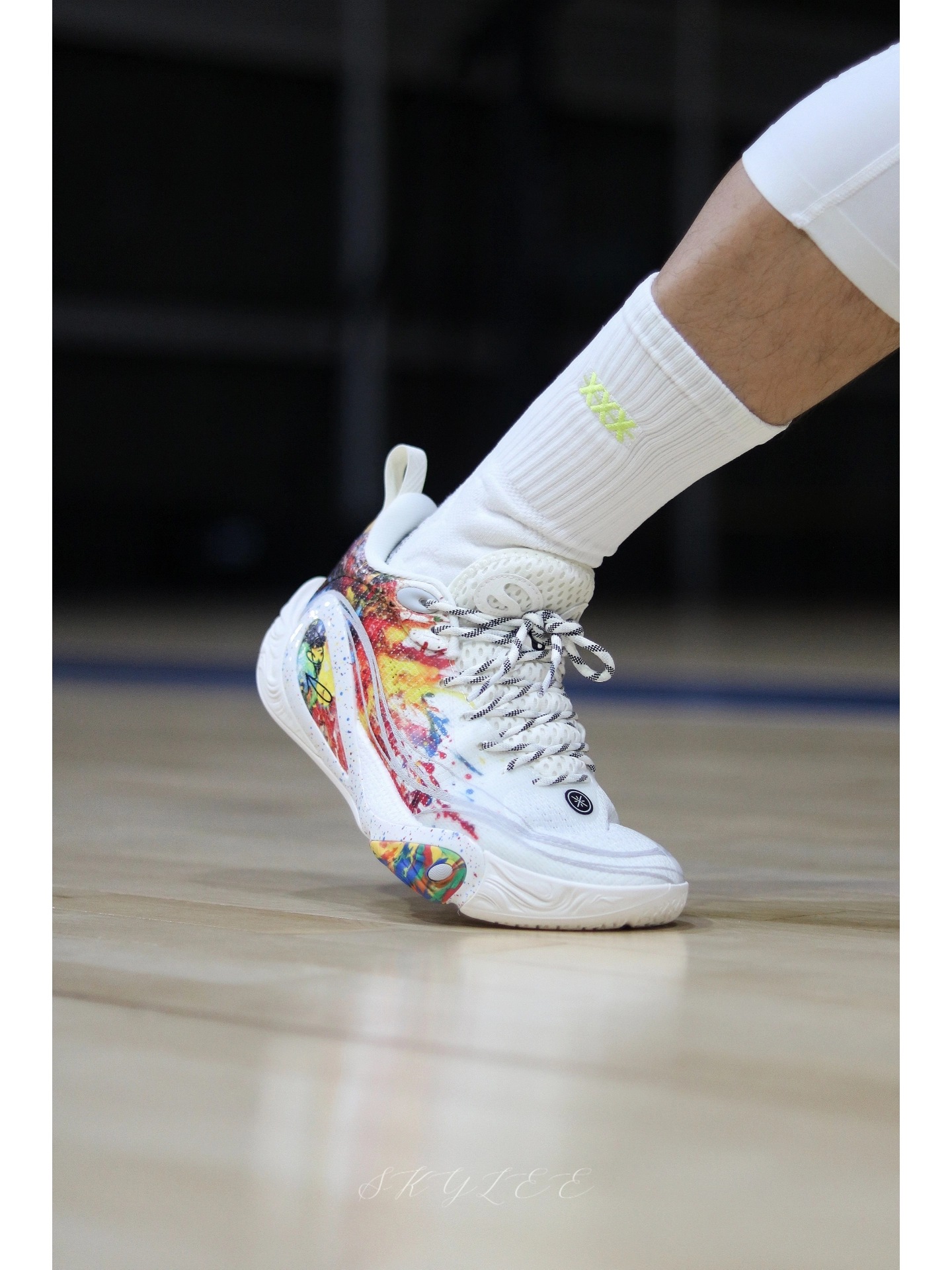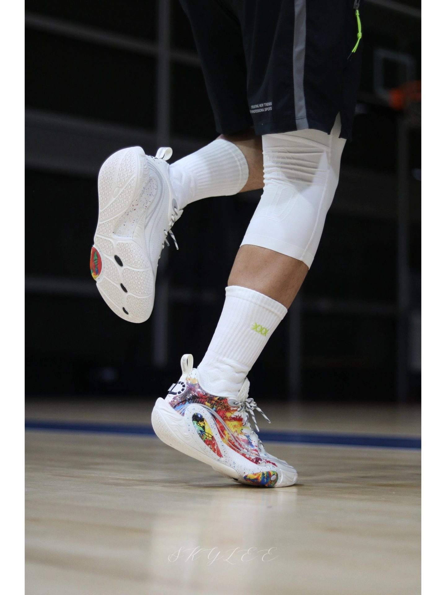 李宁在配色上总能玩出一些很惊艳的效果 最近穿DLO1在室内场的次数也很高,果然搭配纯白的球袜就已经很好看了! 另外在实战方面我个人觉得DLO1也完全能打,比较适合轻体重,打法偏灵巧的后卫选手。码数方面不偏,不过高脚背的兄弟可能需要试穿一下👌 #实战球鞋看我的 #学生党打球穿什么 #一人一双篮球鞋 #新鞋零时差-11月 #DLO1烟花