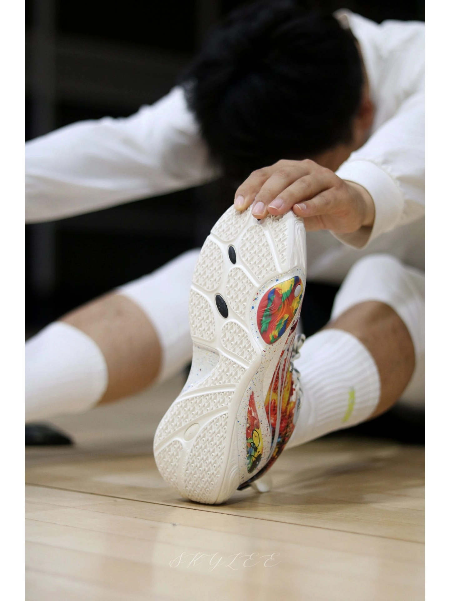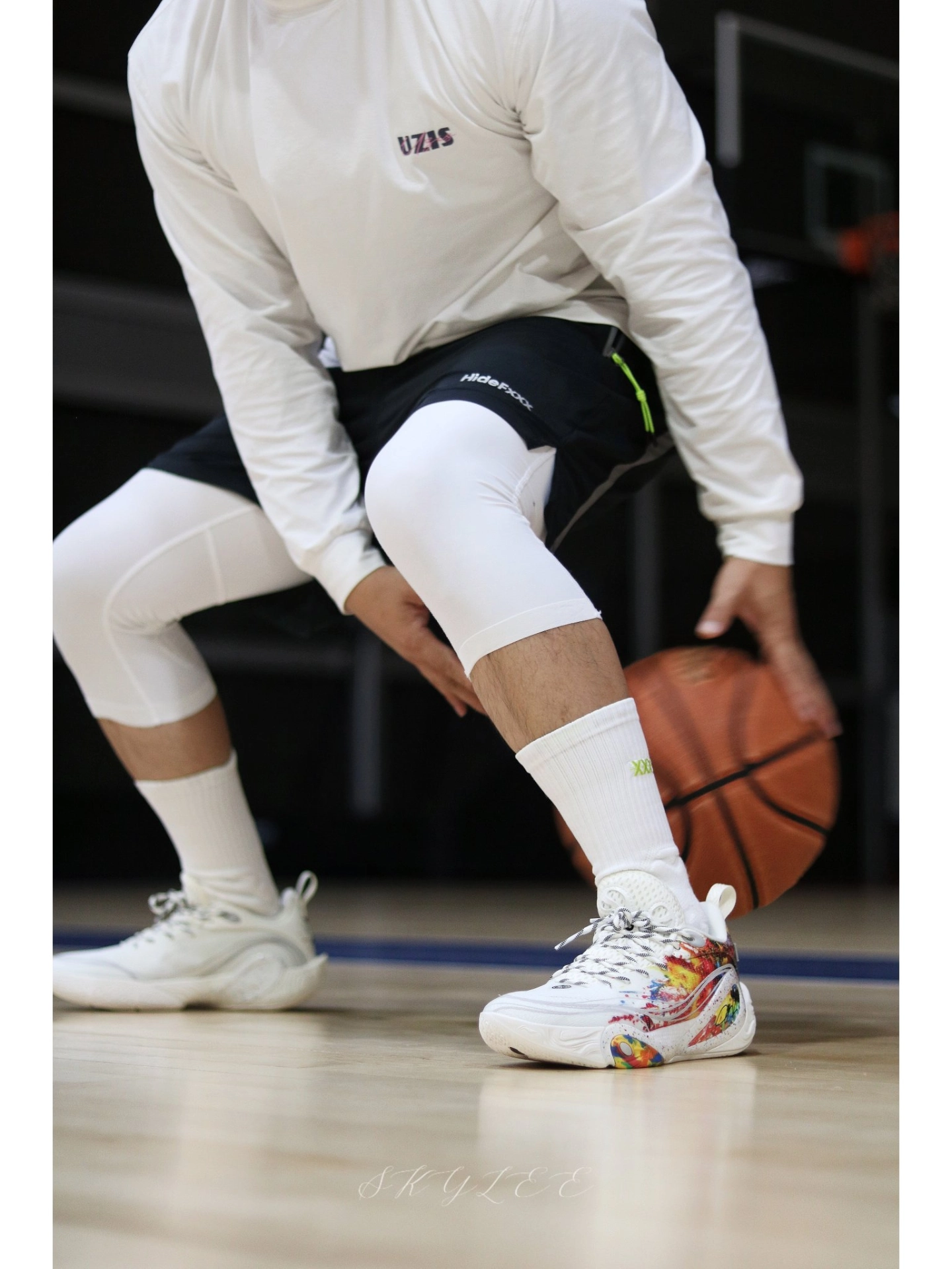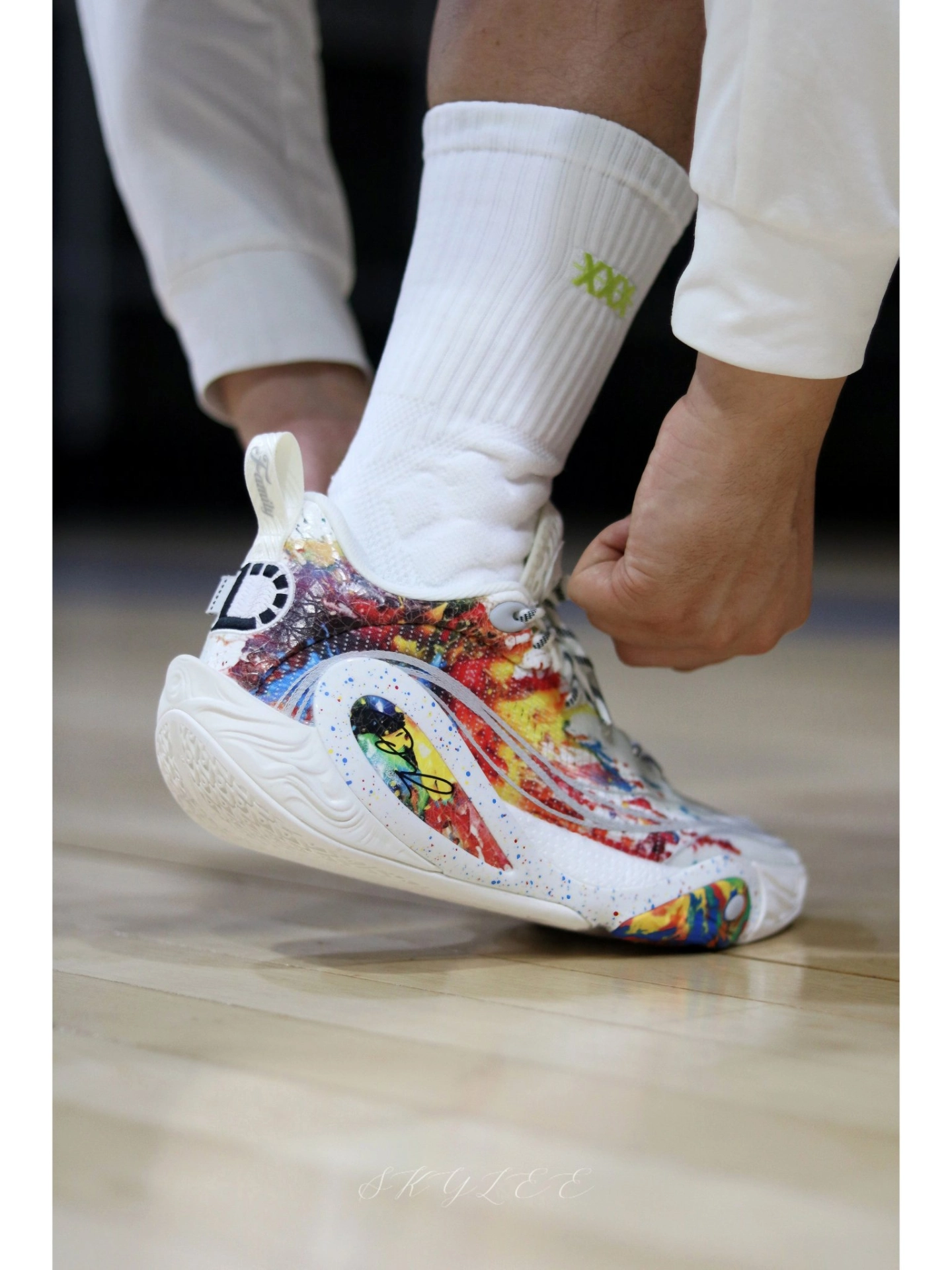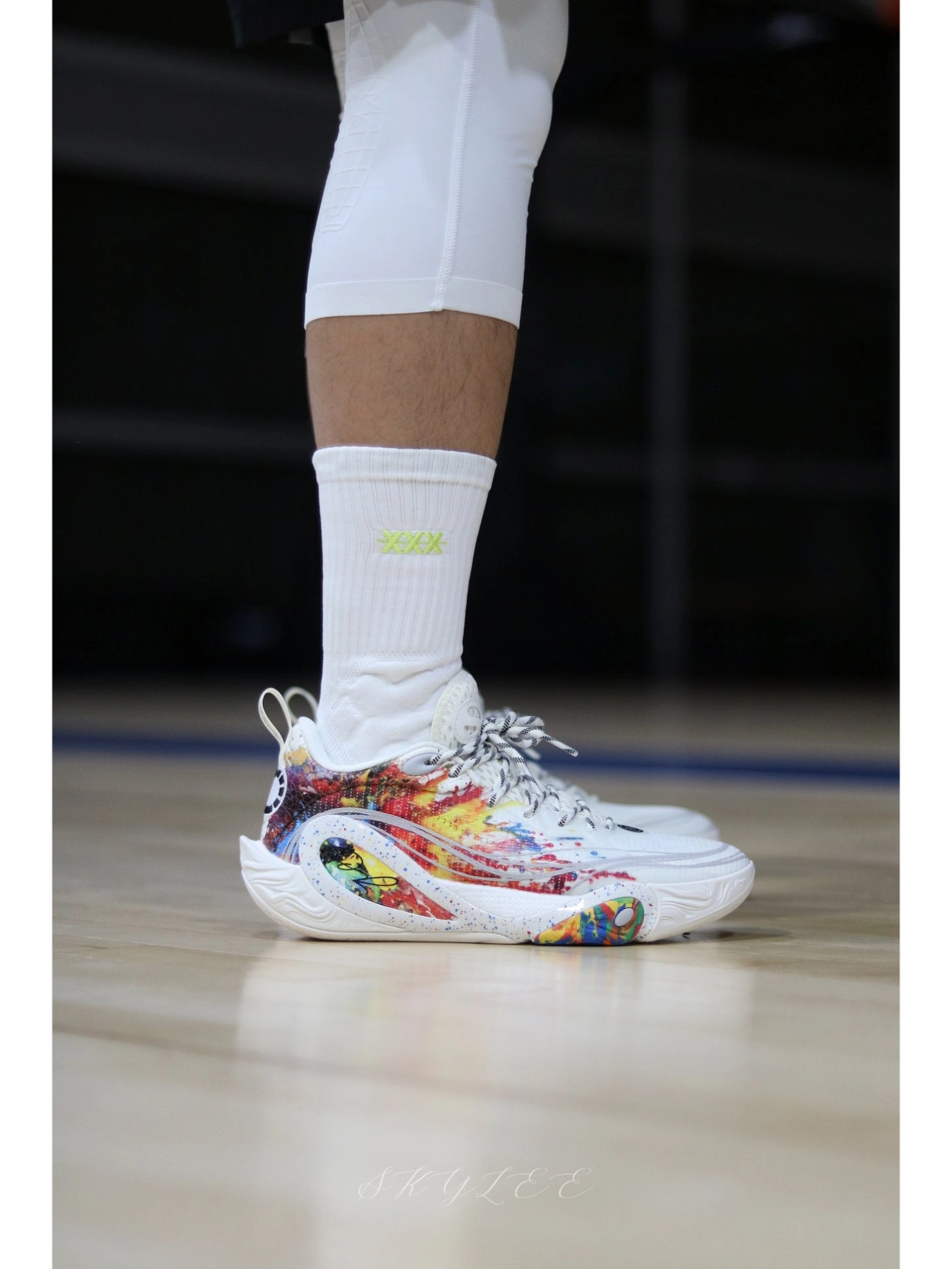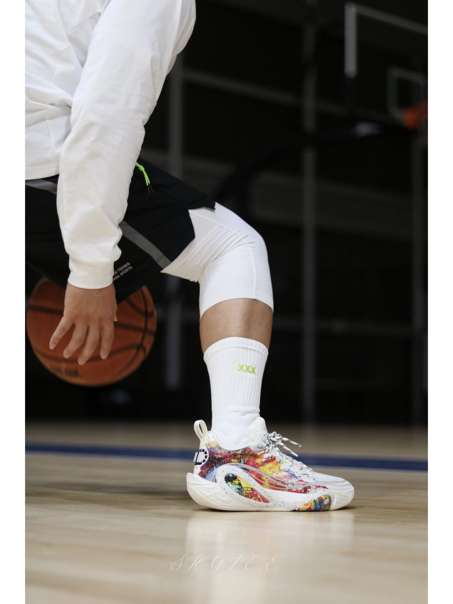 李宁在配色上总能玩出一些很惊艳的效果 最近穿DLO1在室内场的次数也很高,果然搭配纯白的球袜就已经很好看了! 另外在实战方面我个人觉得DLO1也完全能打,比较适合轻体重,打法偏灵巧的后卫选手。码数方面不偏,不过高脚背的兄弟可能需要试穿一下👌 #实战球鞋看我的 #学生党打球穿什么 #一人一双篮球鞋 #新鞋零时差-11月 #DLO1烟花